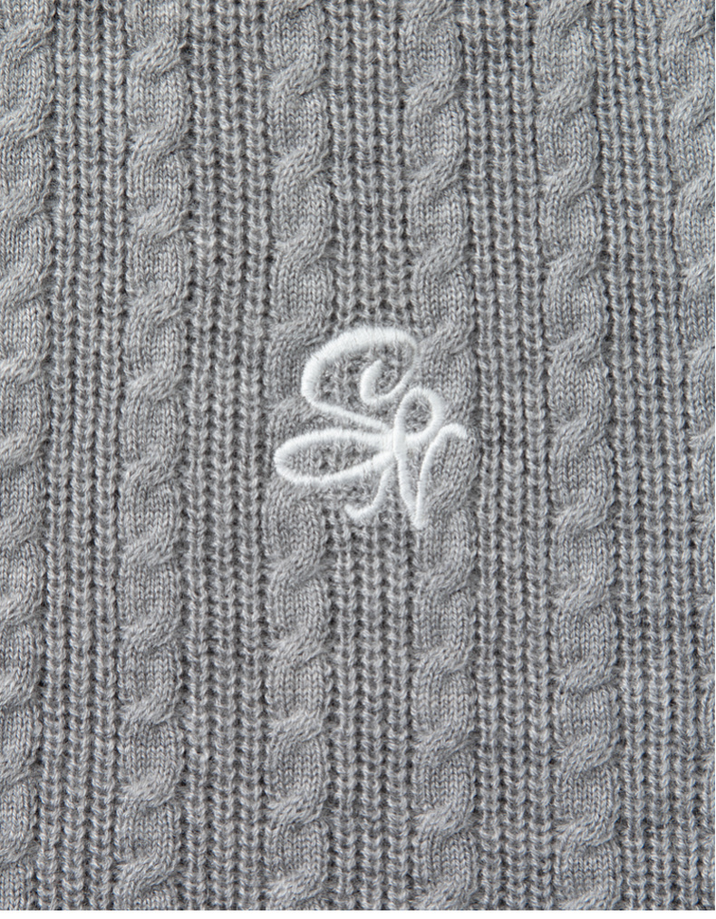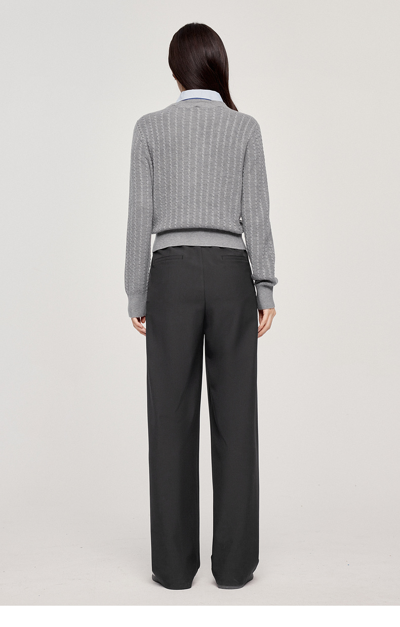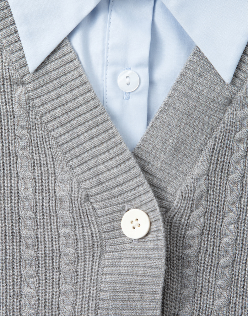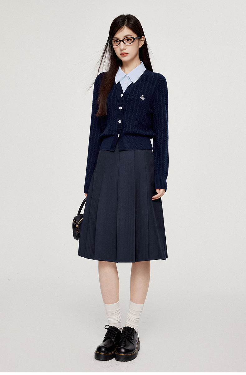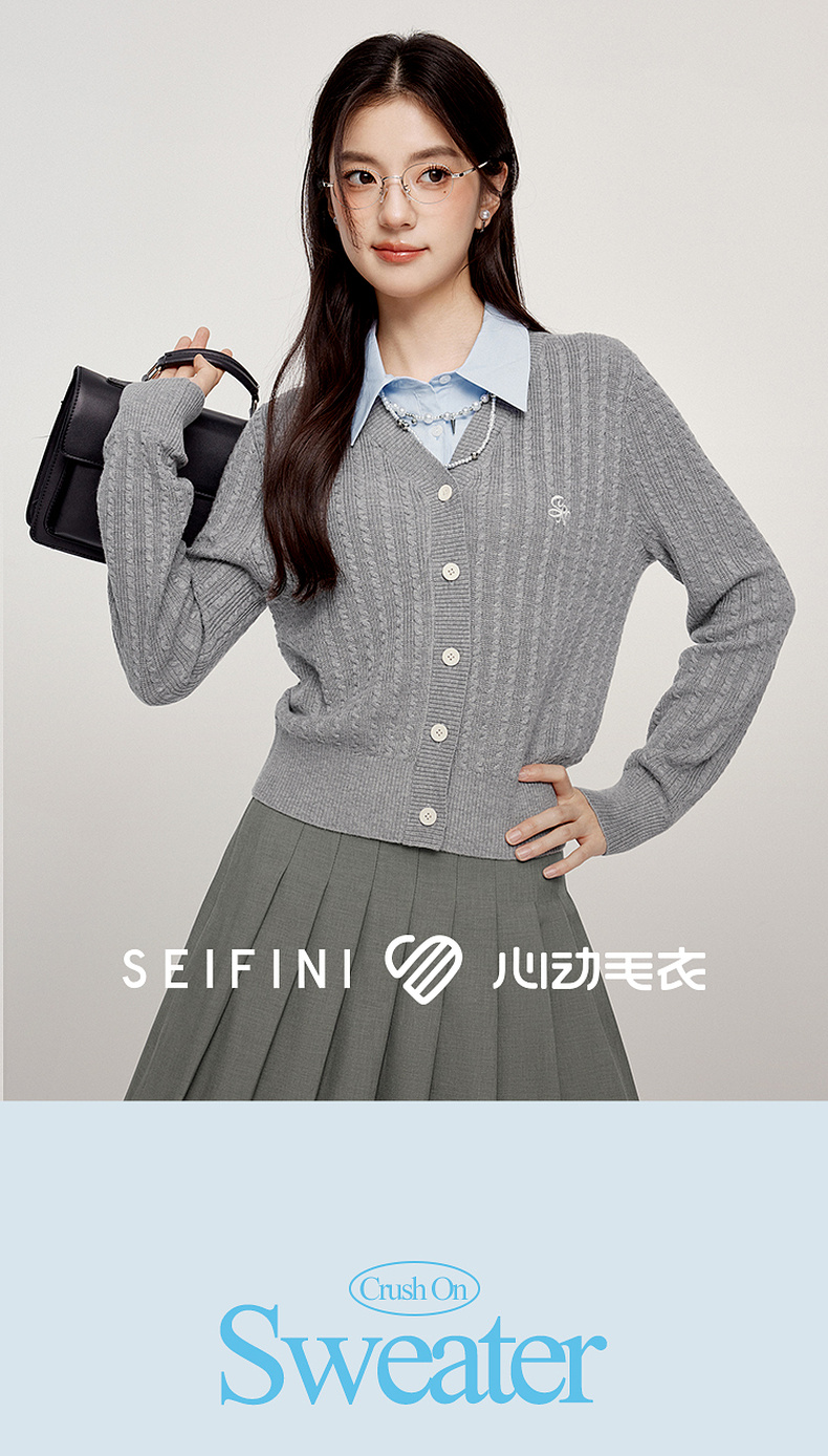 【严选】诗凡黎可脱卸衬衫领绞花针织开衫2024秋新款miu系刺绣假两件上衣7F8330081
