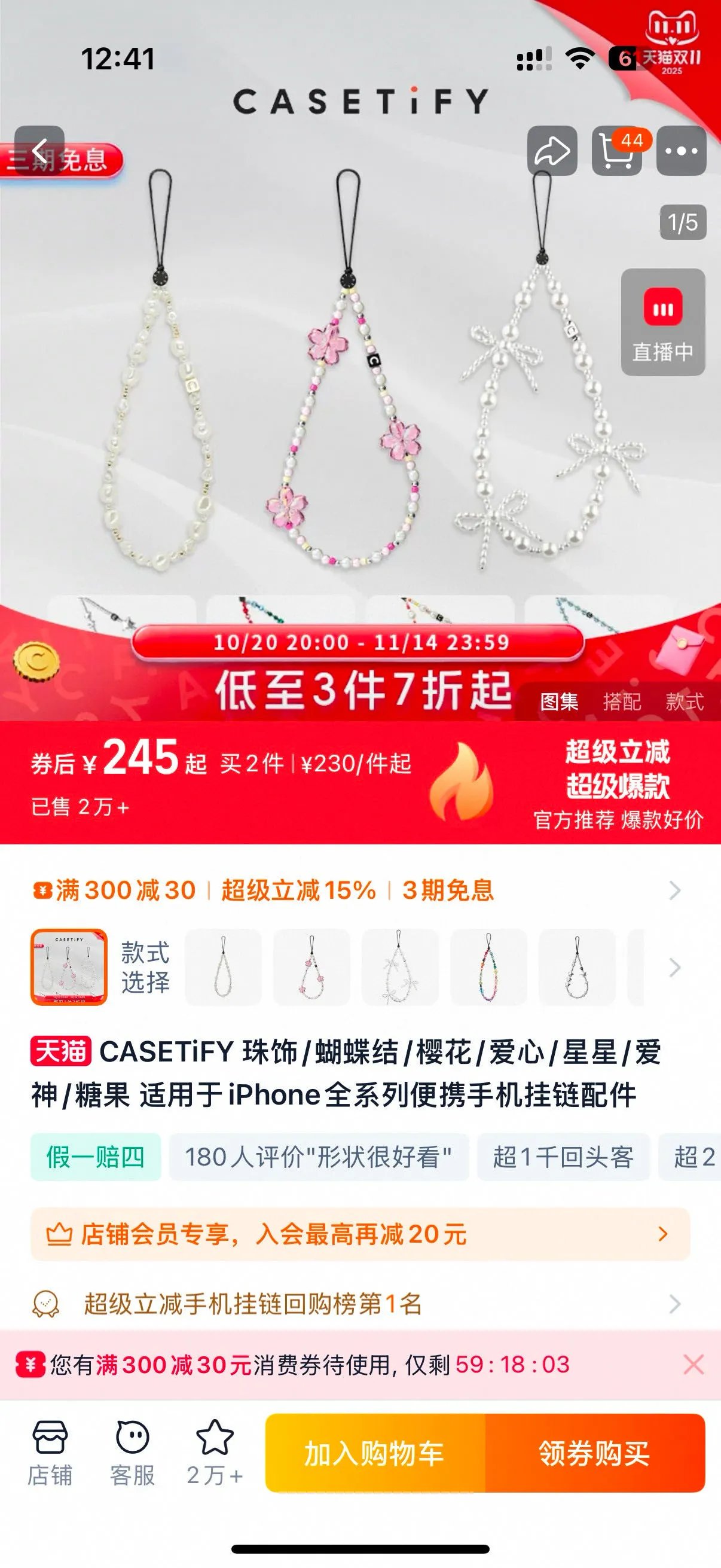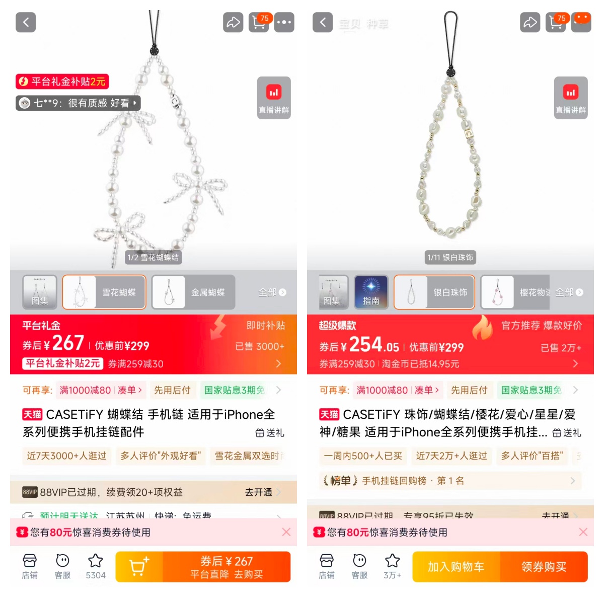 Casetify 施华洛珍珠手机链4款