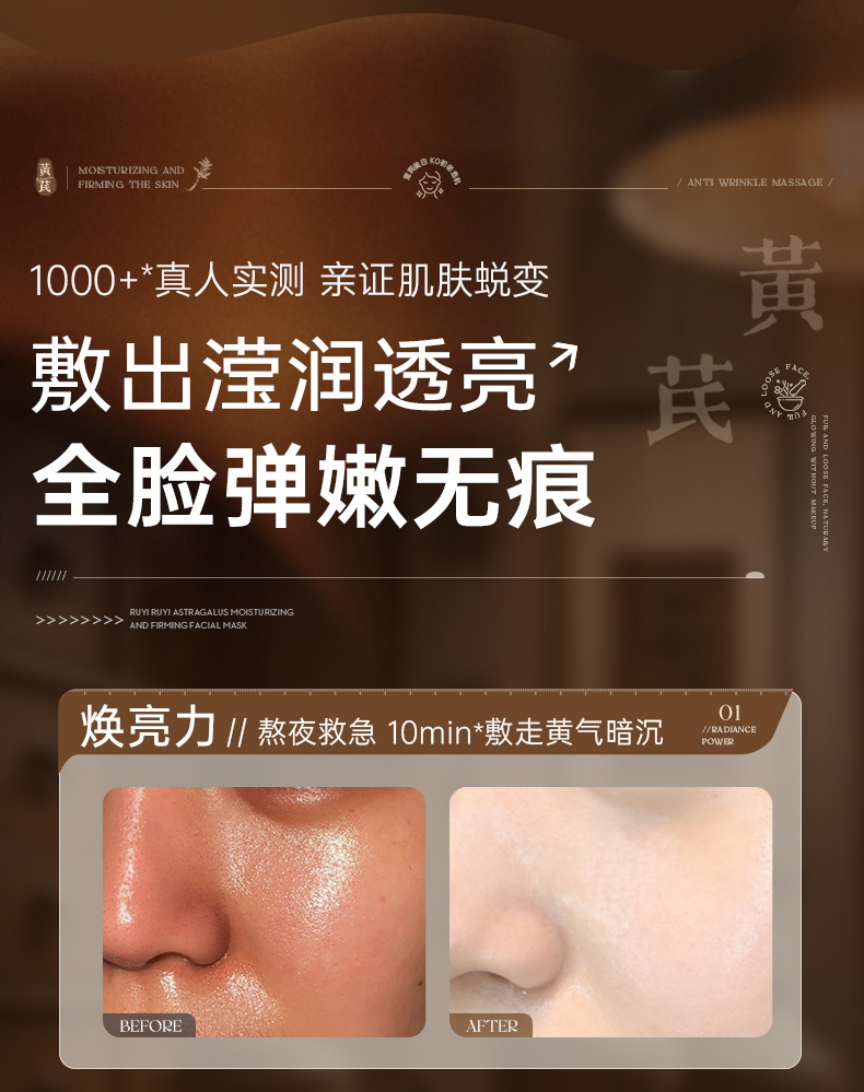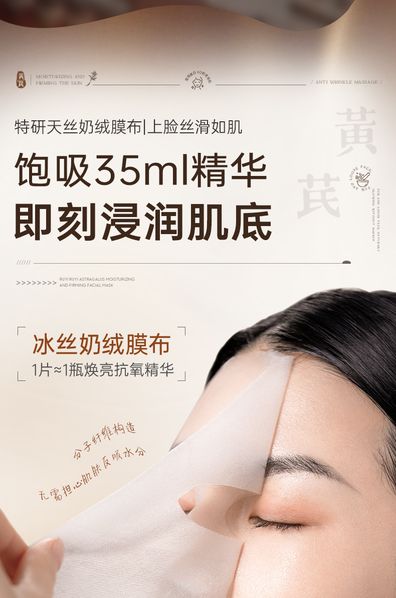 儒意黄芪保湿紧肤面膜10片/盒 滋润补水保湿紧致淡纹抗皱抗衰老|儒意官方商城