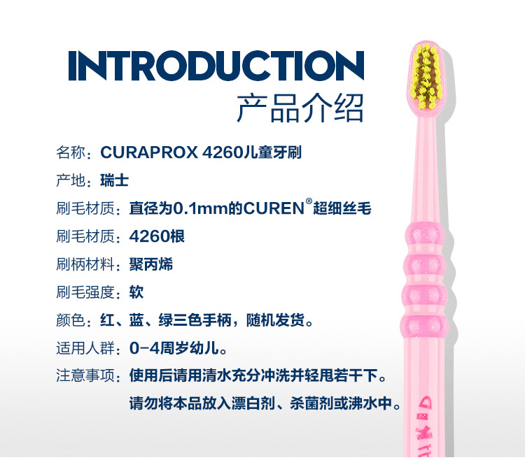 瑞士专业牙科防护CURAPROX科瑞宝士4260儿童牙刷3只装0-4岁(颜色随机)