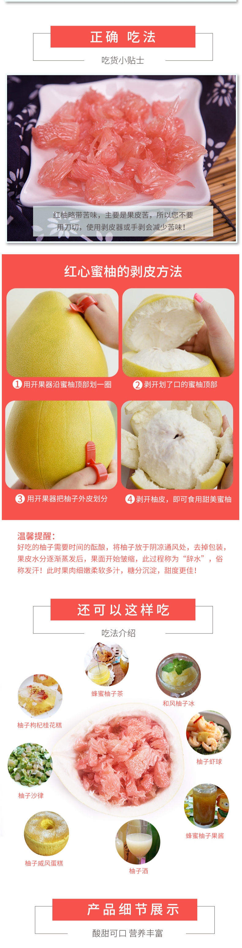 【产品卖点】最畅销,性价比高,口感好表皮呈金黄色,肉质鲜红,皮薄多汁。酸甜口味偏甜,柚香浓郁,含天然色素,营养极其丰富。吃过的几乎没有一个不爱。