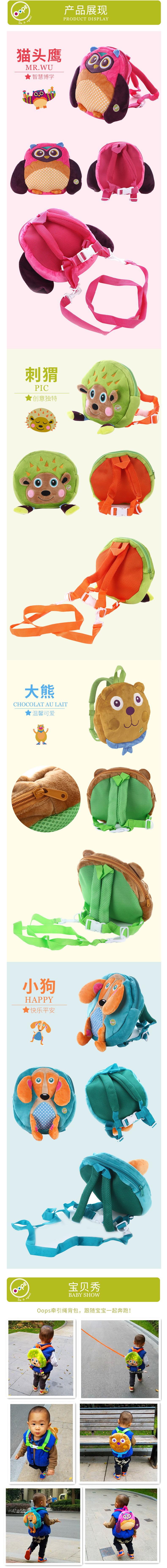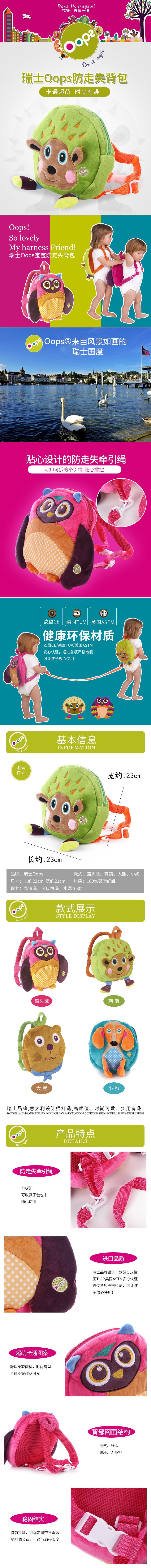 瑞士Oops儿童防走失背包 可爱卡通 婴幼儿园宝宝双肩小书包带牵引绳 1岁2-3-4-5岁 大熊