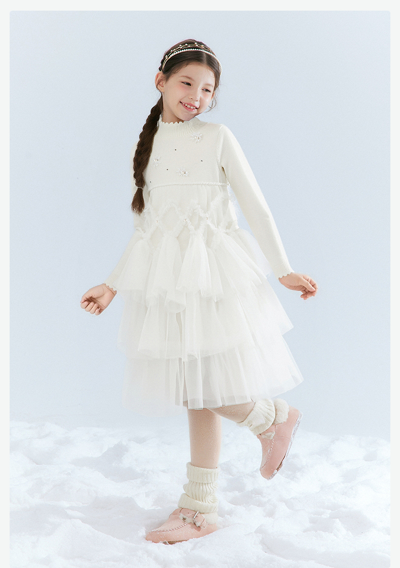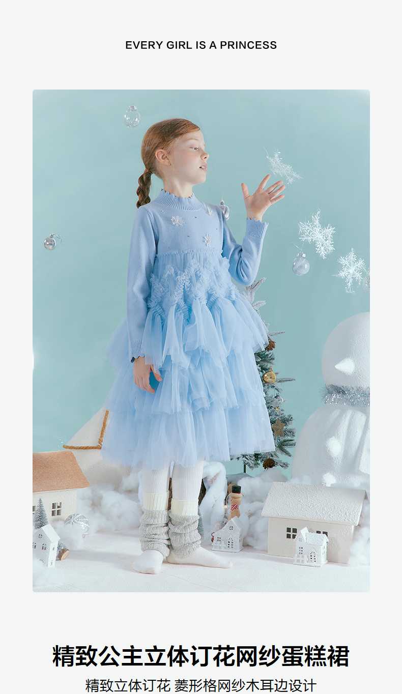 笛莎Deesha 女童厚款连衣裙2025年冬季新款女孩儿童时尚保暖蛋糕裙