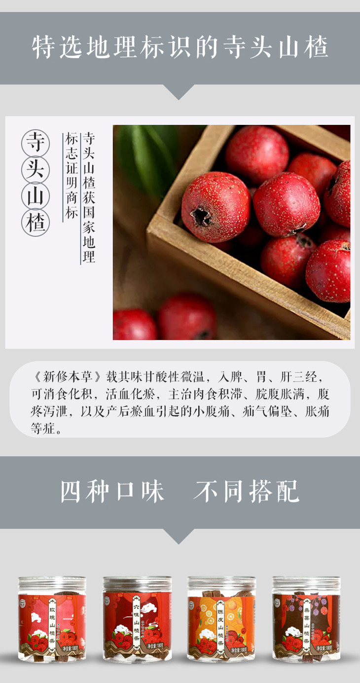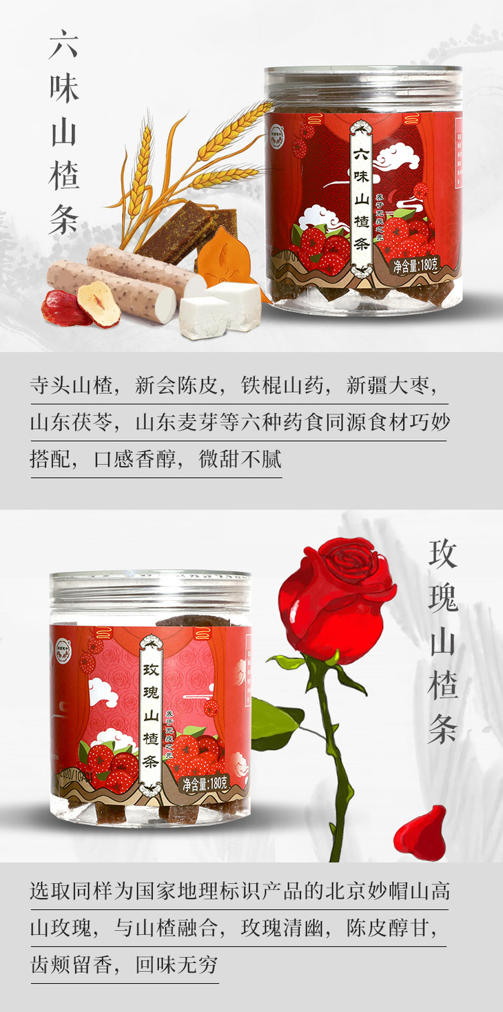 融合陈皮/山药茯苓等食材的六味山楂条 180g/瓶
