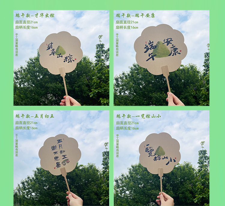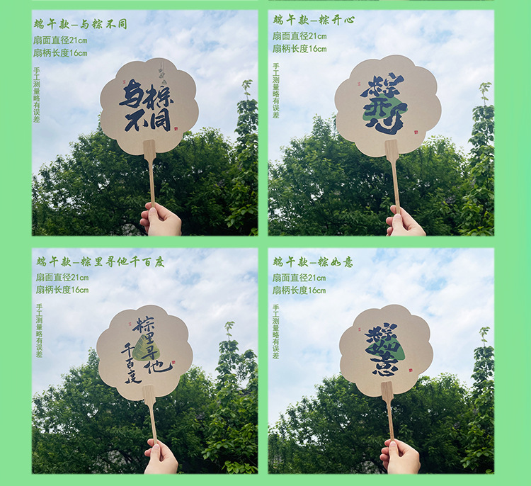 买一送一【端午节团扇毛笔字书法】创意粽子主图扇面 公司团建活动礼品 古风扇子