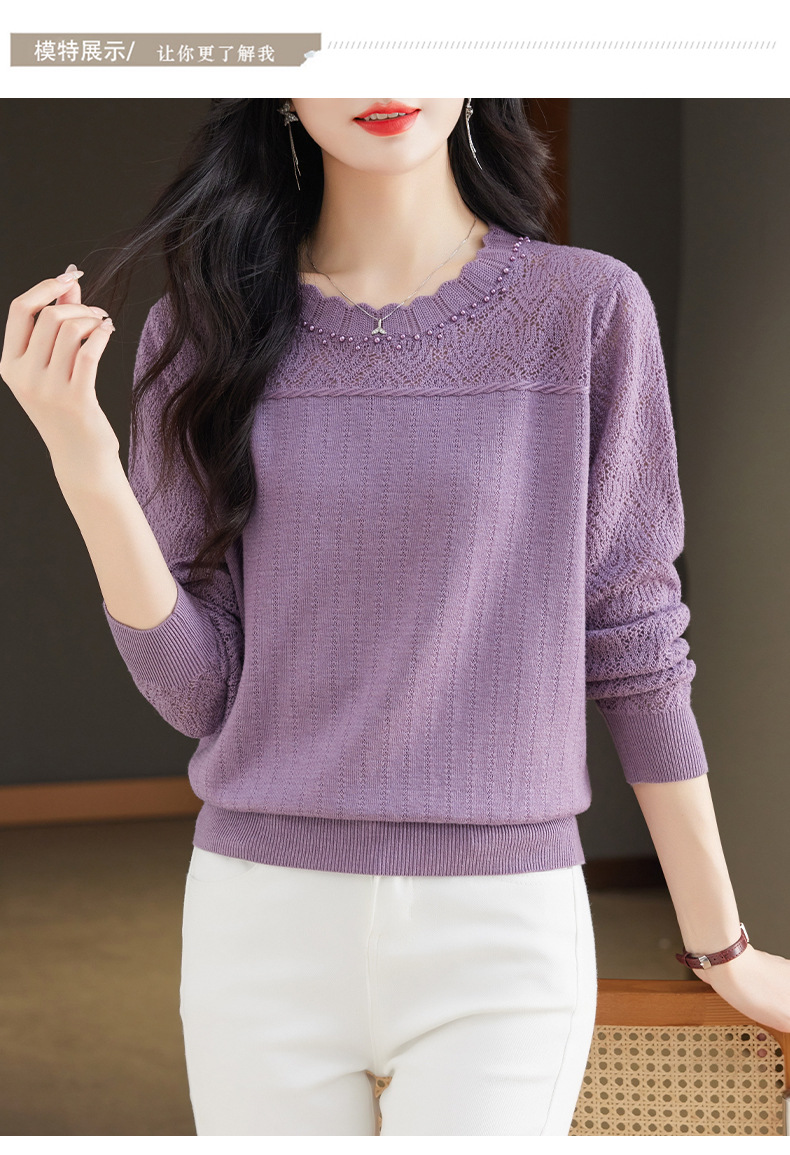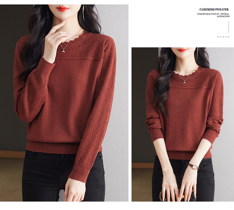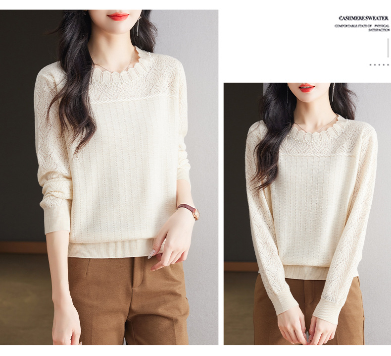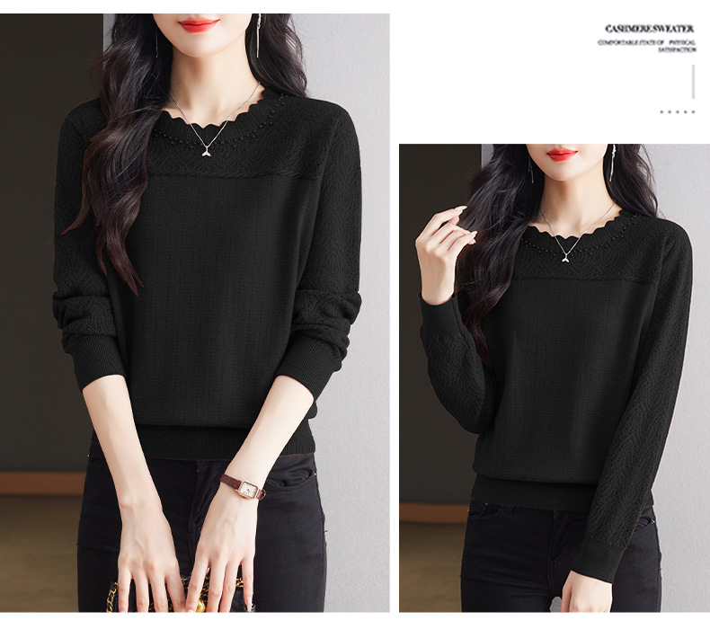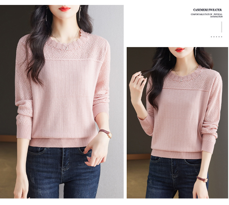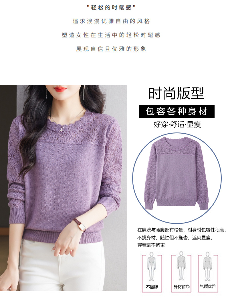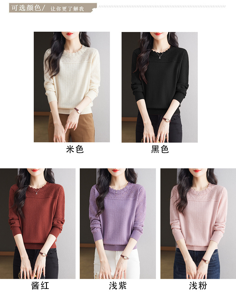气质长袖羊毛上衣,薄款毛衣圆领打底衫CC-6875