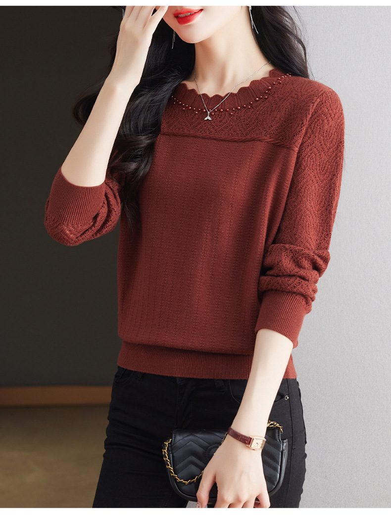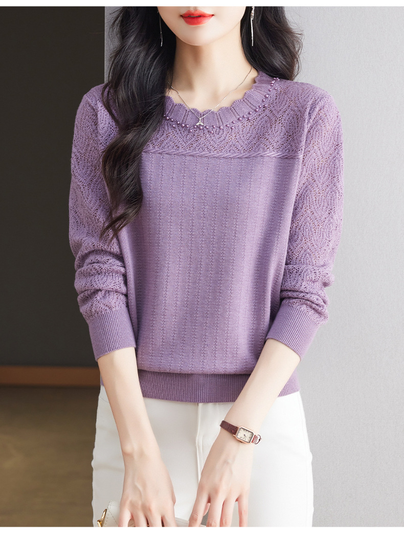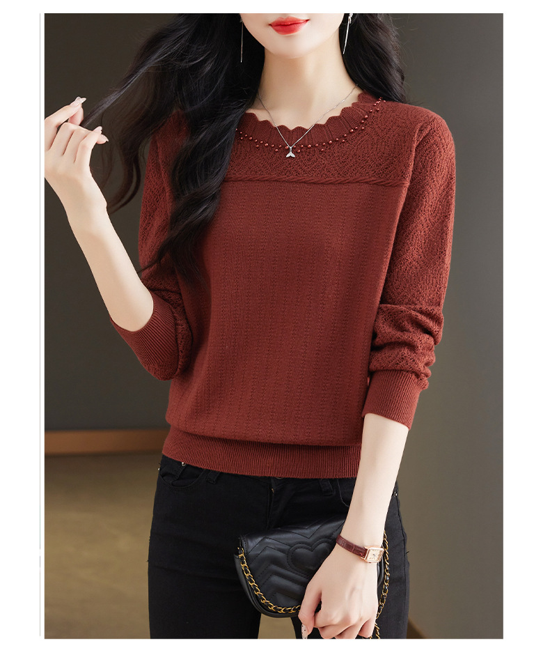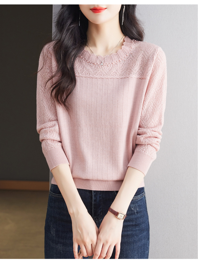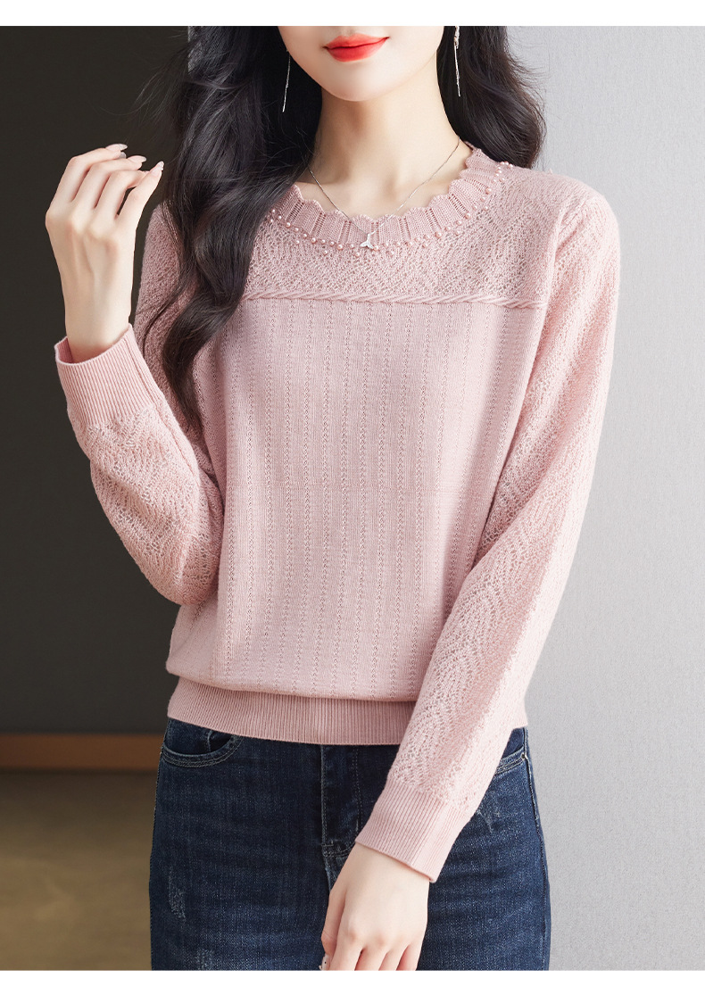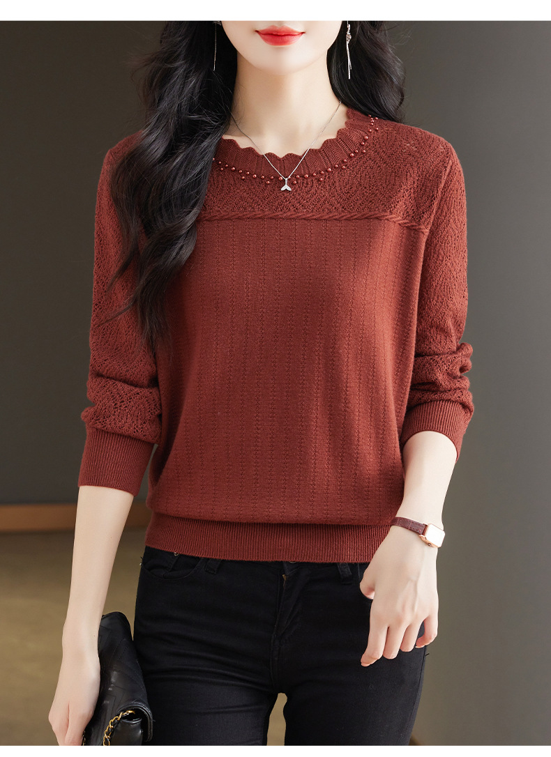 气质长袖羊毛上衣,薄款毛衣圆领打底衫CC-6875
