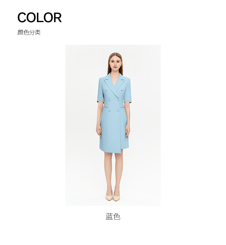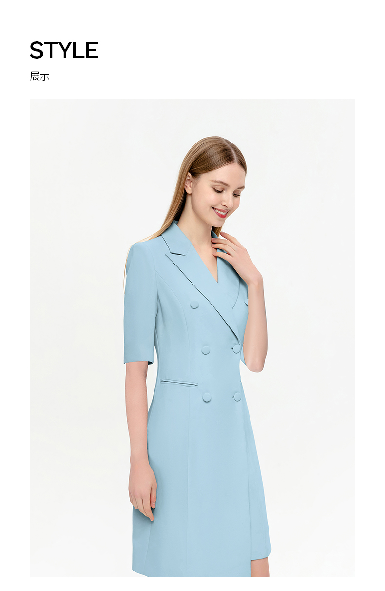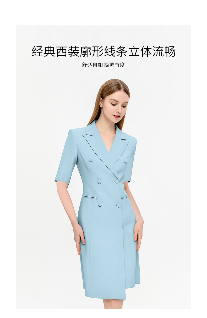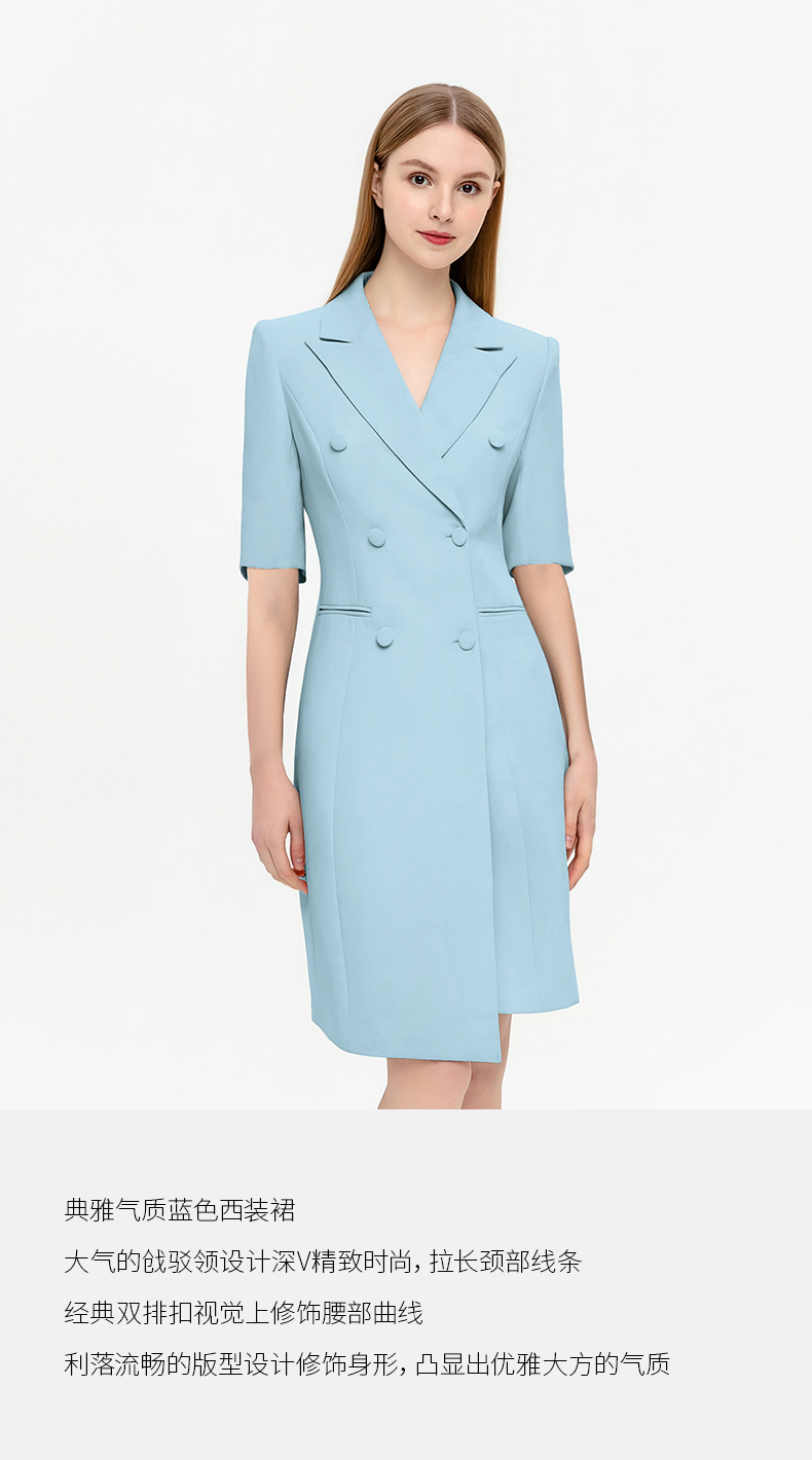 IWY/蓝色西装连衣裙短袖高级气质主持人时尚通勤职业装美容院工装Q13209