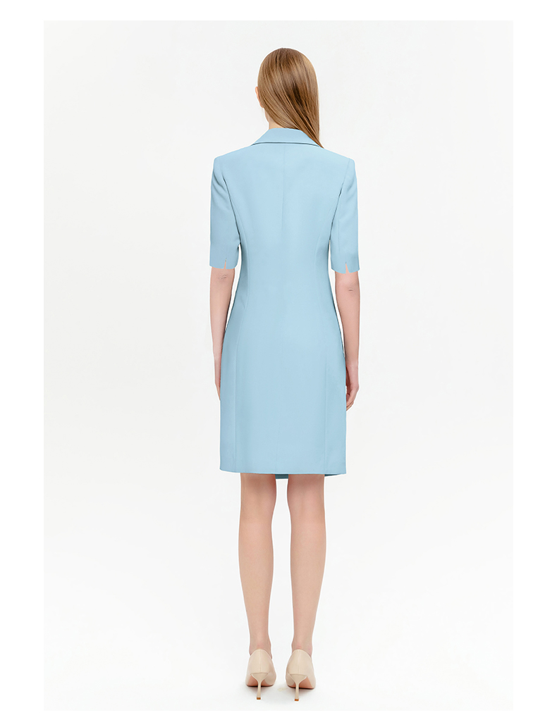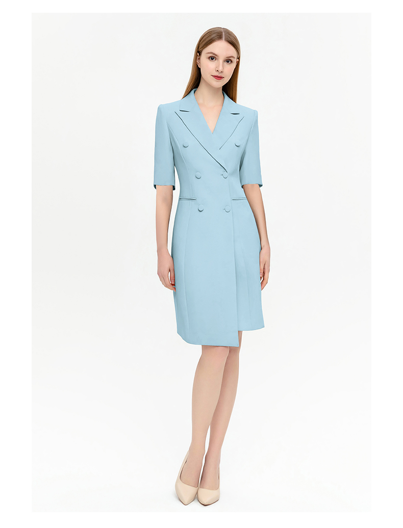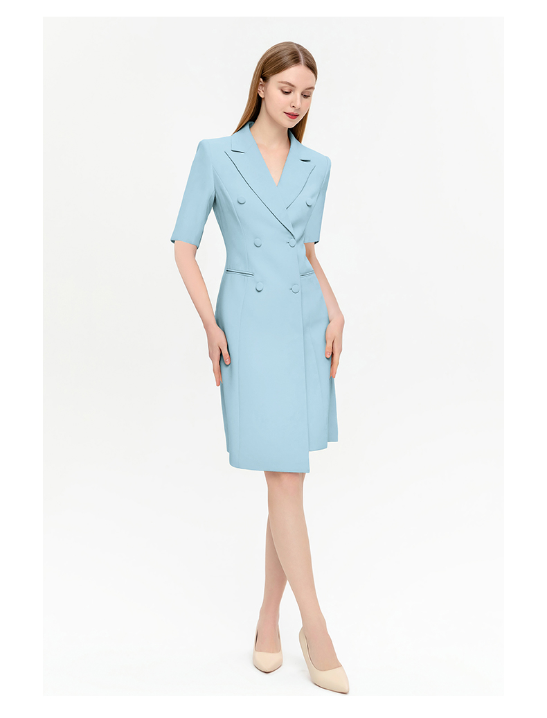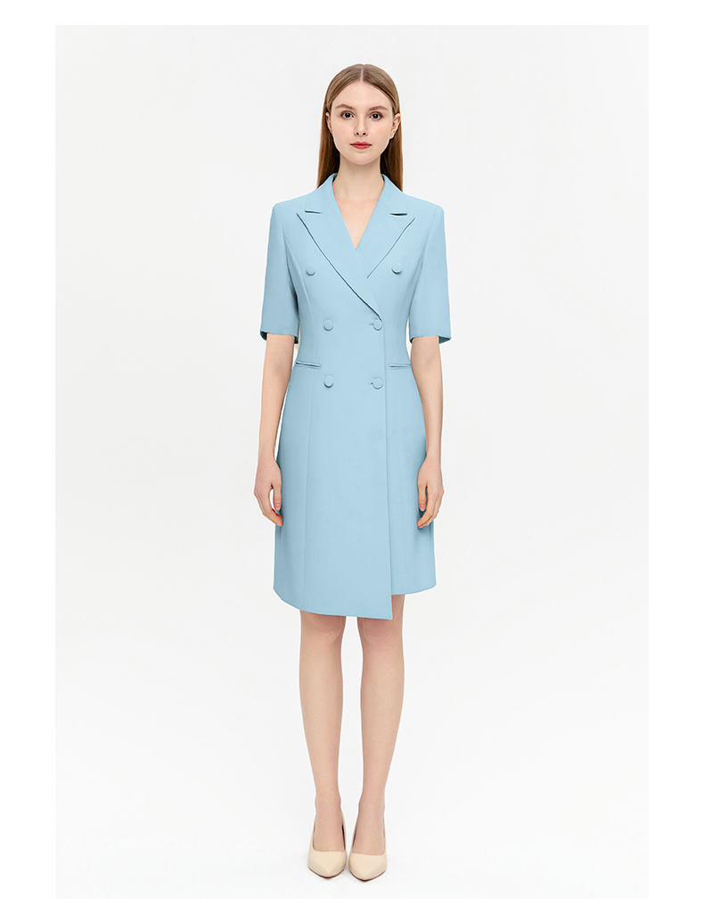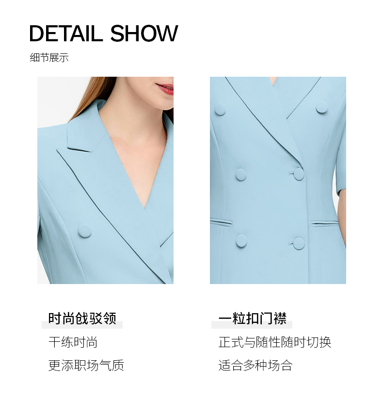 IWY/蓝色西装连衣裙短袖高级气质主持人时尚通勤职业装美容院工装Q13209