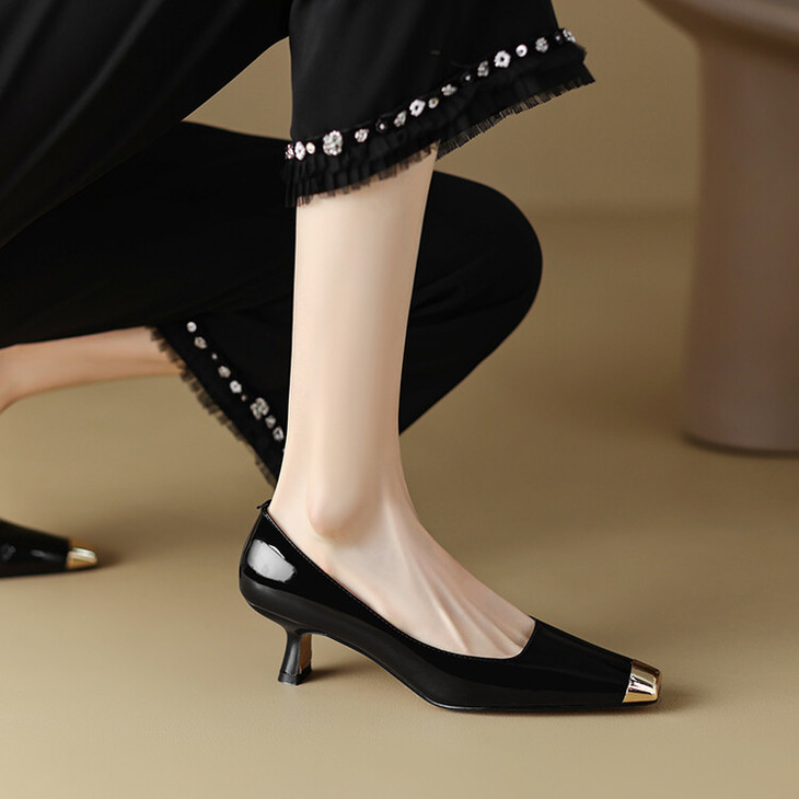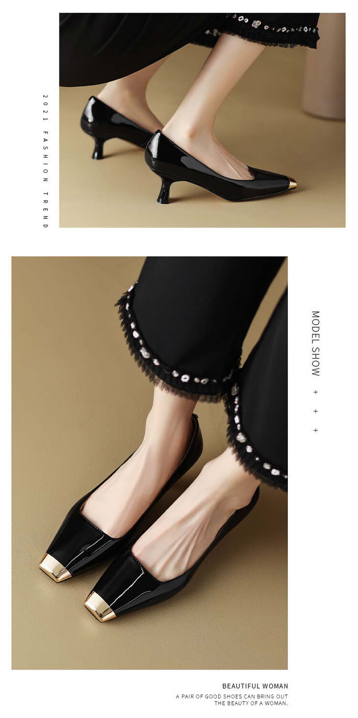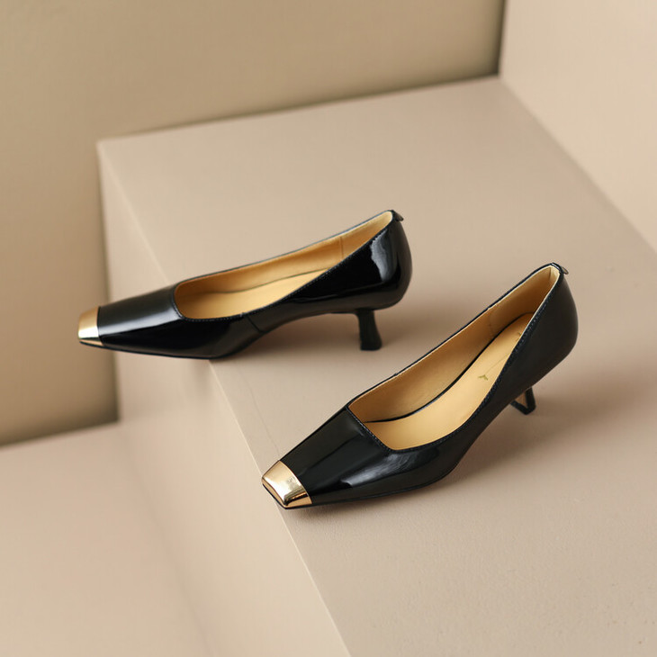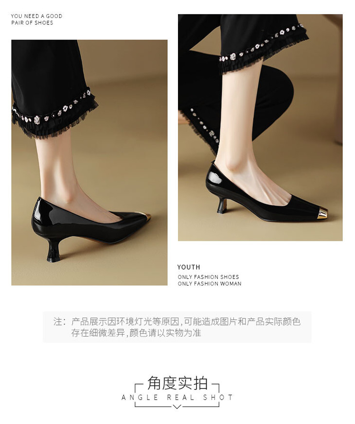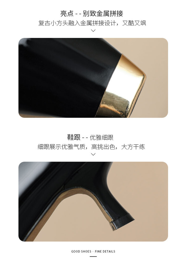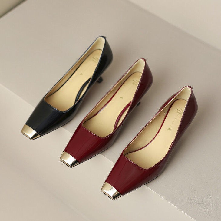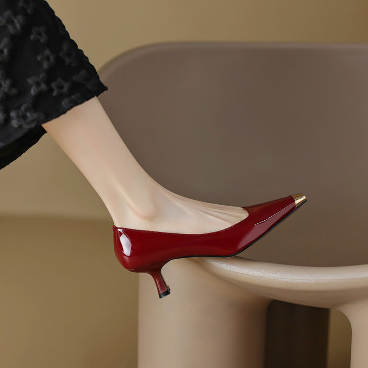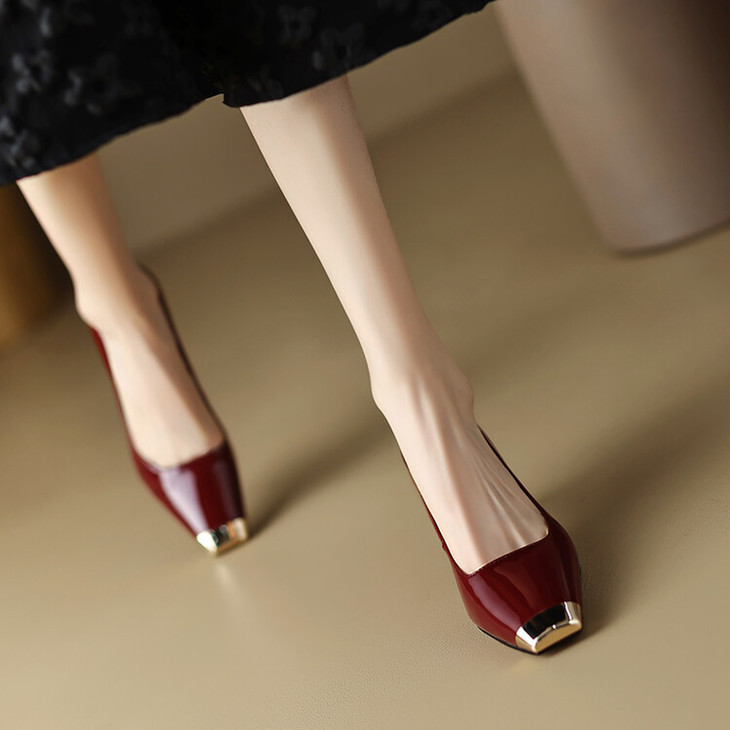 【预售5天】真皮酒红色牛皮气质名媛高跟鞋金属方头细跟单鞋女HCYEHD&K3267
