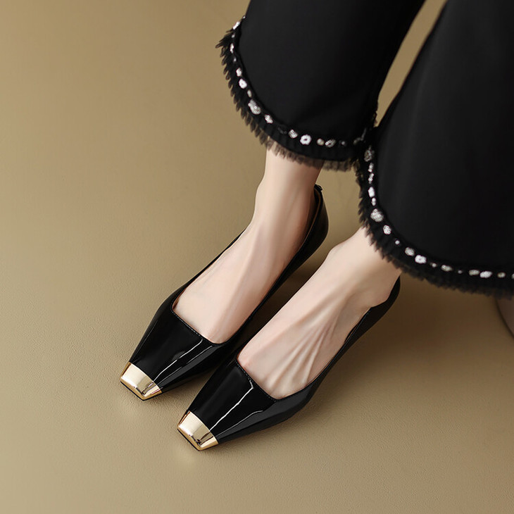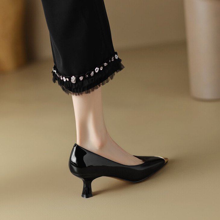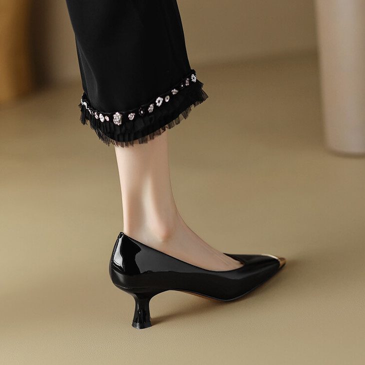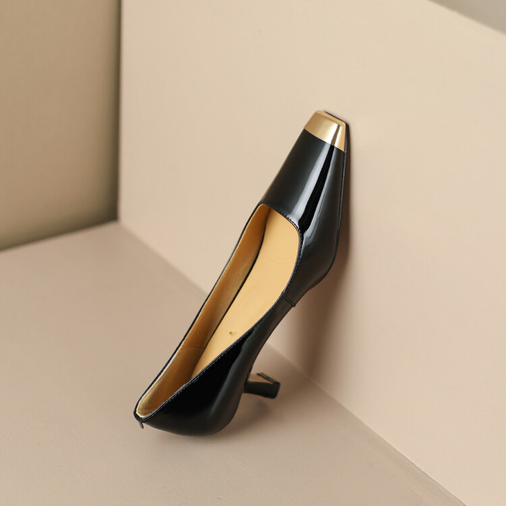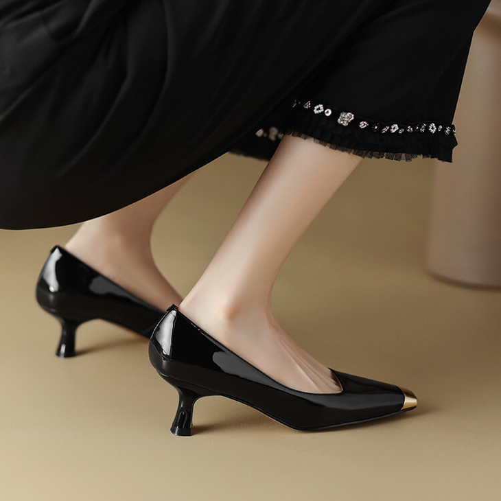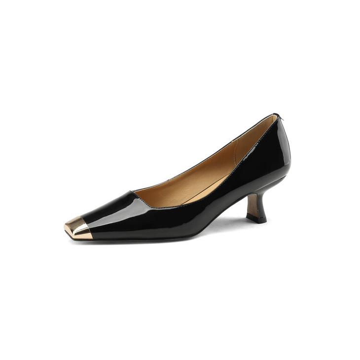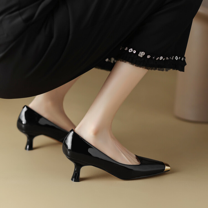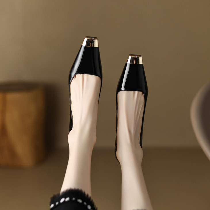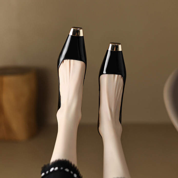 【预售5天】真皮酒红色牛皮气质名媛高跟鞋金属方头细跟单鞋女HCYEHD&K3267
