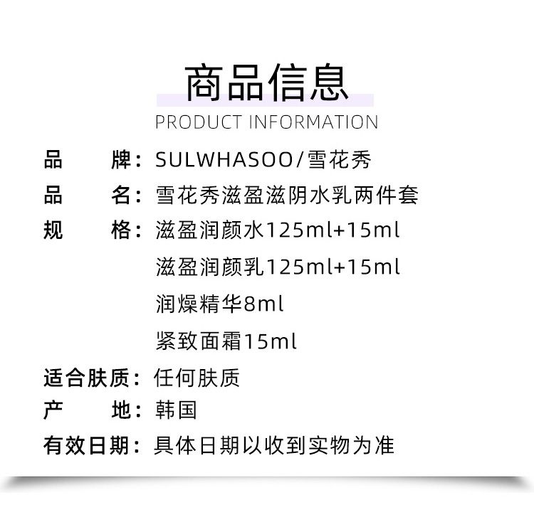 【预售 急单慎拍】雪花秀套盒滋阴水乳两2件套装保湿养护礼盒