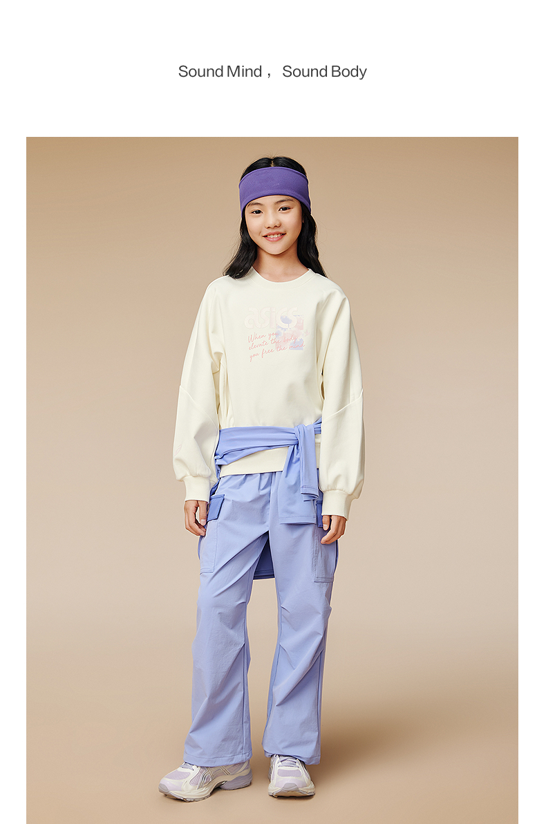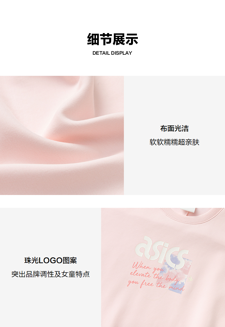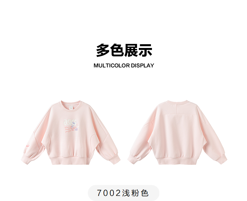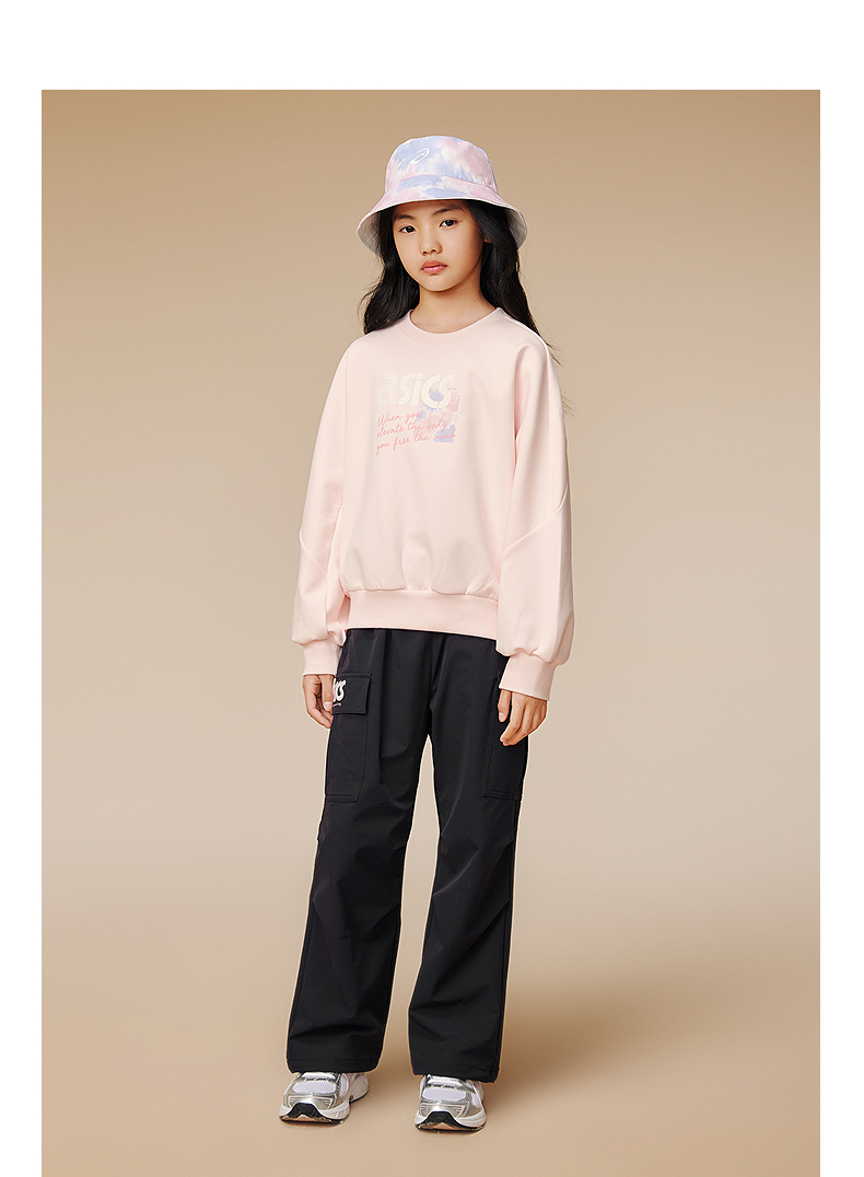 ASICS/亚瑟士儿童2025年新款女童针织圆领卫衣挺括有型印花长袖