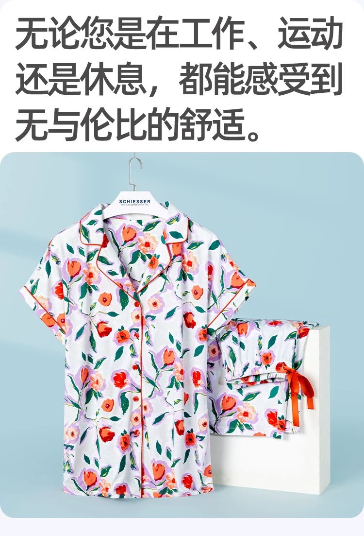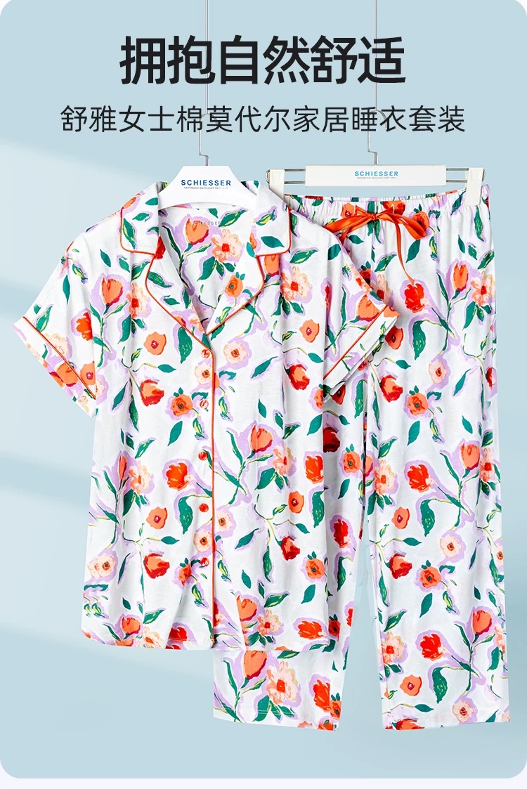 【经典棉莫】SCHIESSSER德国舒雅女士棉莫代尔短袖七分裤套装31/24762H