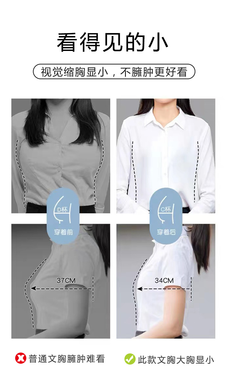 光面兔耳朵养护文胸 大胸显小 穿衣显瘦 穿衣舒适不留痕 面料光滑 塑型文胸
