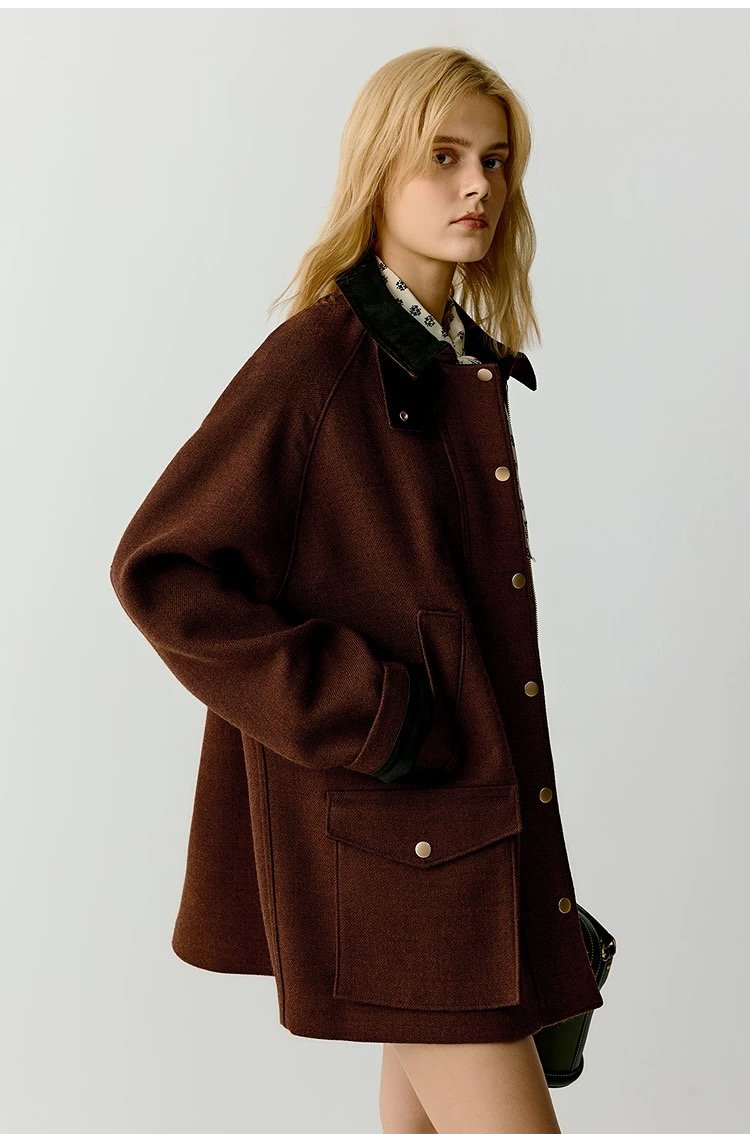 灯芯绒的撞色衣领,既复古又时尚