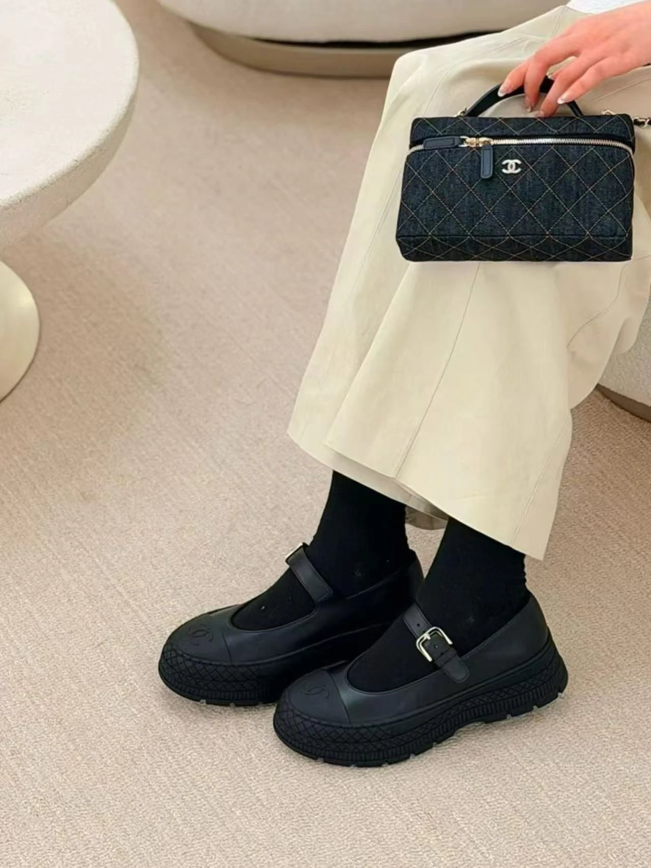 重磅渠道 26P厚底玛丽珍 羊皮TPU拼接厚底单鞋 5cm厚底增高鞋 上脚秒变小兔子 大长腿神器