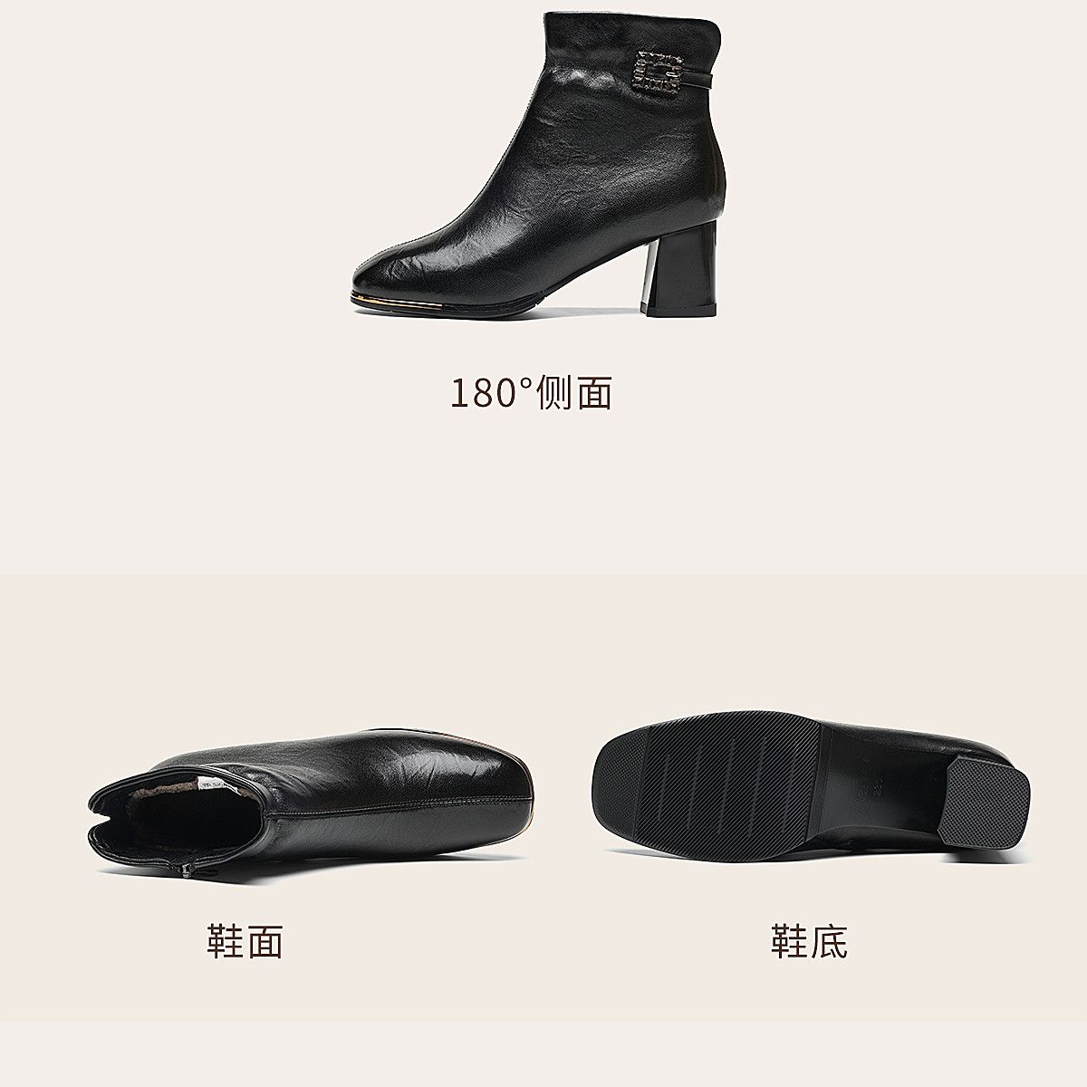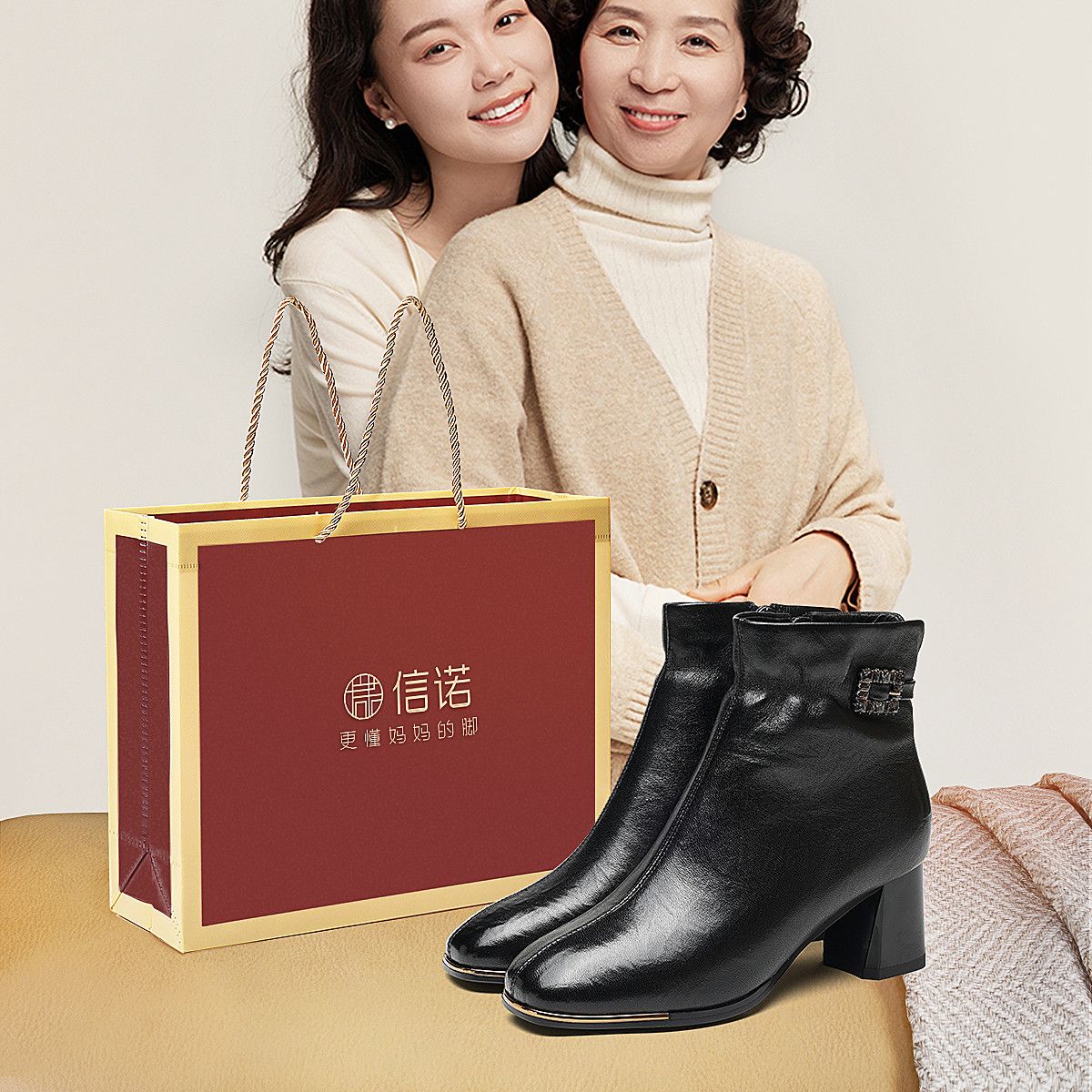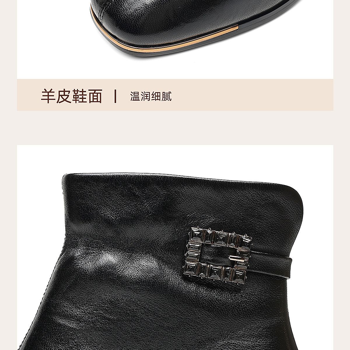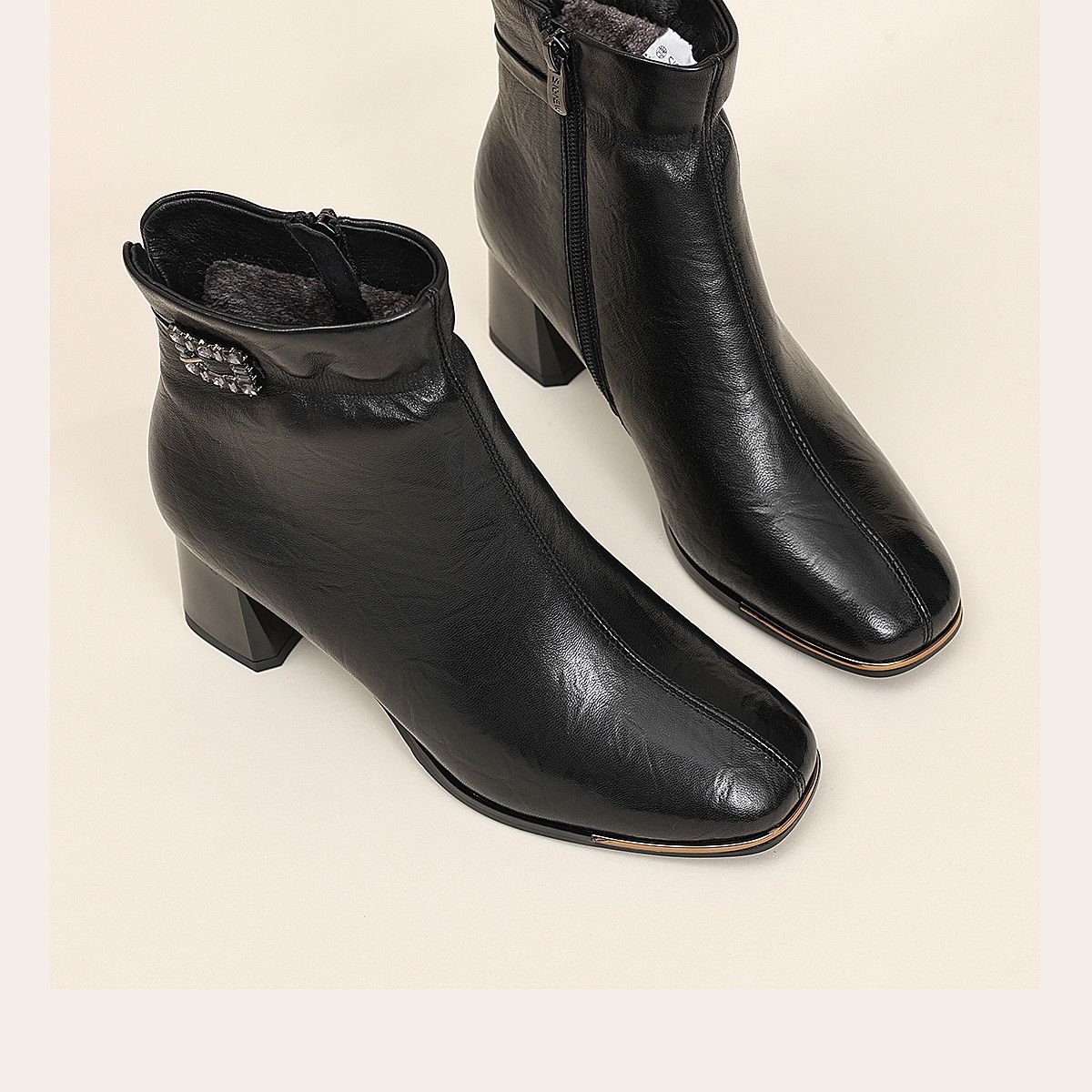 信诺中年妈妈鞋粗跟短靴女加绒羊皮靴子2025冬季新款高跟鞋时装靴X5M032-167