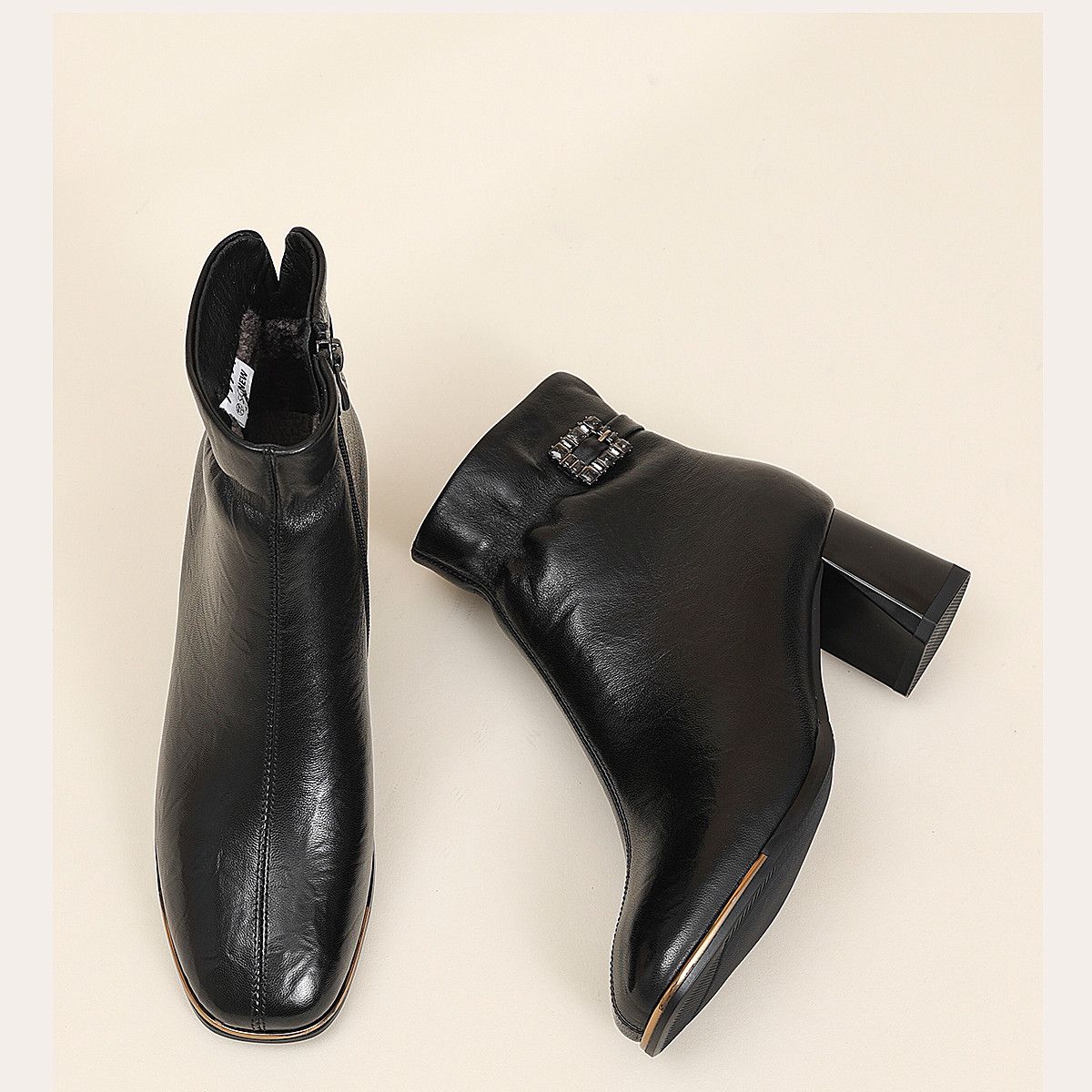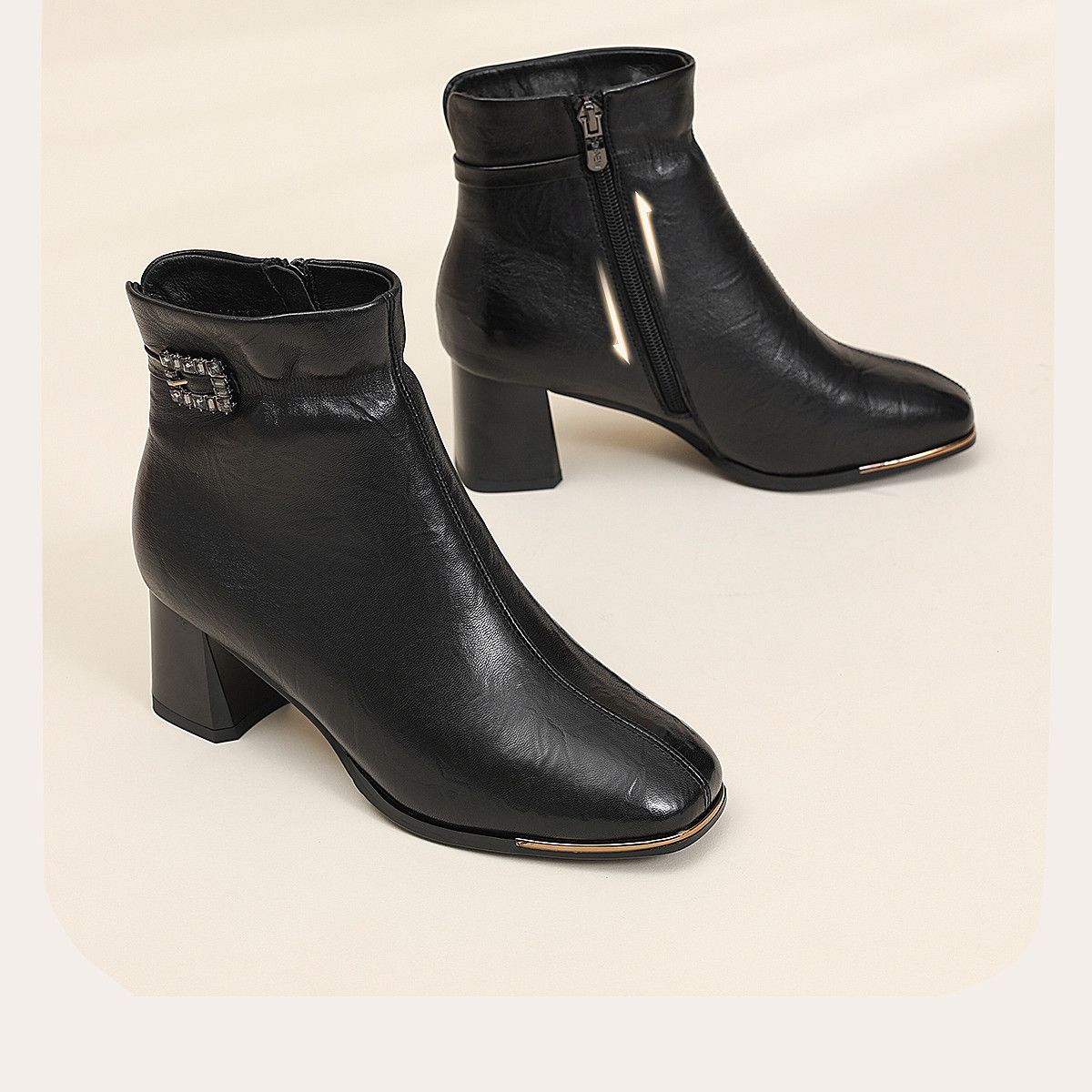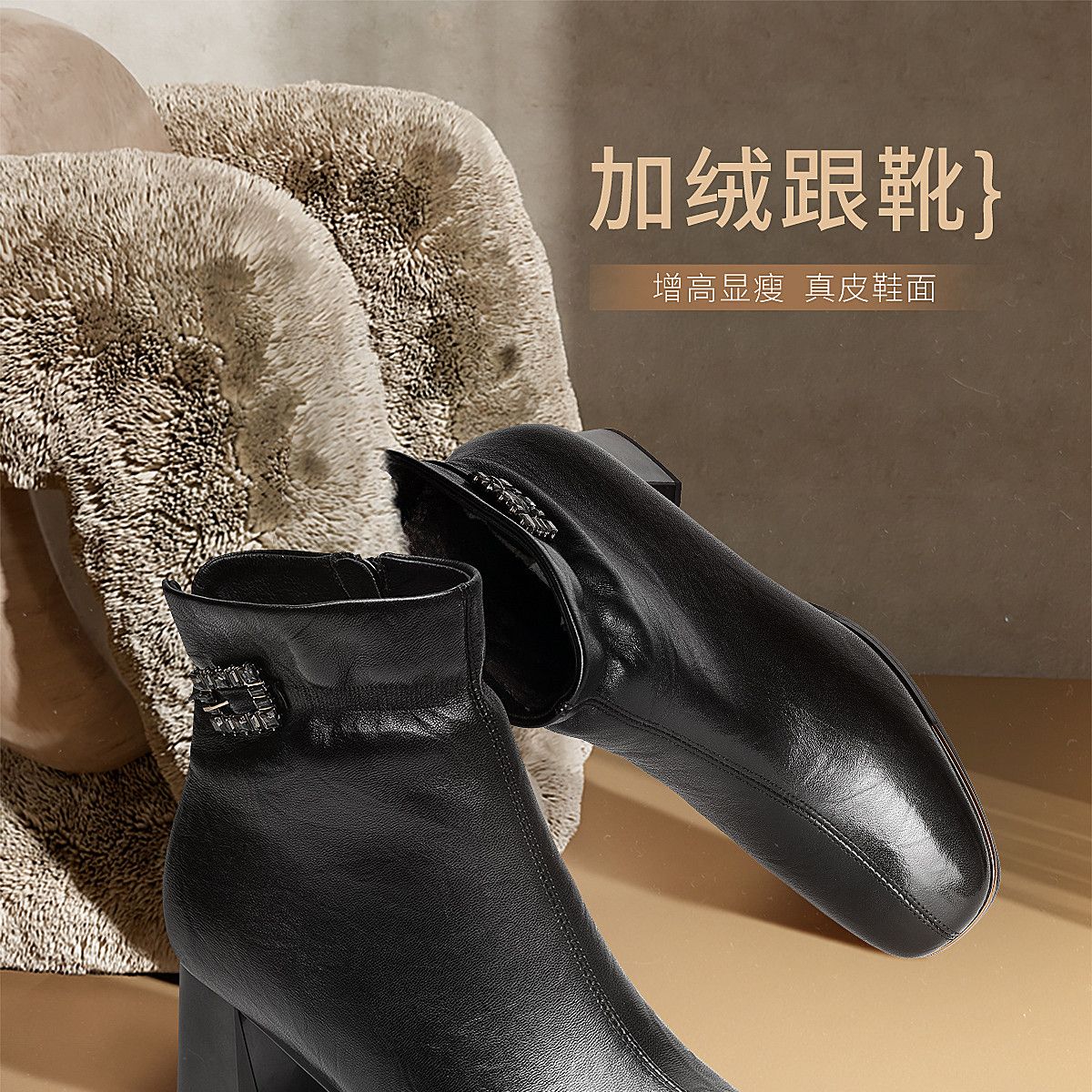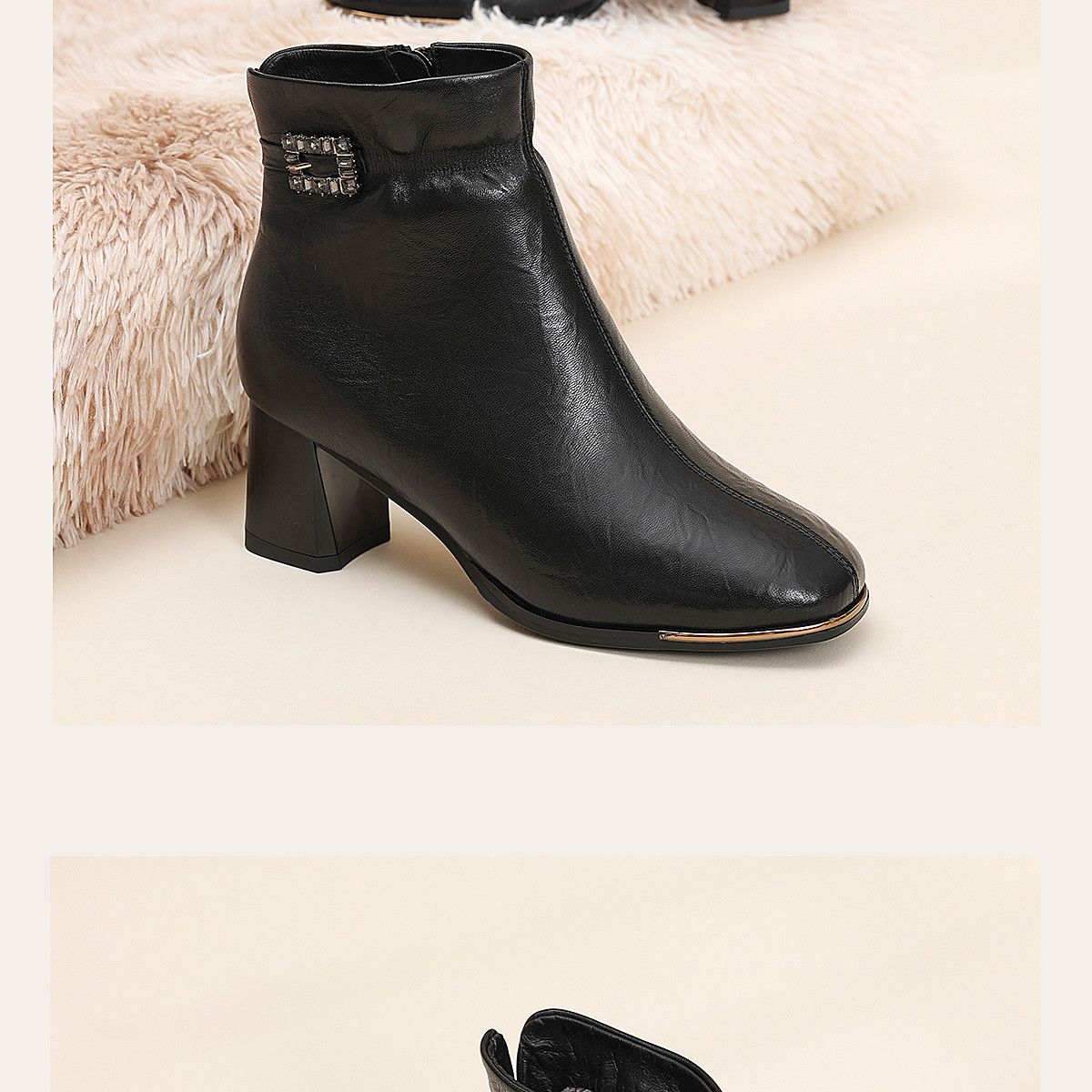 信诺中年妈妈鞋粗跟短靴女加绒羊皮靴子2025冬季新款高跟鞋时装靴X5M032-167