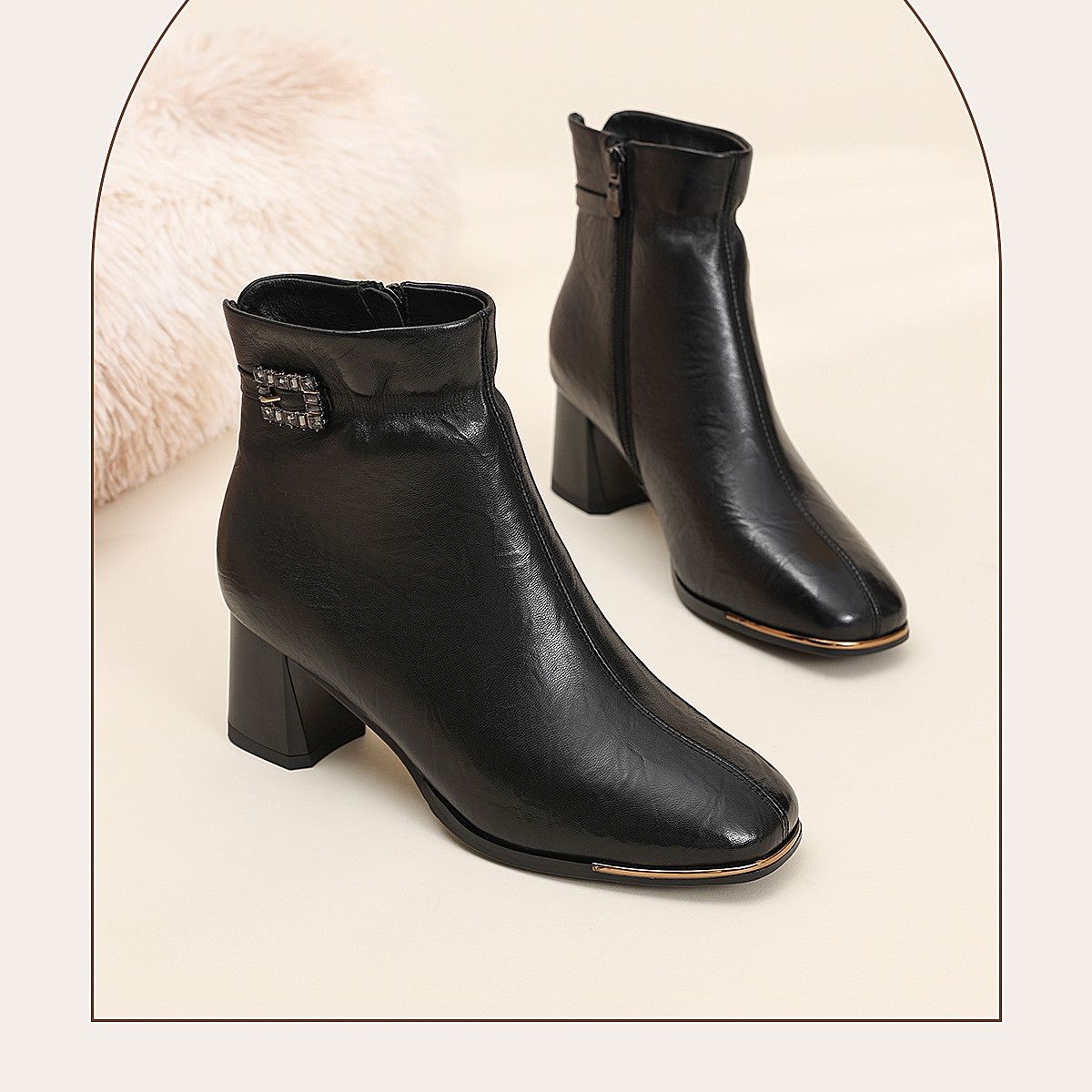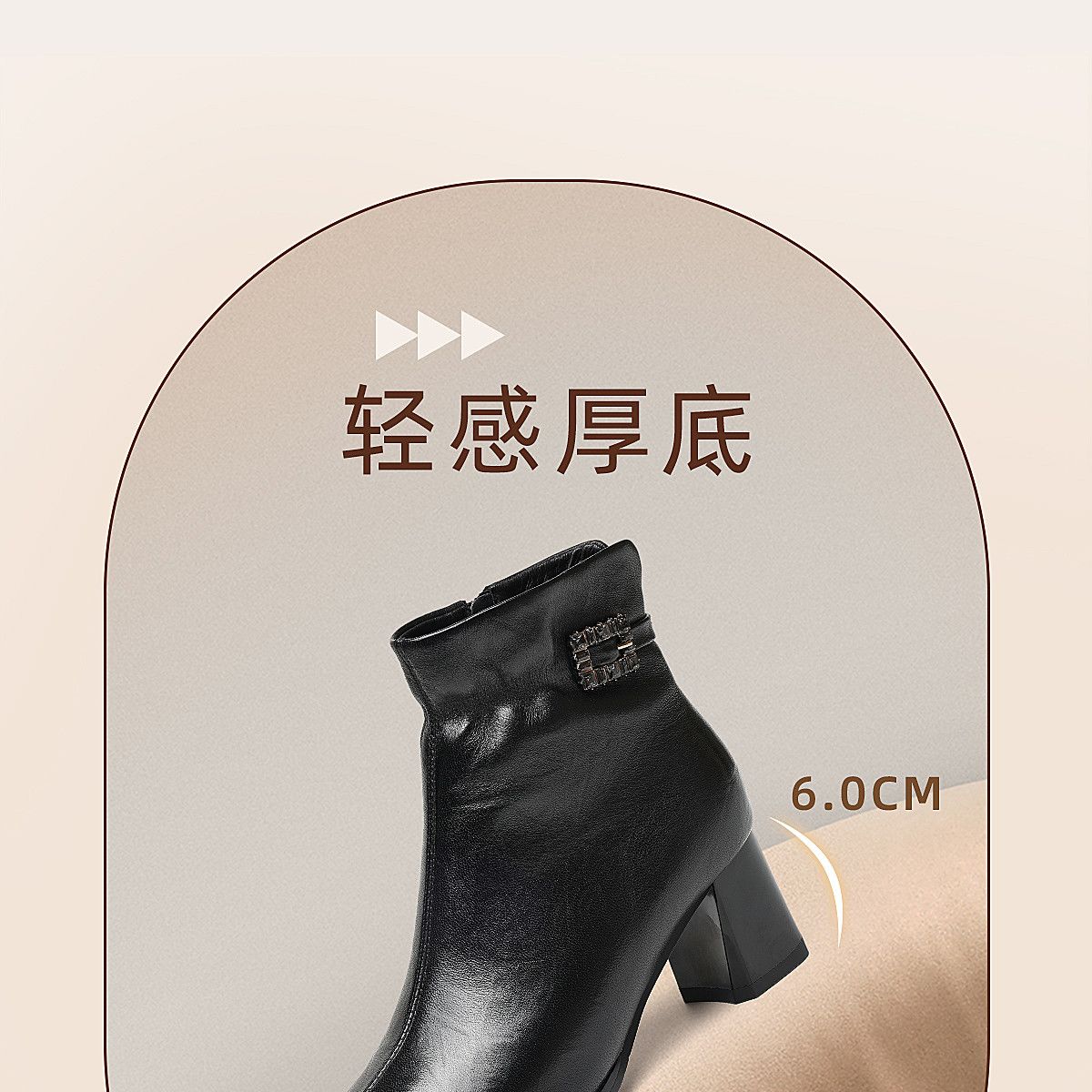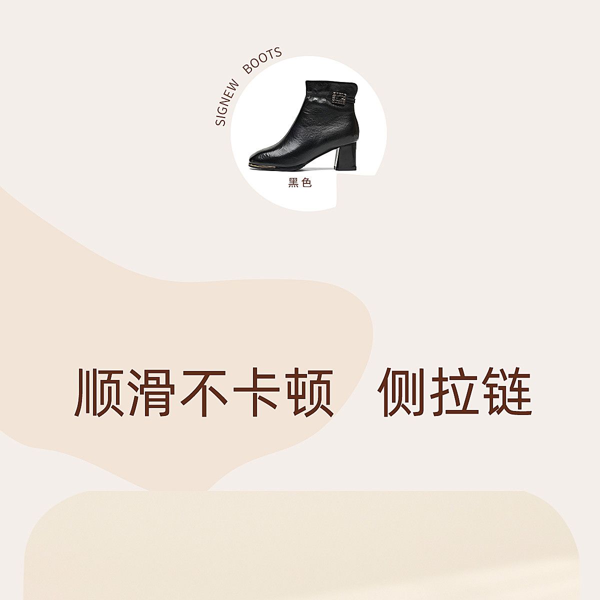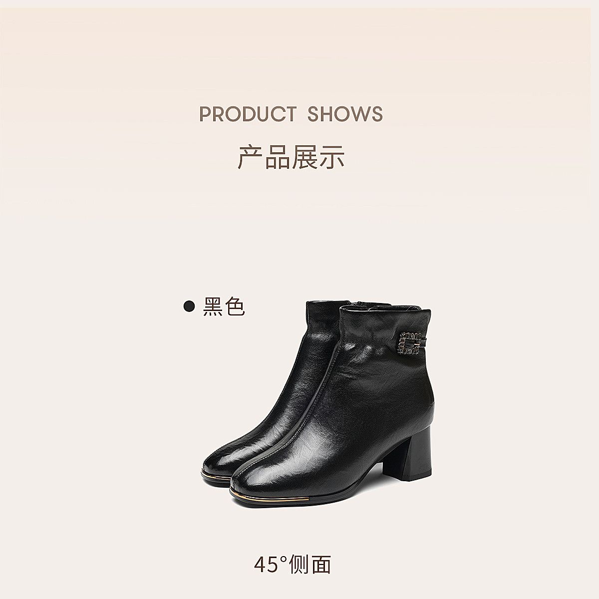 信诺中年妈妈鞋粗跟短靴女加绒羊皮靴子2025冬季新款高跟鞋时装靴X5M032-167