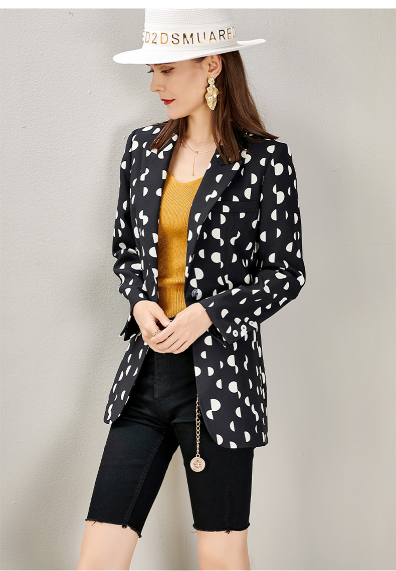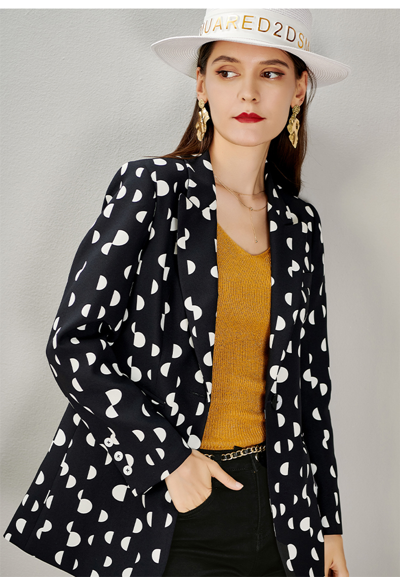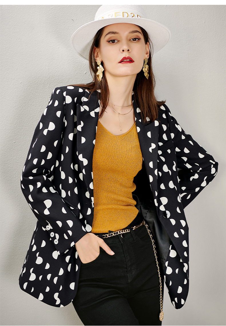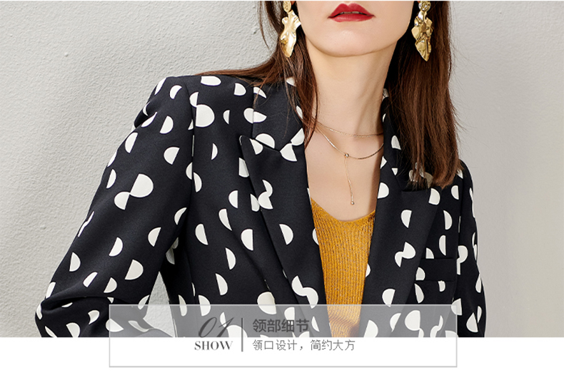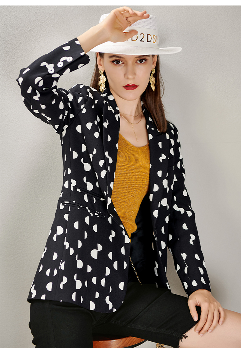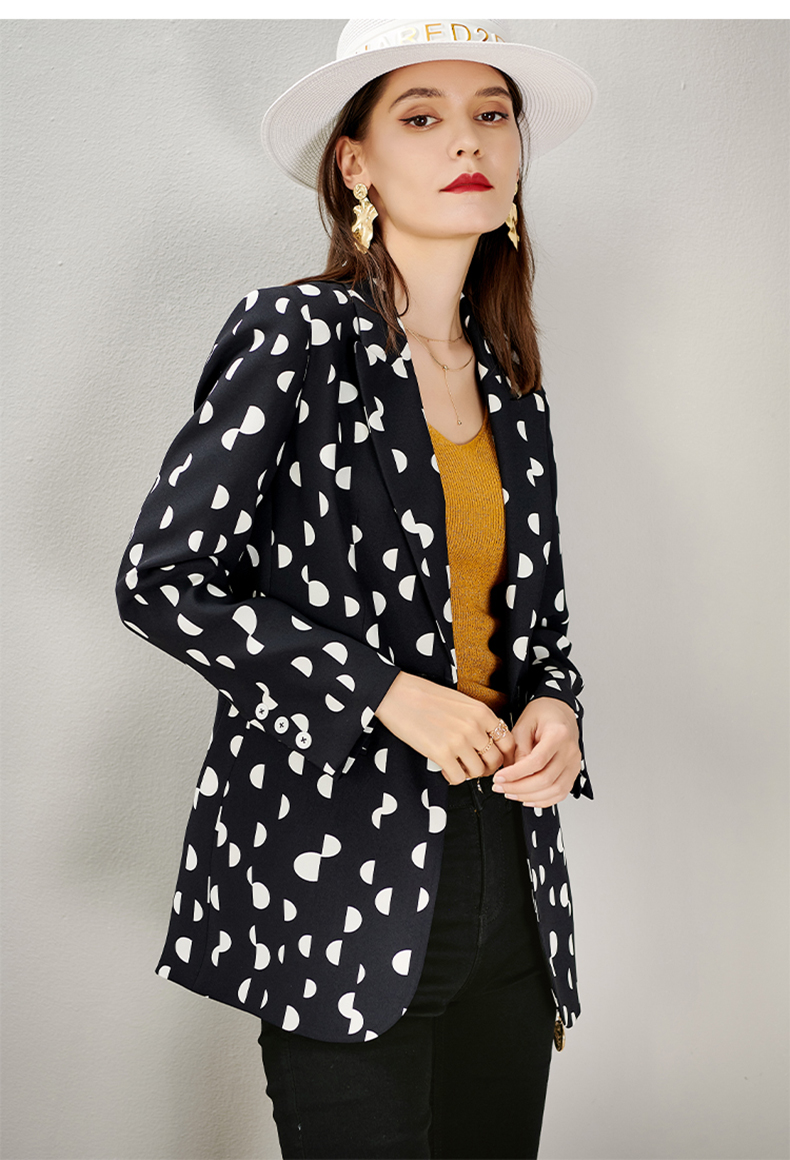 剩S/M/L/XL 芳外秋季新款时尚波点一粒扣西装外套显瘦通勤外套女8D21CX1417