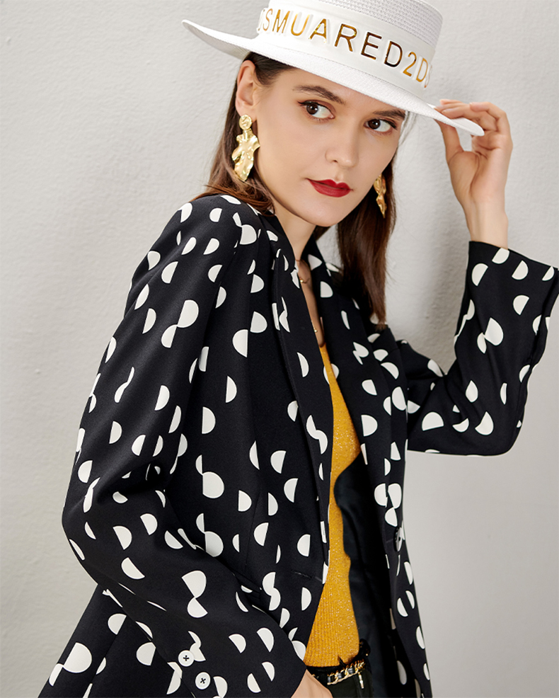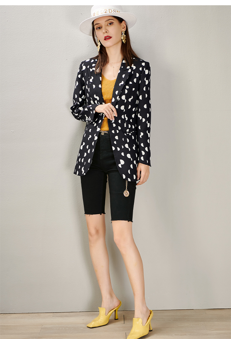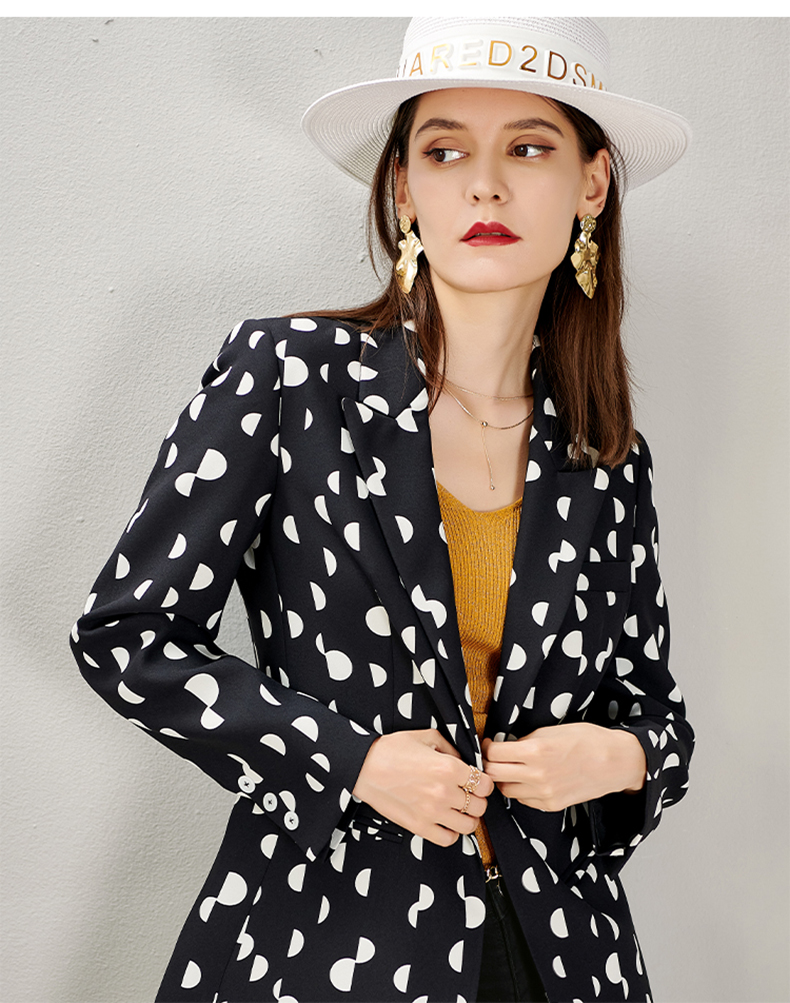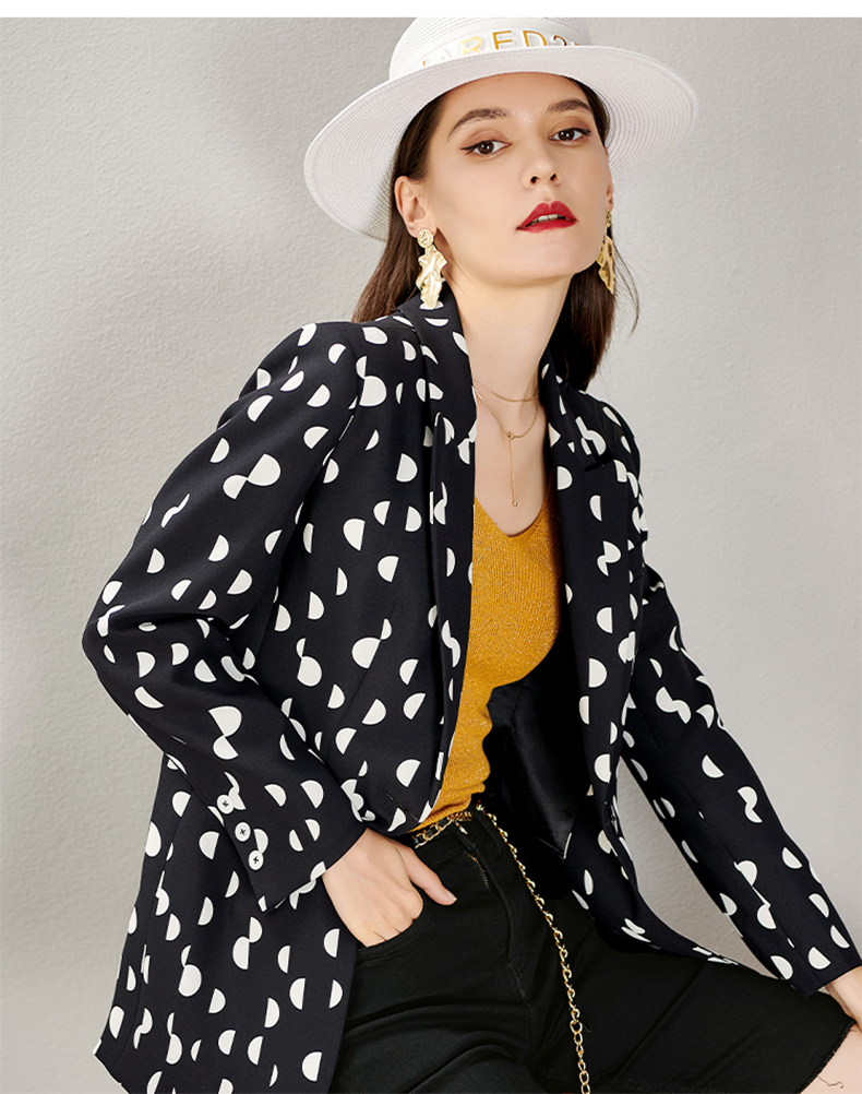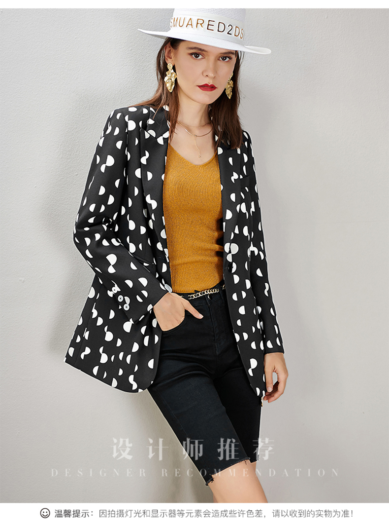 剩S/M/L/XL 芳外秋季新款时尚波点一粒扣西装外套显瘦通勤外套女8D21CX1417