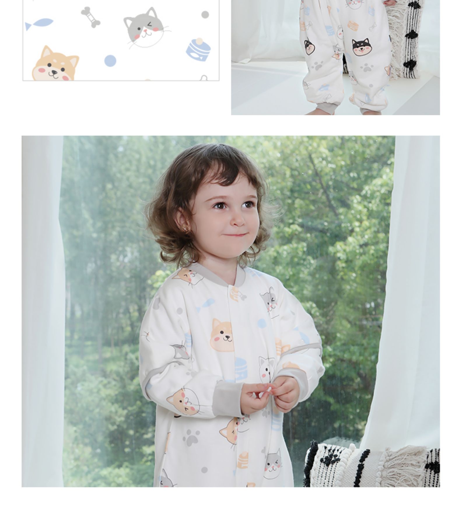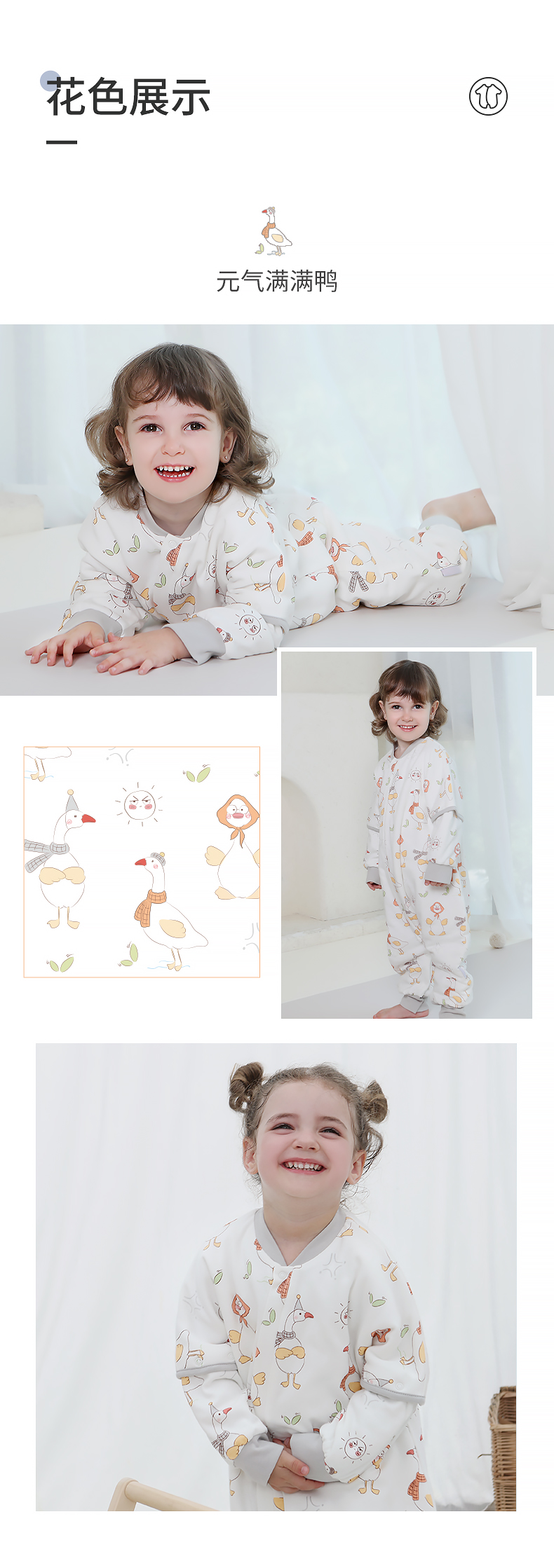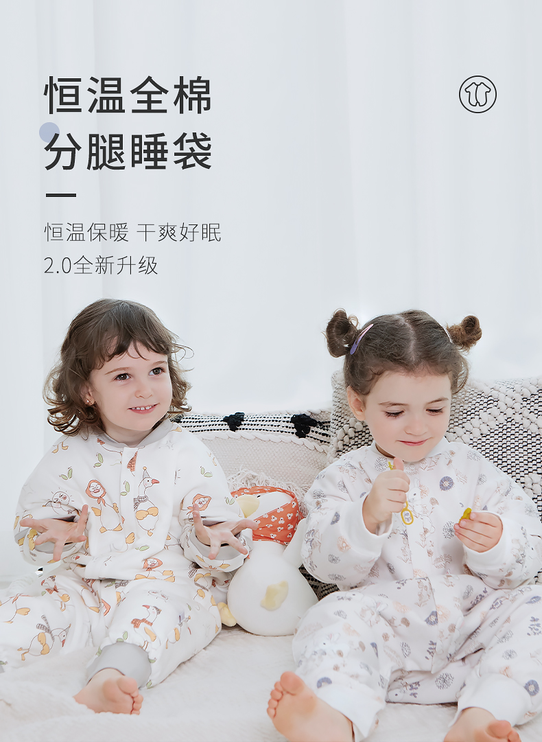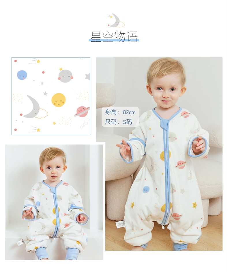 little tiny婴儿分腿恒温全棉睡袋秋冬宝宝睡袋防踢被儿童春秋长袖