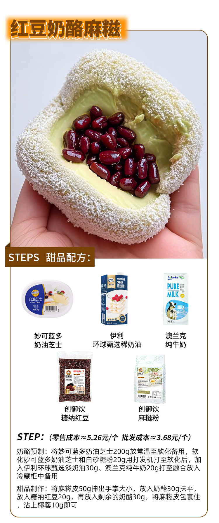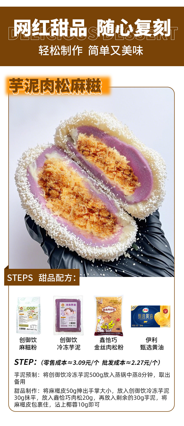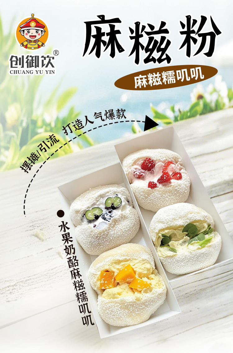 【糯叽叽❗️麻糍粉】 打造人气爆款,浓郁糯米香扑鼻而来,添加全脂奶粉,0反式脂肪酸,500g麻糍软糯拉丝甜品店摆摊原料专用商用麻糍QQ