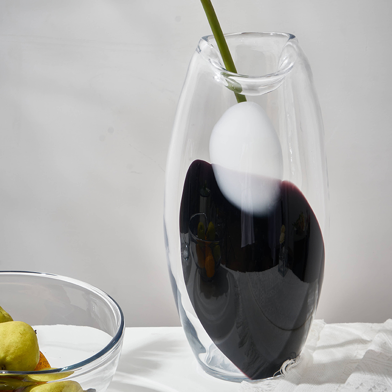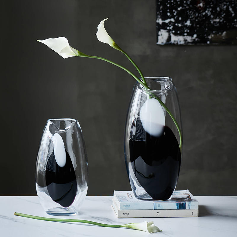 现代大号渐变斑点透明直筒创意炮弹玻璃花瓶大口果盘台面居家饰品