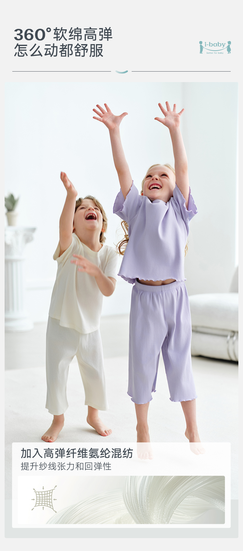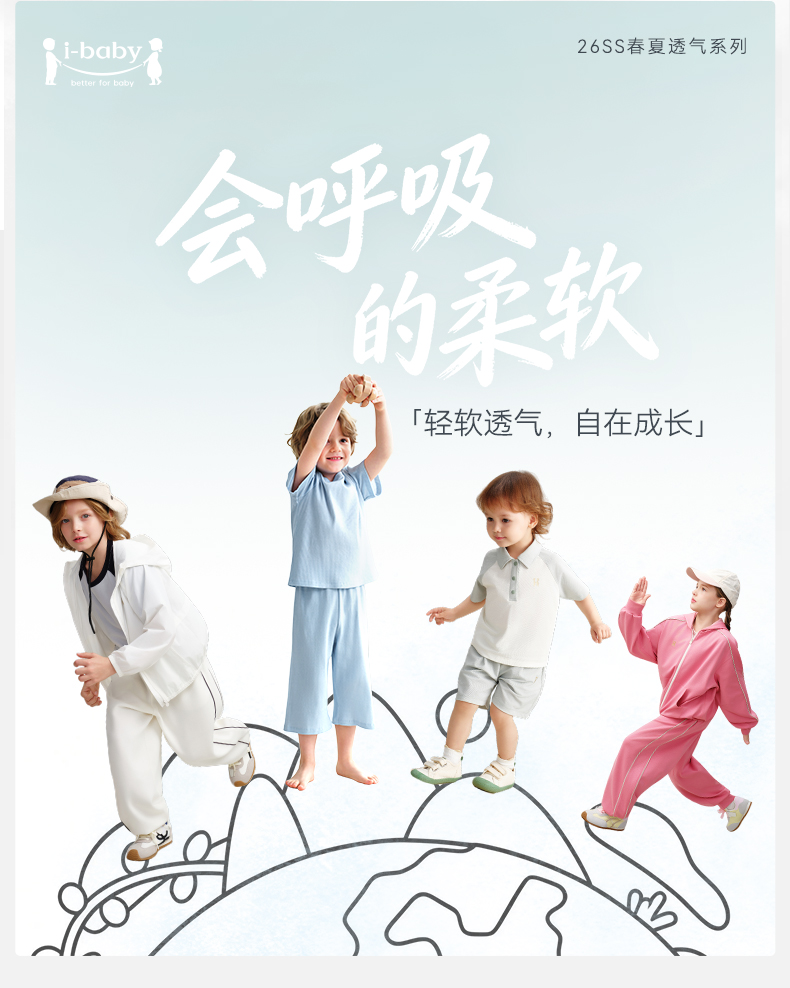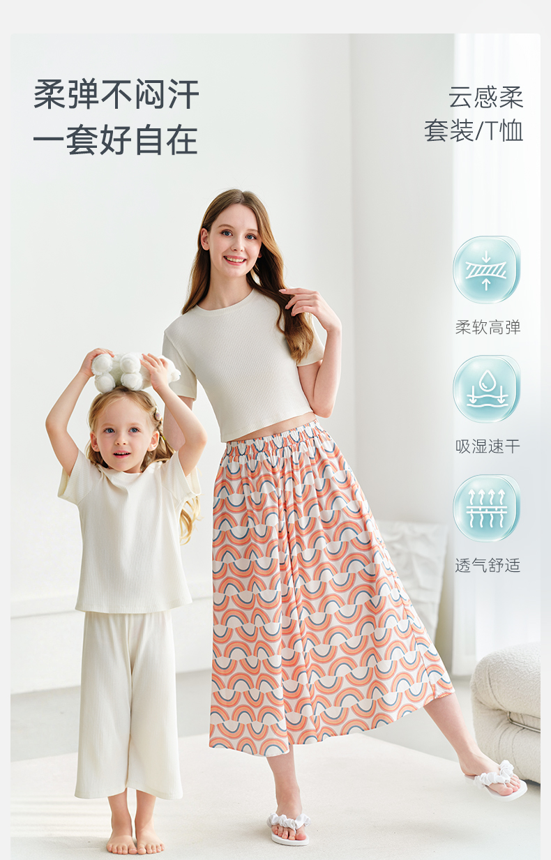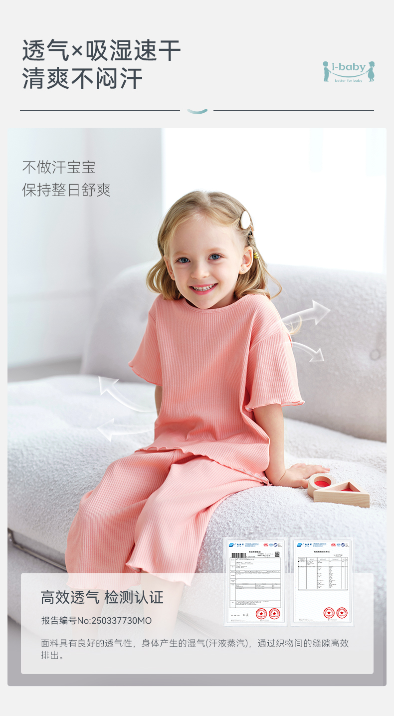 【2026春夏新品】ibaby×outlast太空科技恒温云感柔儿童短袖七分裤套装亲子短袖T恤