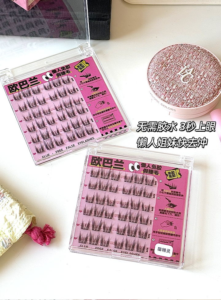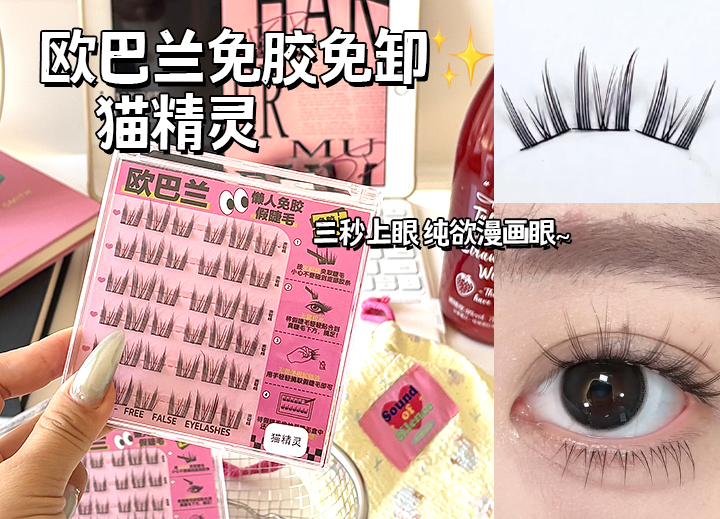 欧巴兰【新款猫精灵免胶假睫毛】眼妆懒人三部曲纯欲少女漫画感手残党福音6排免胶款