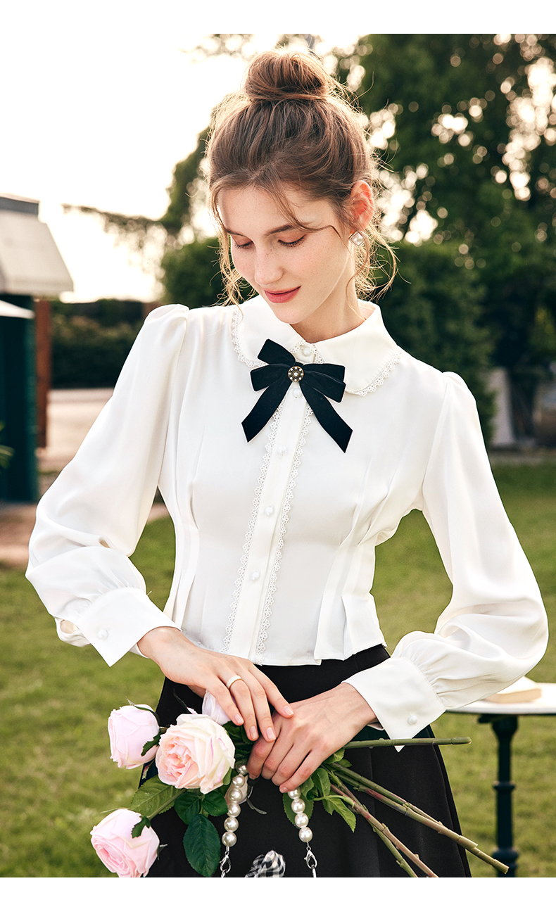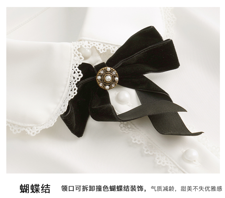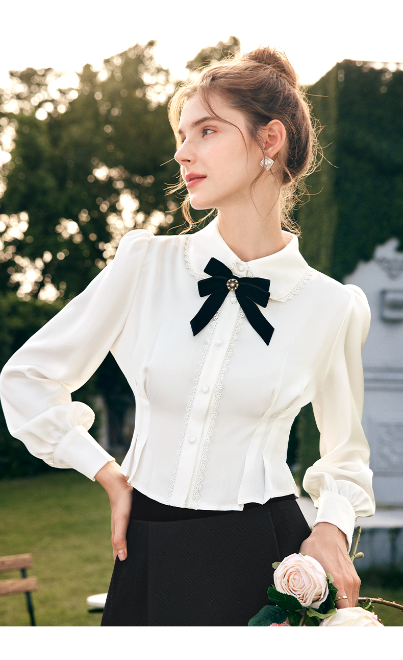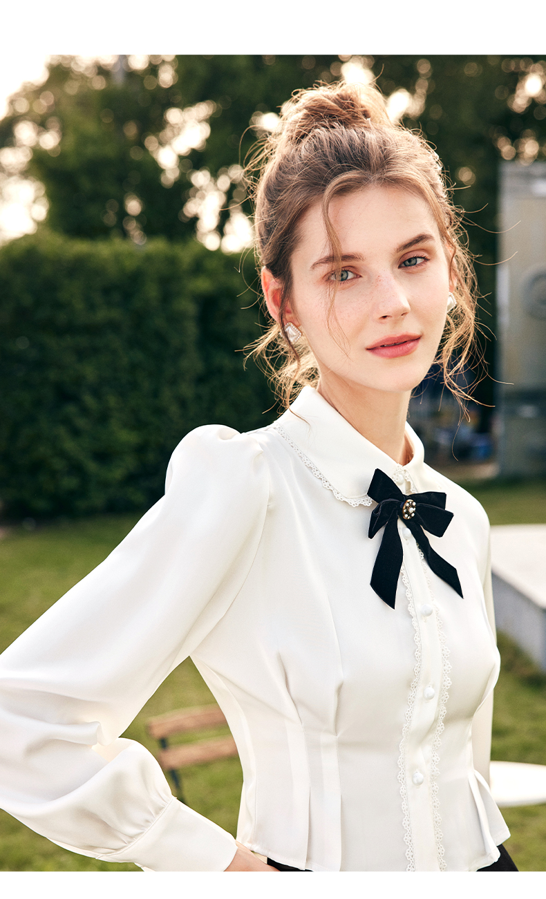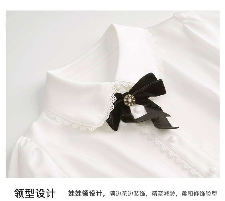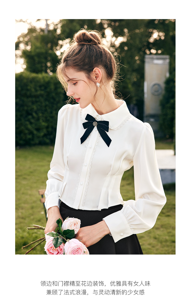 OLrain欧芮儿法式白色缎面衬衫女春季2023新款复古宫廷风长袖衬衣