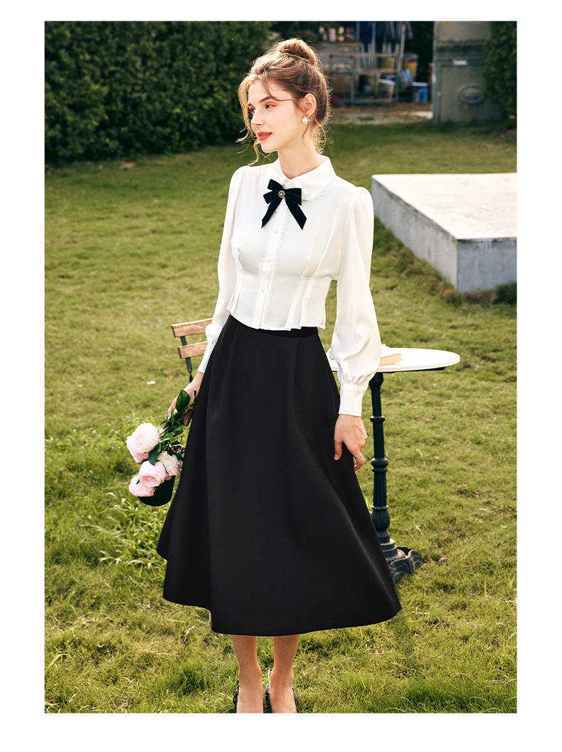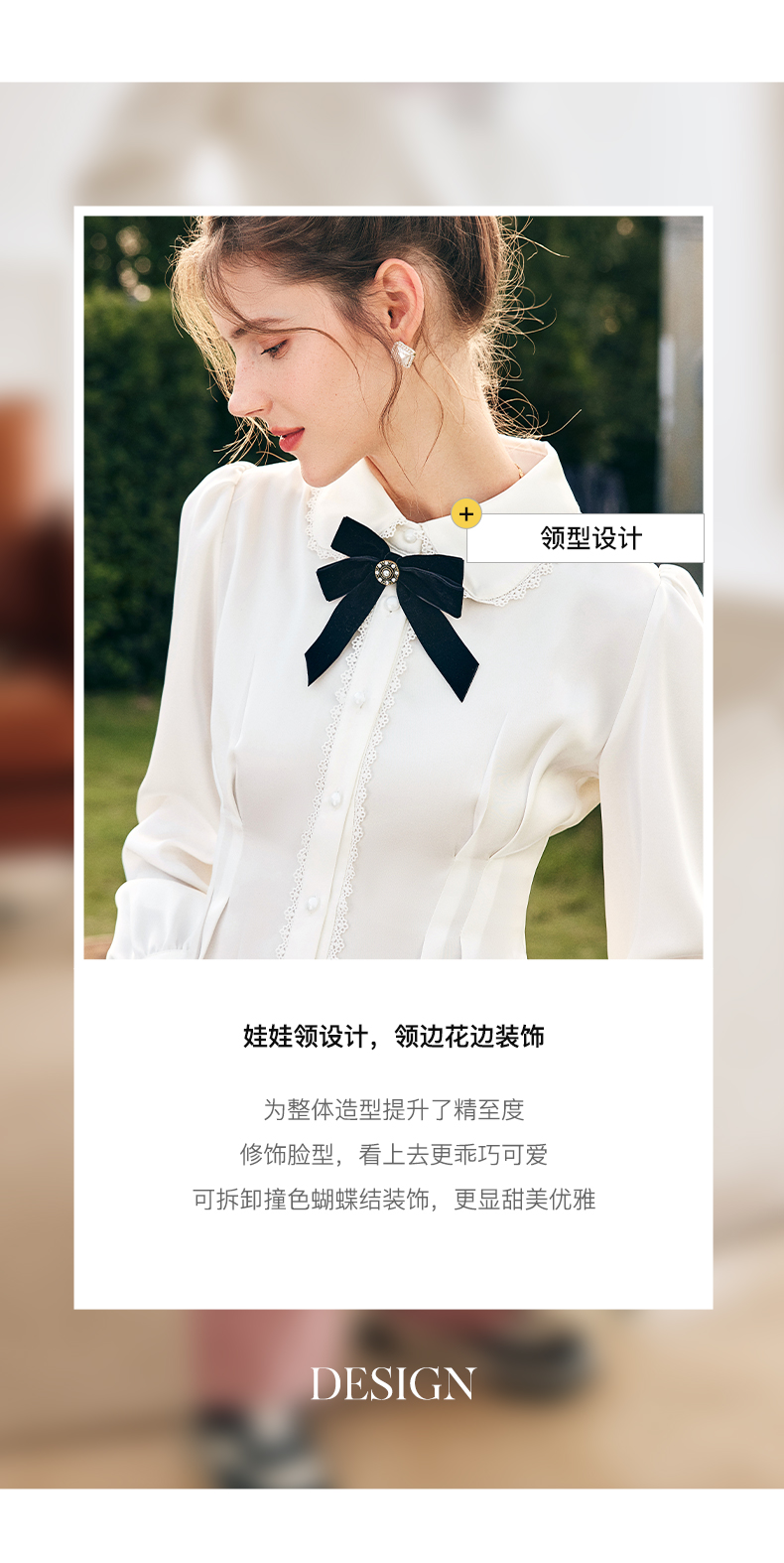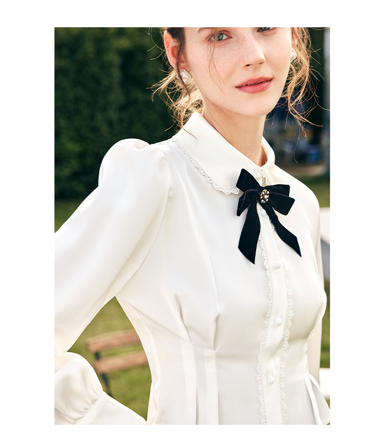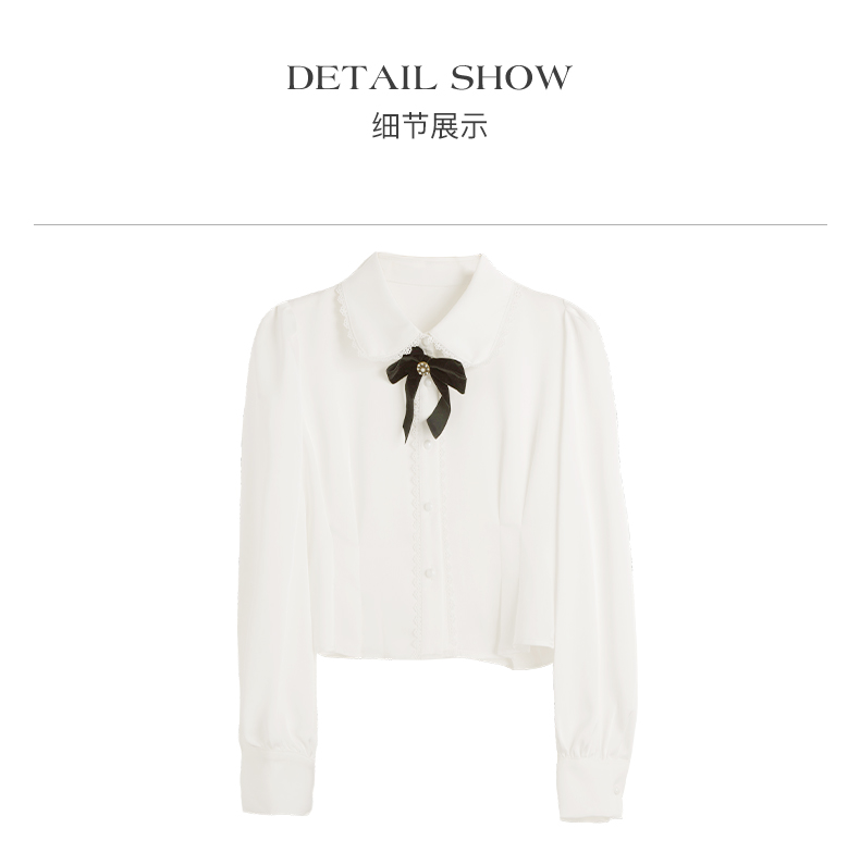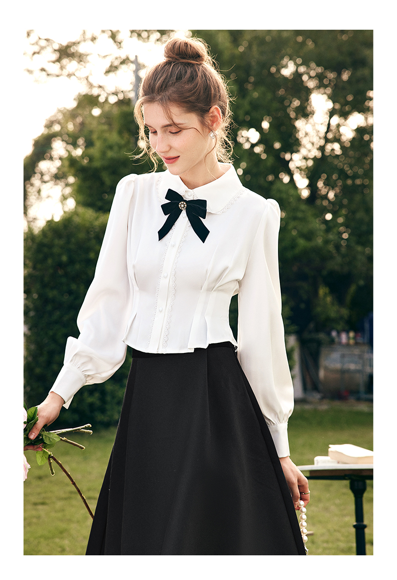 OLrain欧芮儿法式白色缎面衬衫女春季2023新款复古宫廷风长袖衬衣