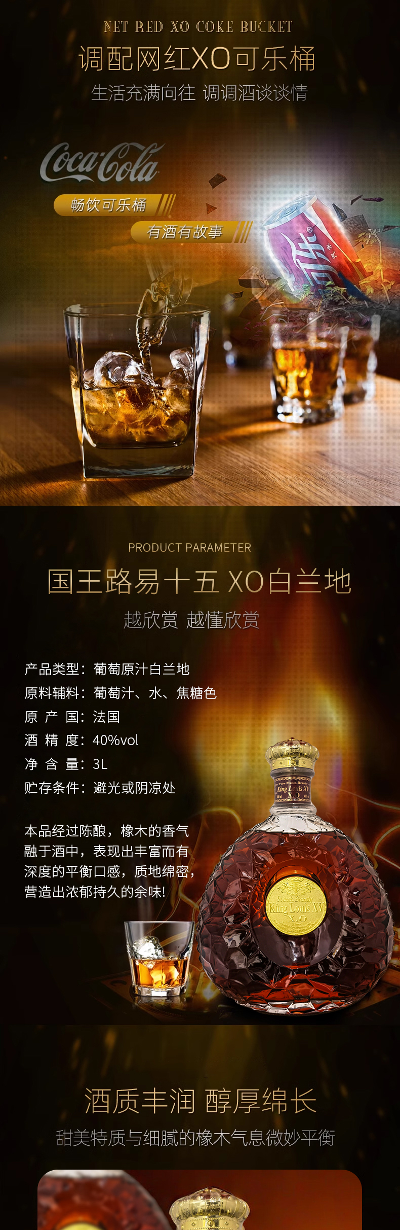 法国进口国王路易十五 XO白兰地 3L 40%Vol.