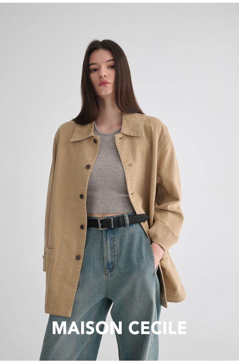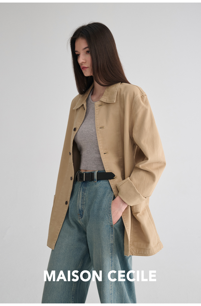 MAISON CECILE 秋季复古摩登工装感休闲百搭牛仔夹克外套