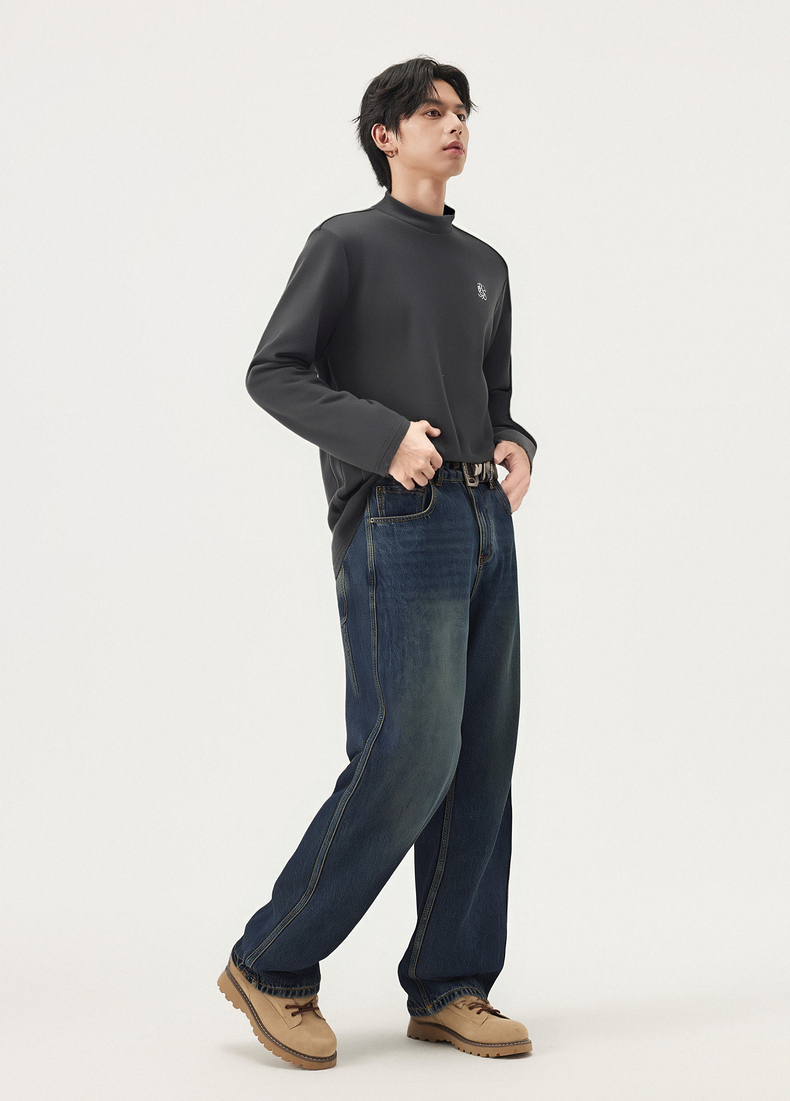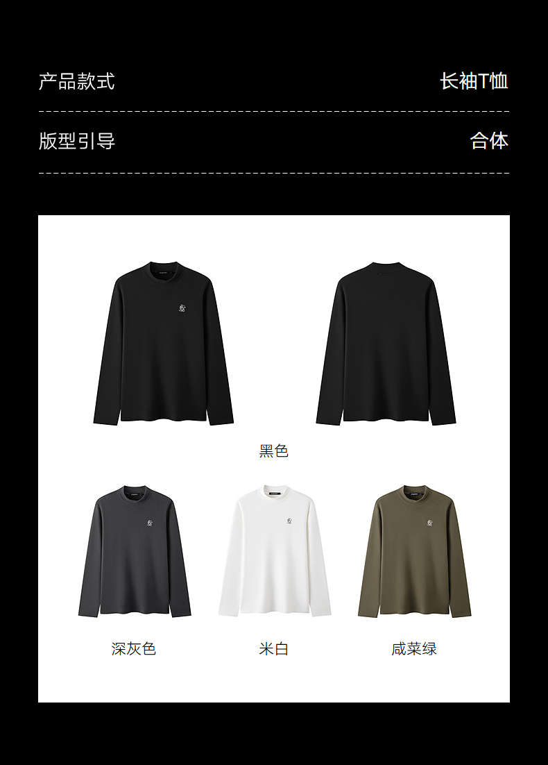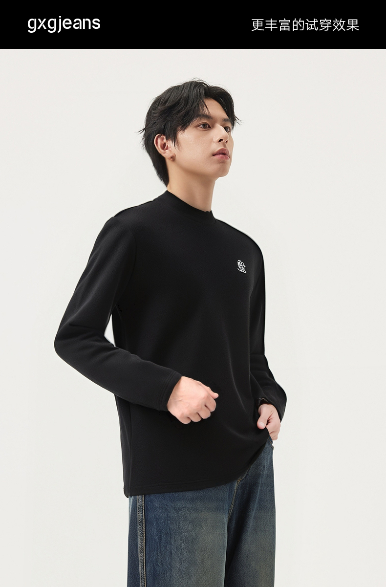 gxg.jeans男装 多色撞色印花基础半高领长袖打底衫 25年冬季热卖