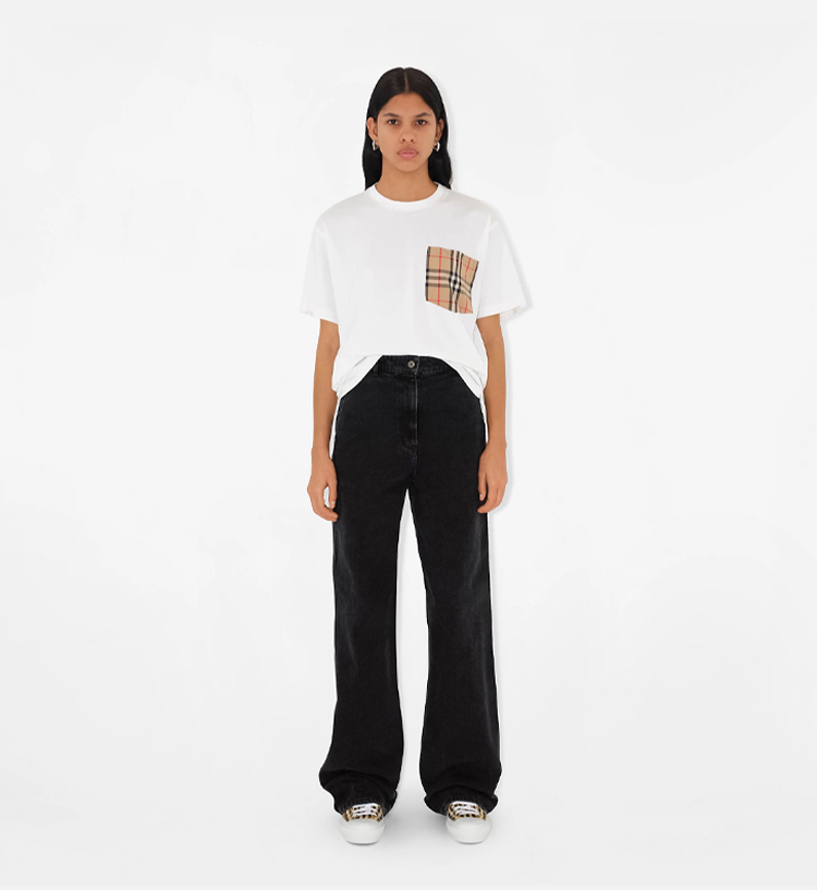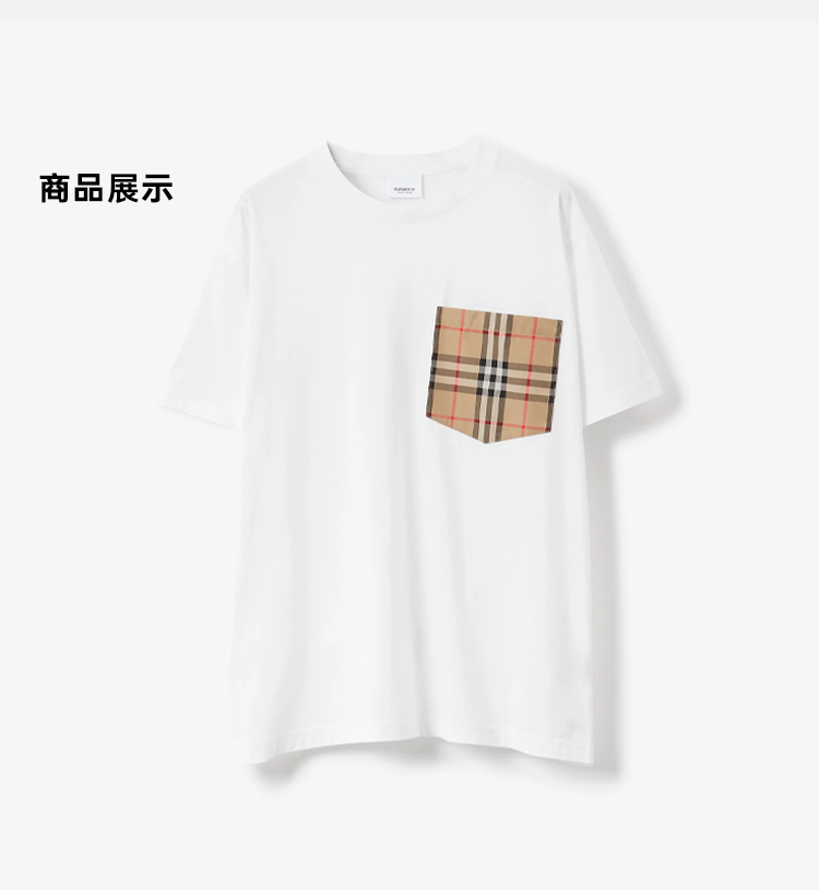 BURBERRY 巴宝莉 女士格纹口袋棉质宽松圆领短袖T恤 白色 8073031 A1464