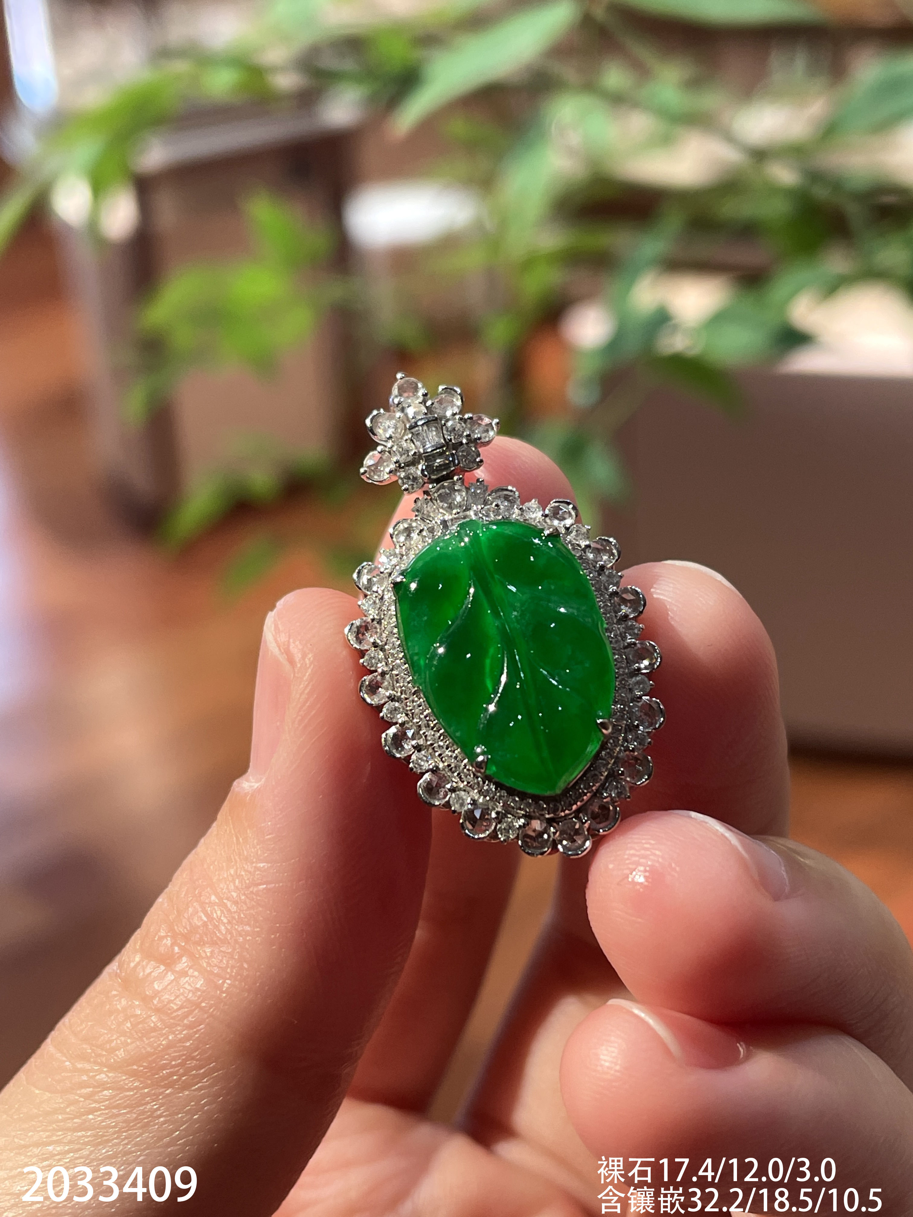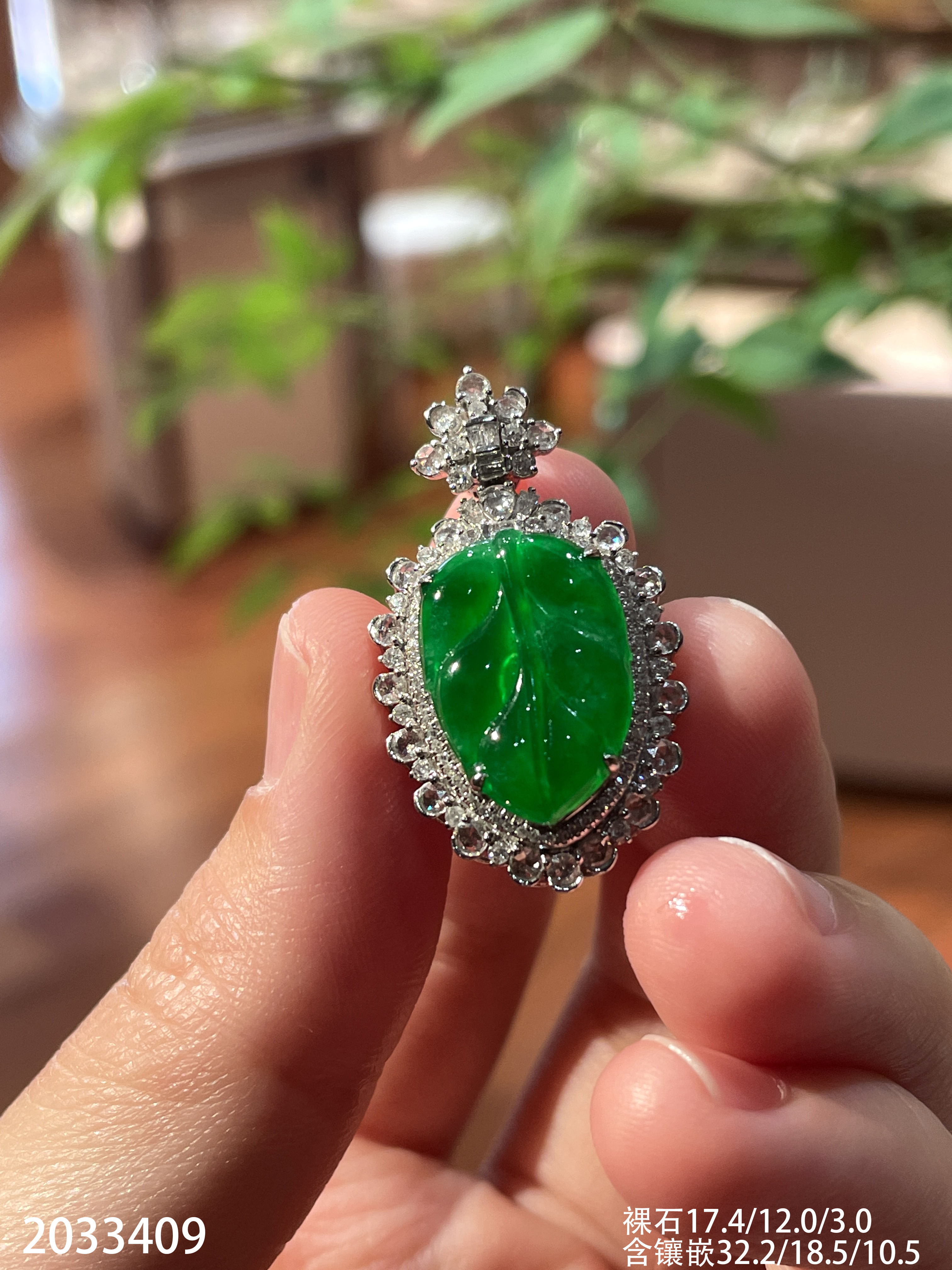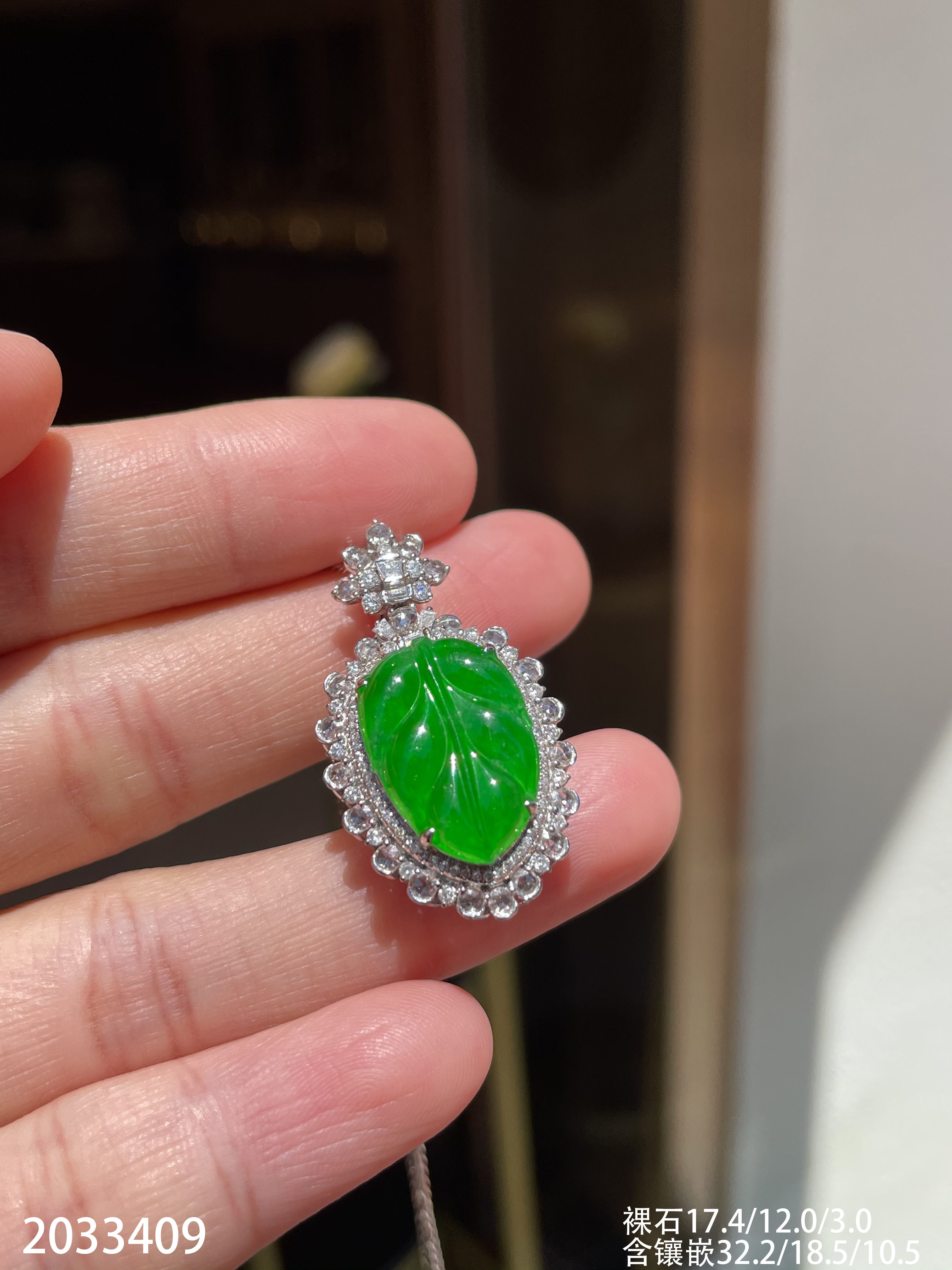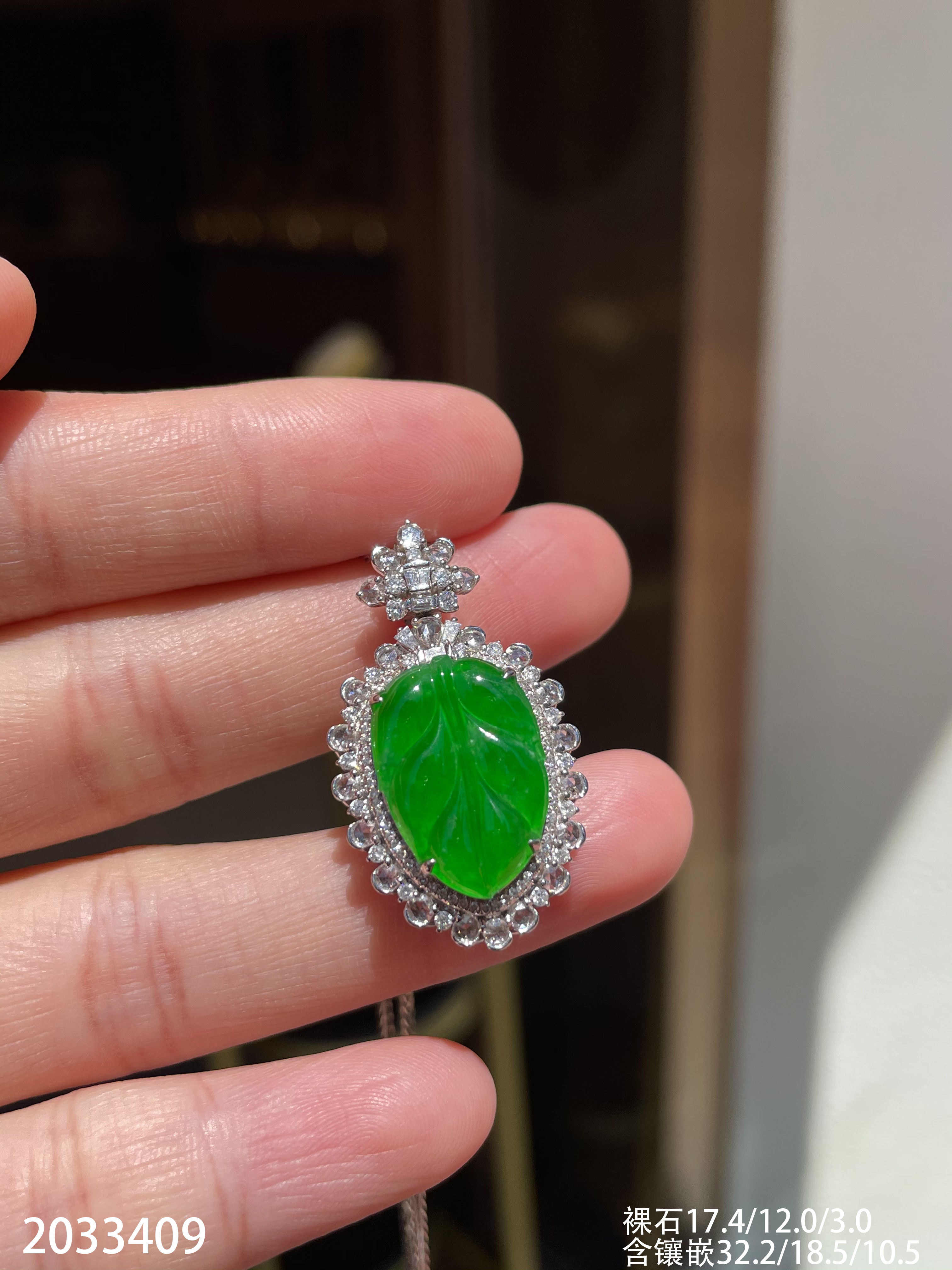 2033409,冰艳绿叶子吊坠。具体价格微信咨询
