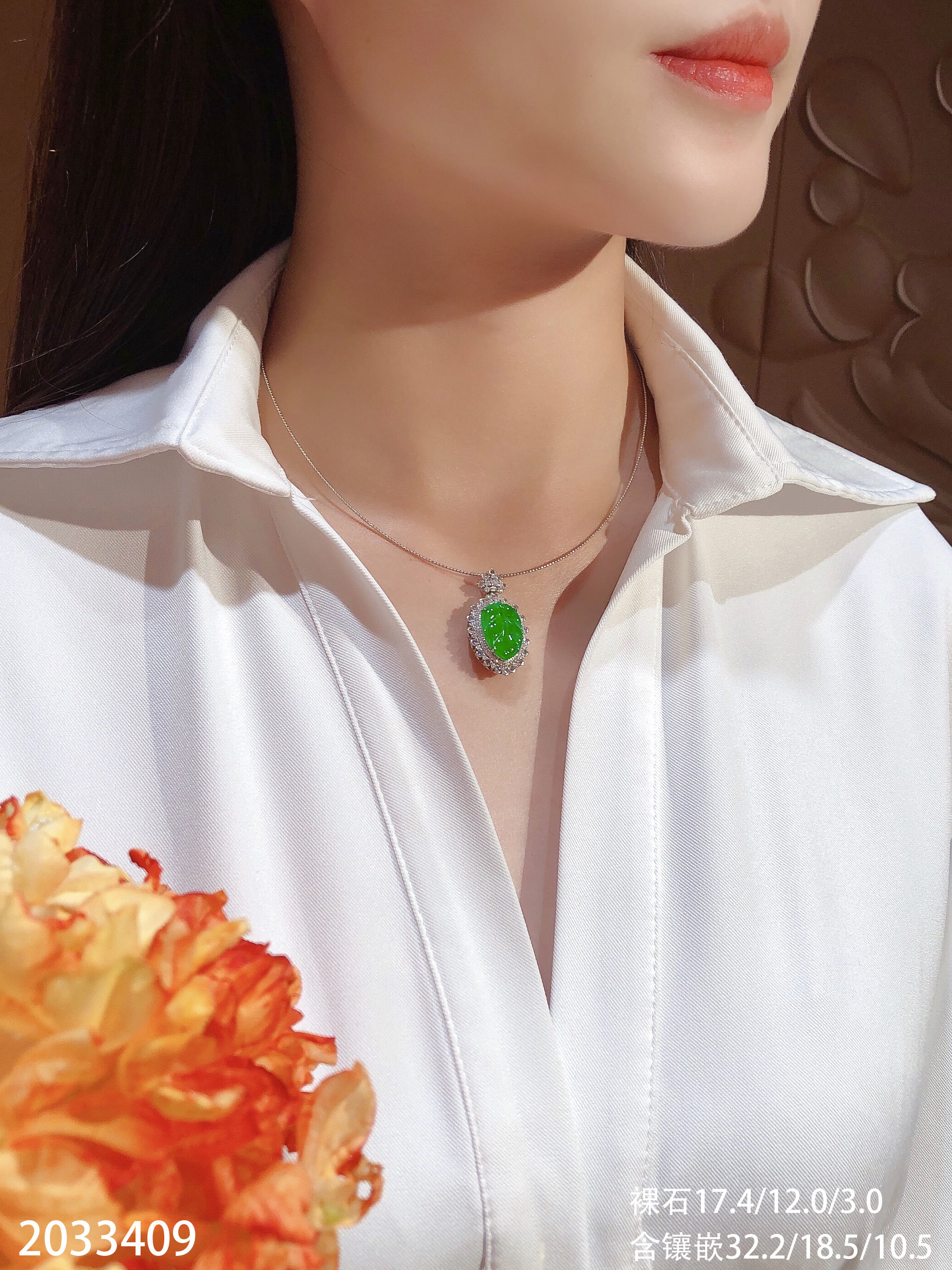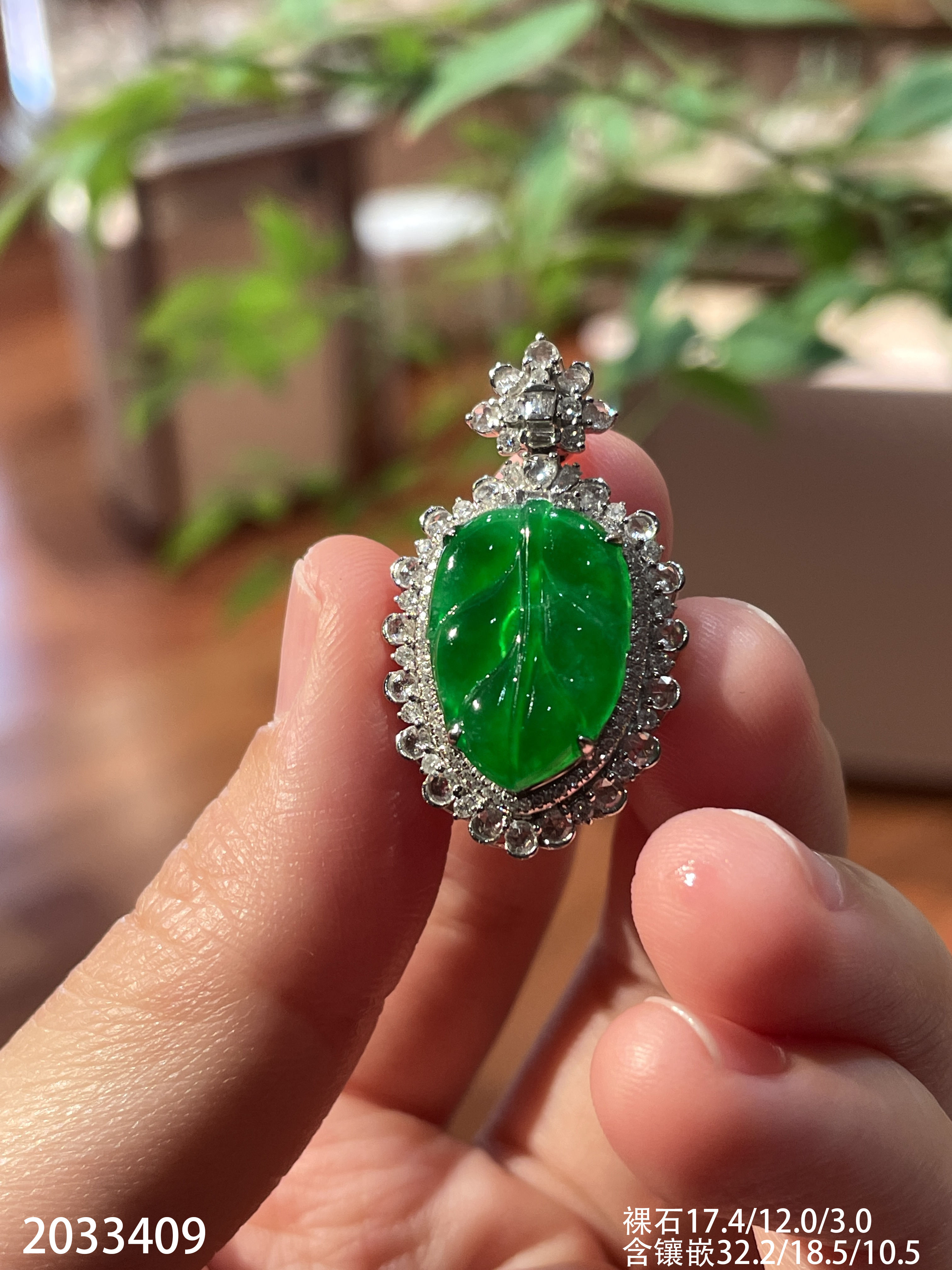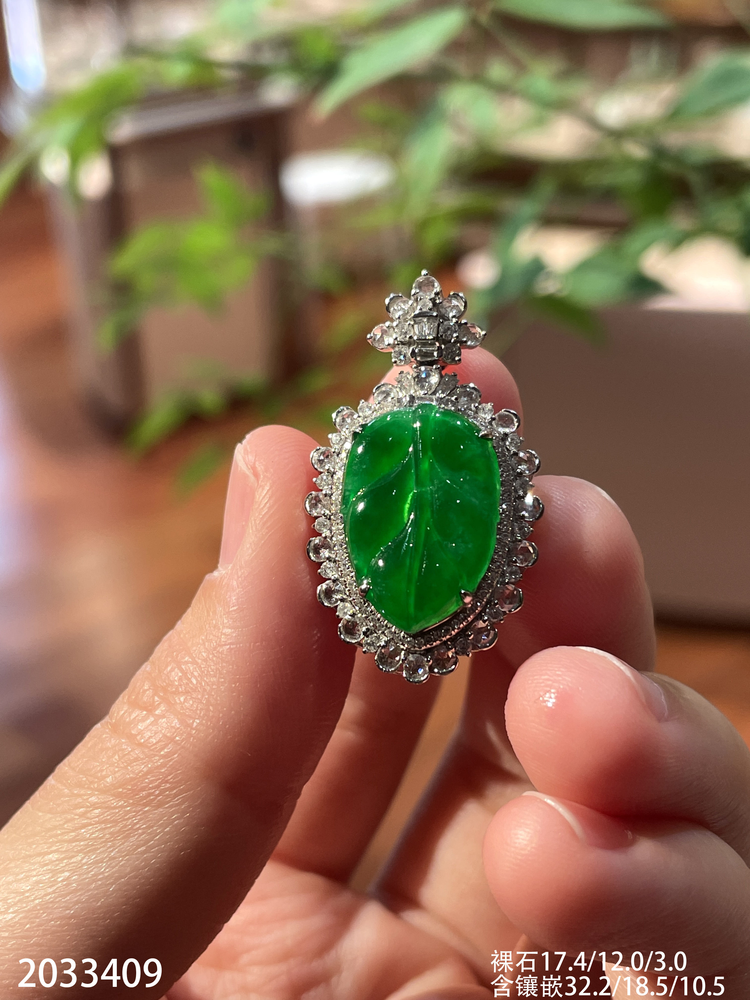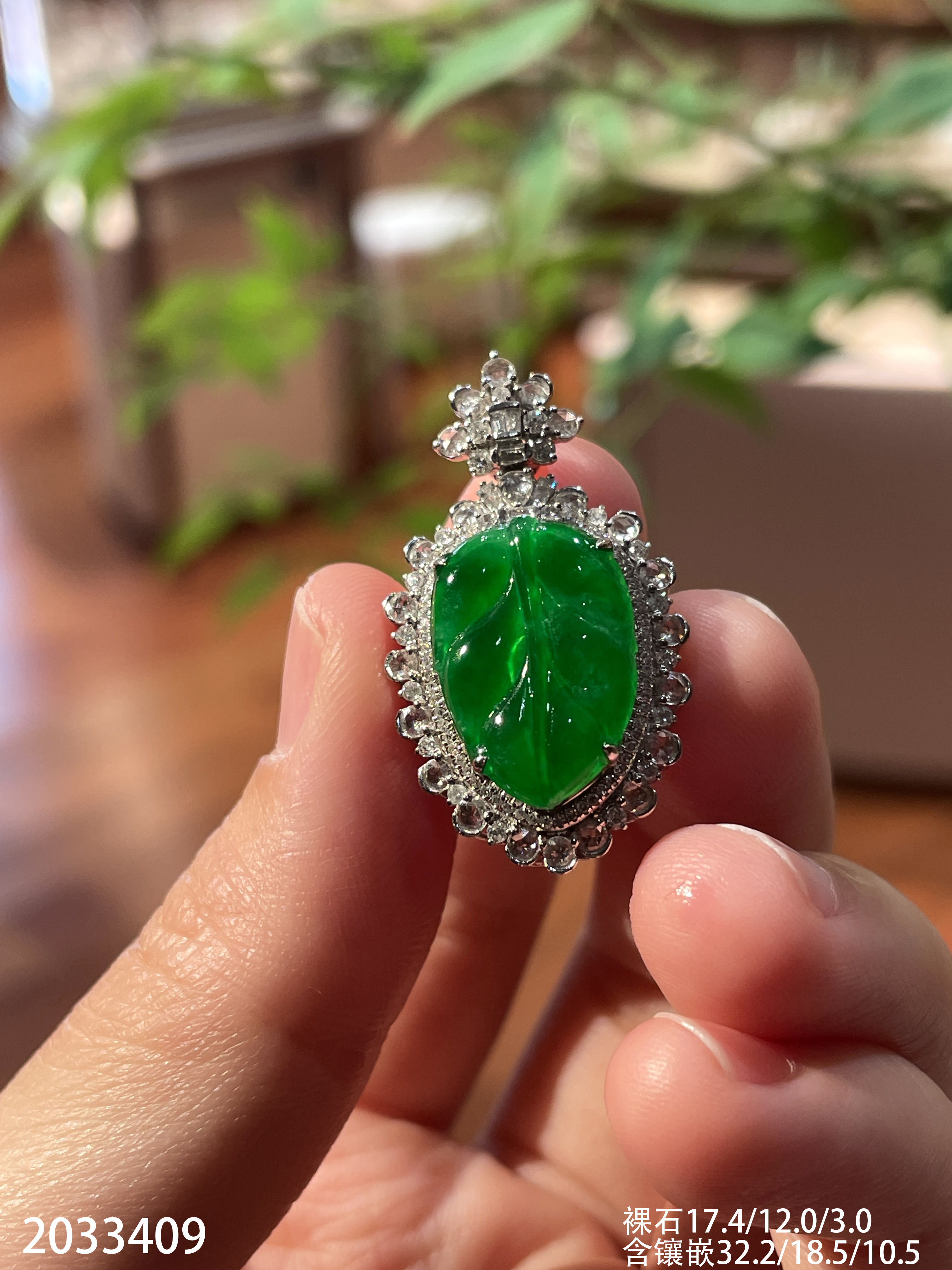 2033409,冰艳绿叶子吊坠。具体价格微信咨询