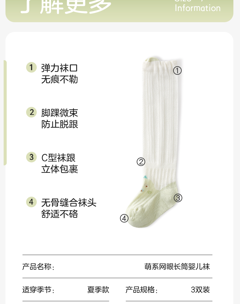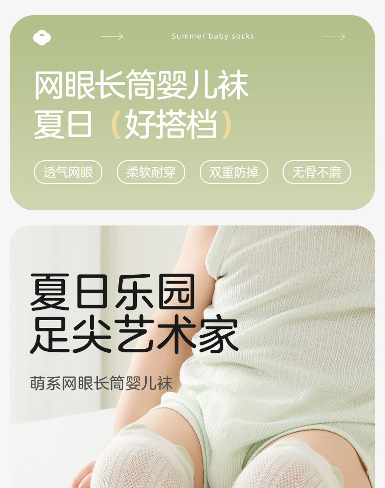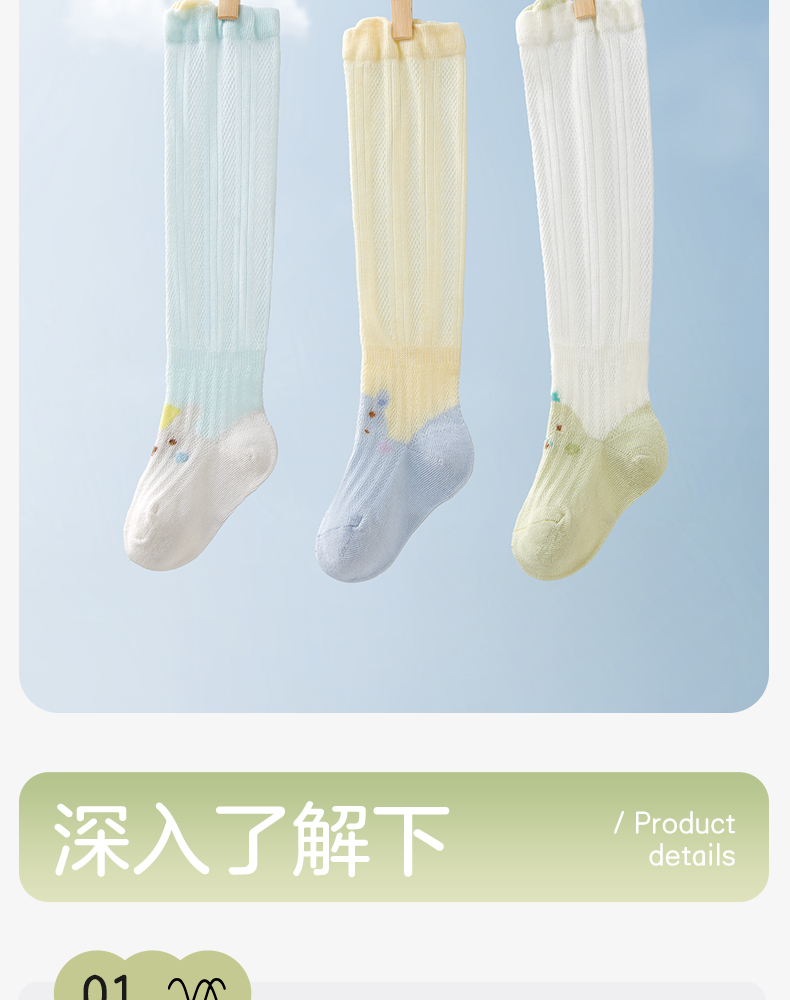 婴儿夏季薄款长筒过膝网眼透气防蚊袜 赠【便携洗衣皂80g*3块】