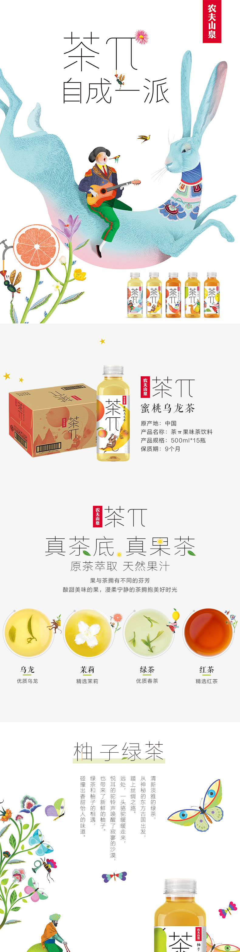 农夫山泉茶π(茶派)蜜桃乌龙茶500ml*15瓶 果味 茶饮料 新老包装随机发货 包邮