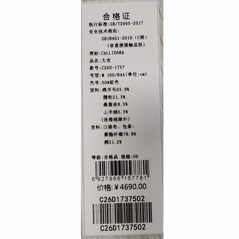 卡莉朵拉大衣C26D1737