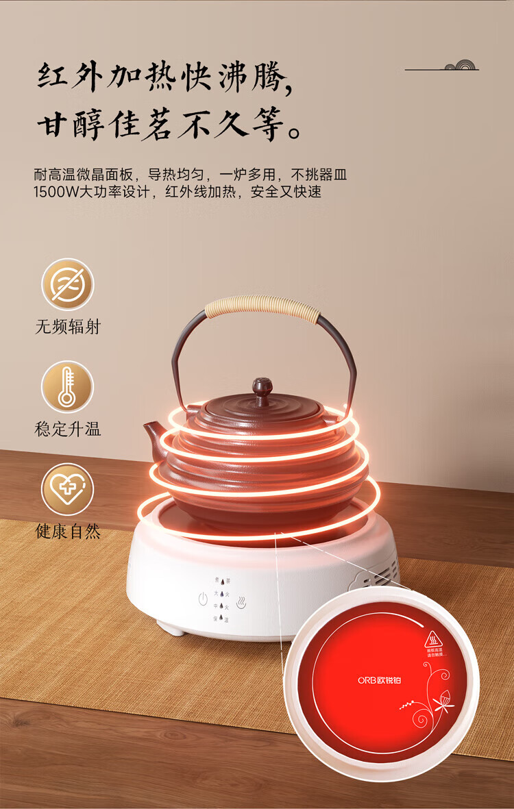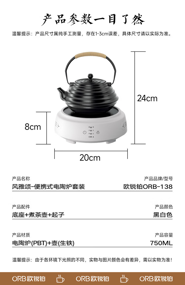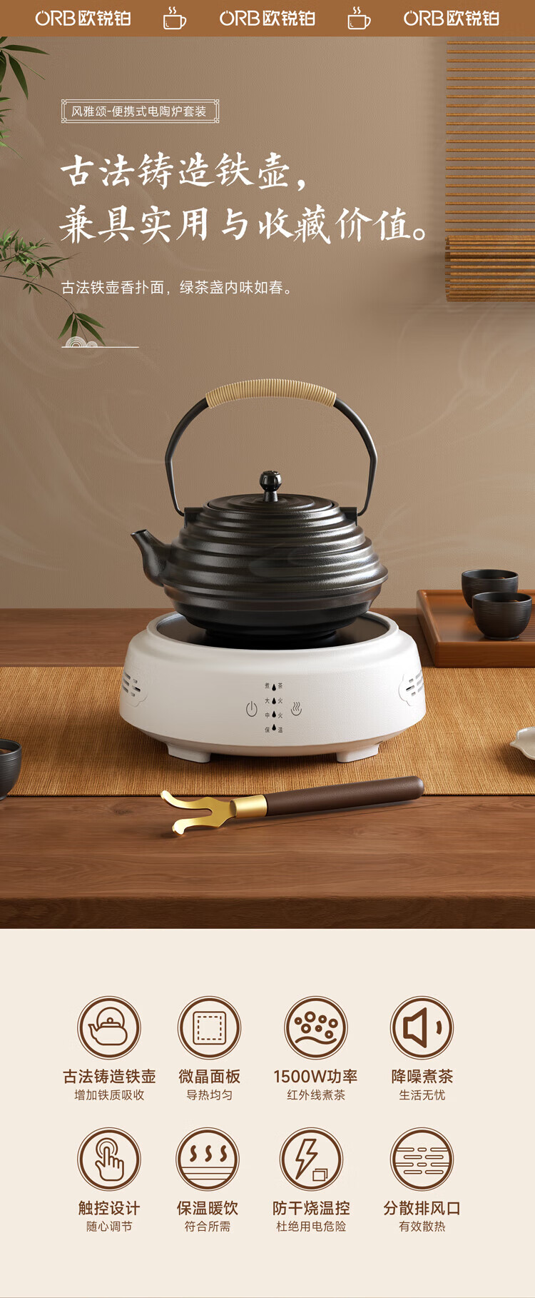 【分仓直发包邮】欧锐铂风雅颂便携式电陶炉套装ORB-138-1