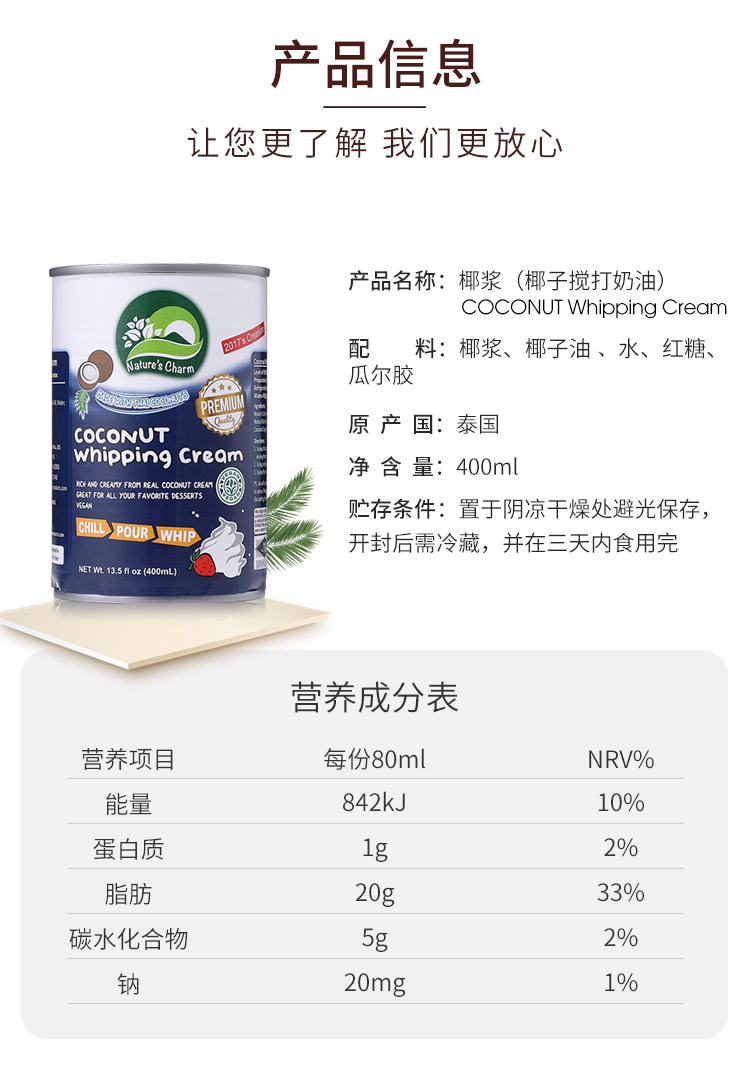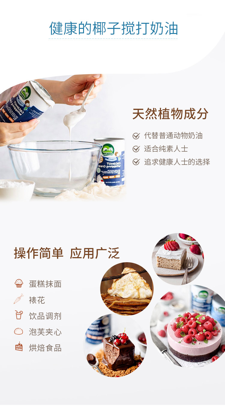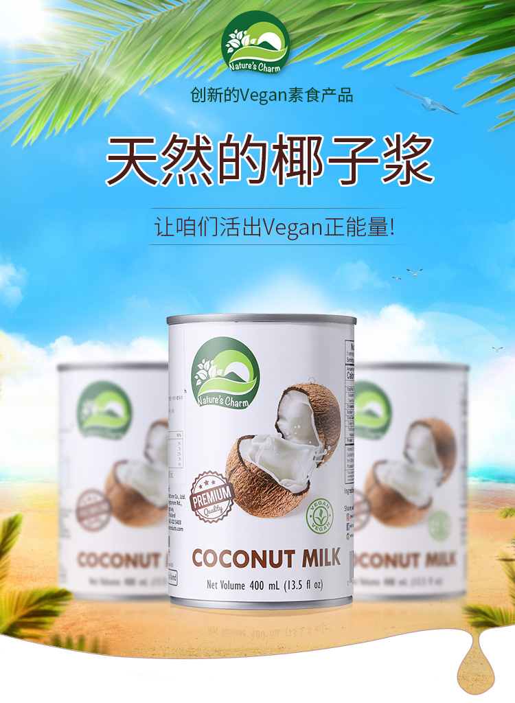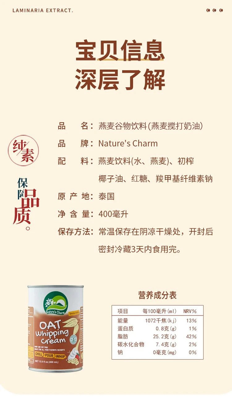 纯椰浆/搅打奶油/甜炼奶 椰子燕麦烘焙原料 制作甜品蛋糕面包 Nature's Charm纯素美食品 泰国进口 全植物