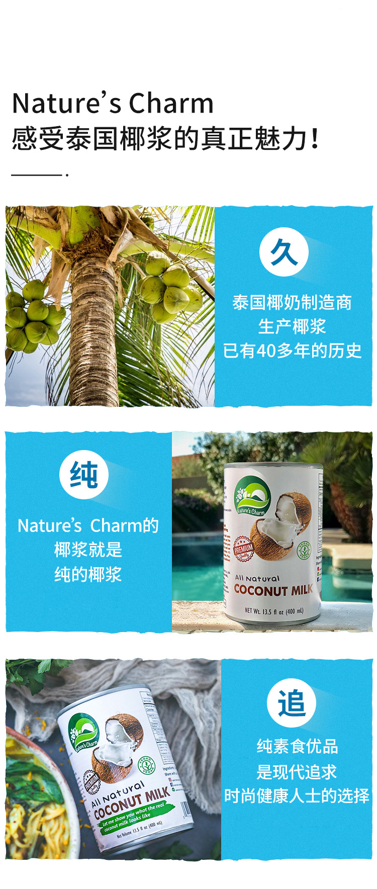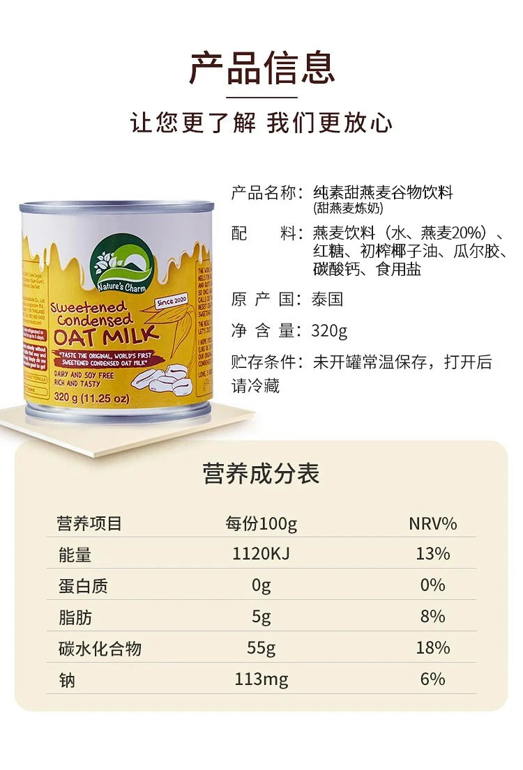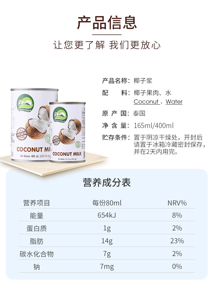 纯椰浆/搅打奶油/甜炼奶 椰子燕麦烘焙原料 制作甜品蛋糕面包 Nature's Charm纯素美食品 泰国进口 全植物
