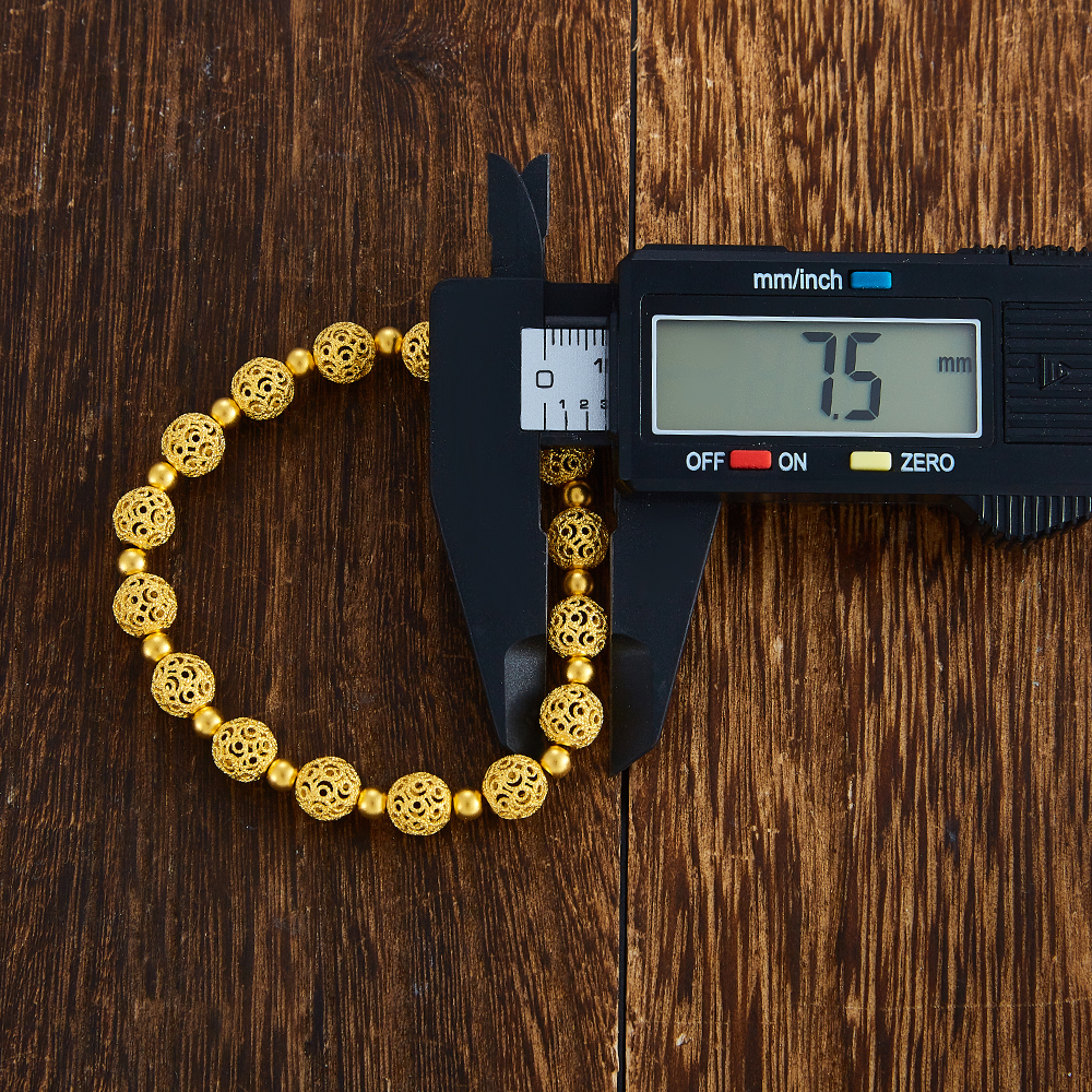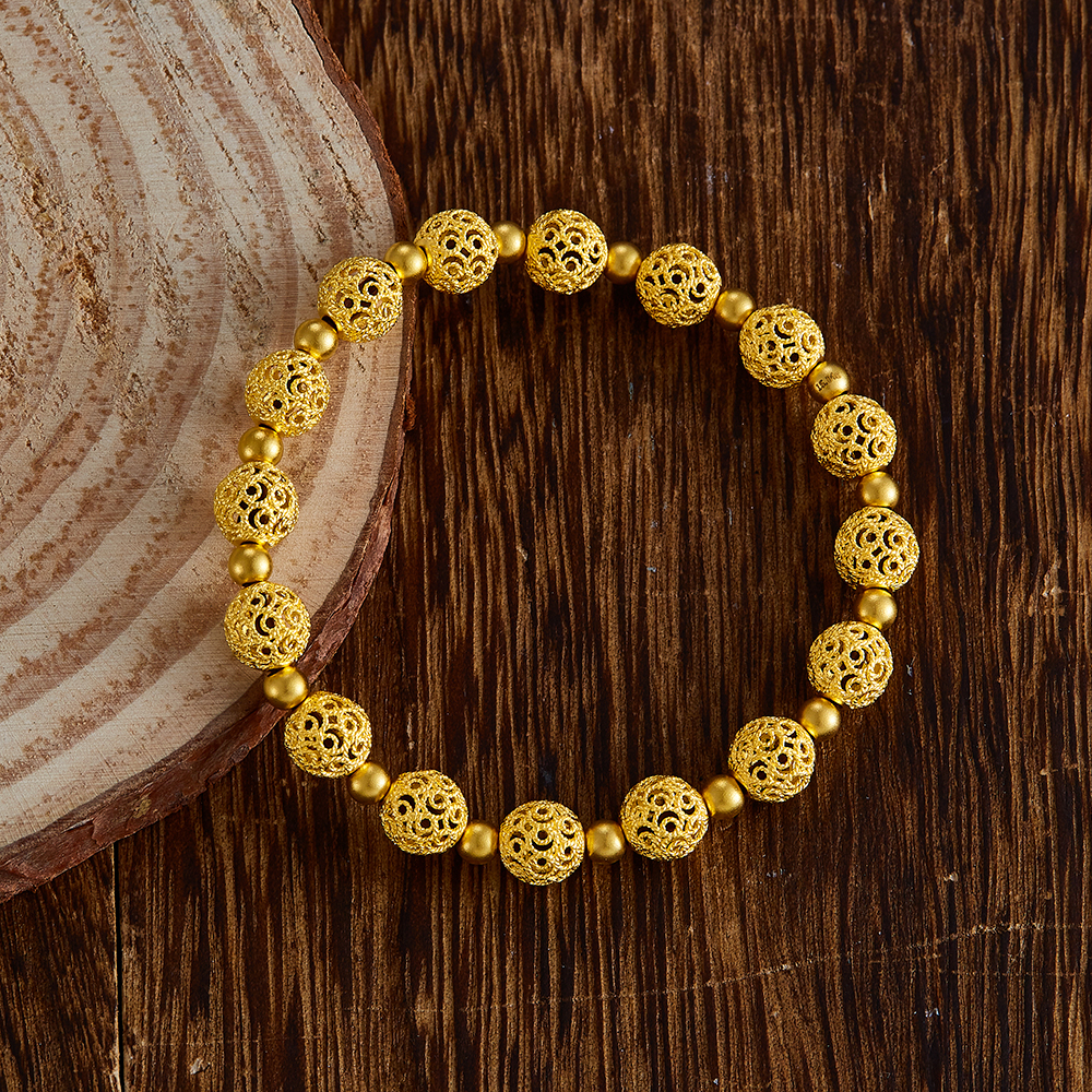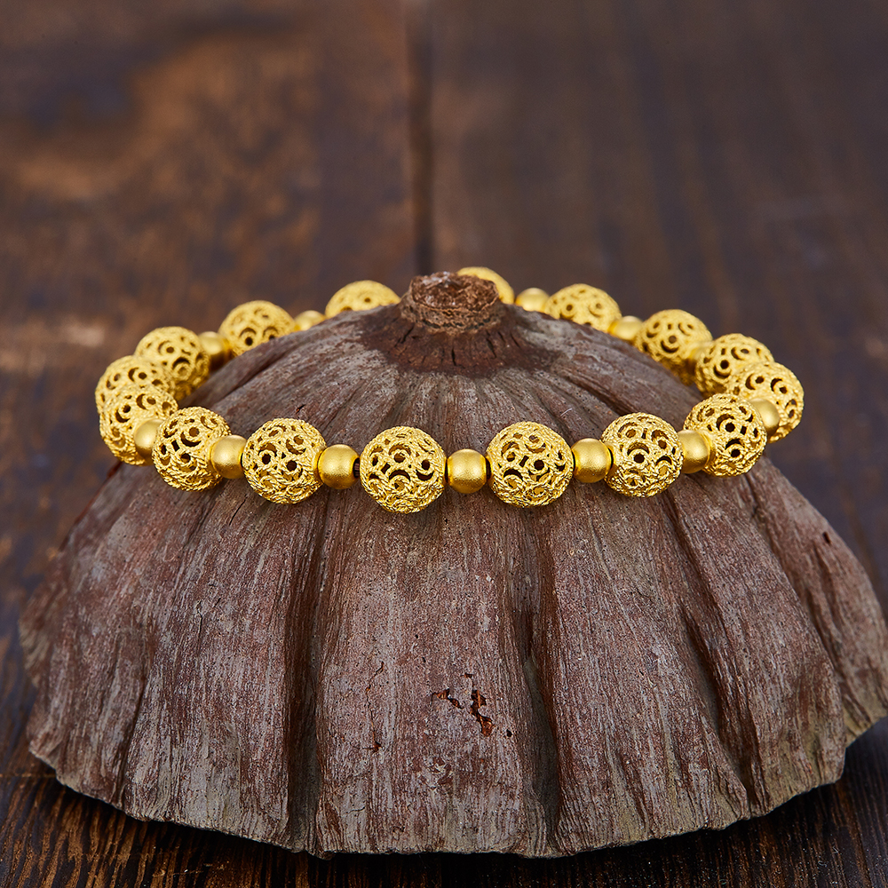 【限时克减150元】足金999 古法镂空花丝玲珑珠(珠约7.5mm)间光珠手串(YGFSC00073)补差价)补差价)预售产品下单后不退款不退货不换货不补差价