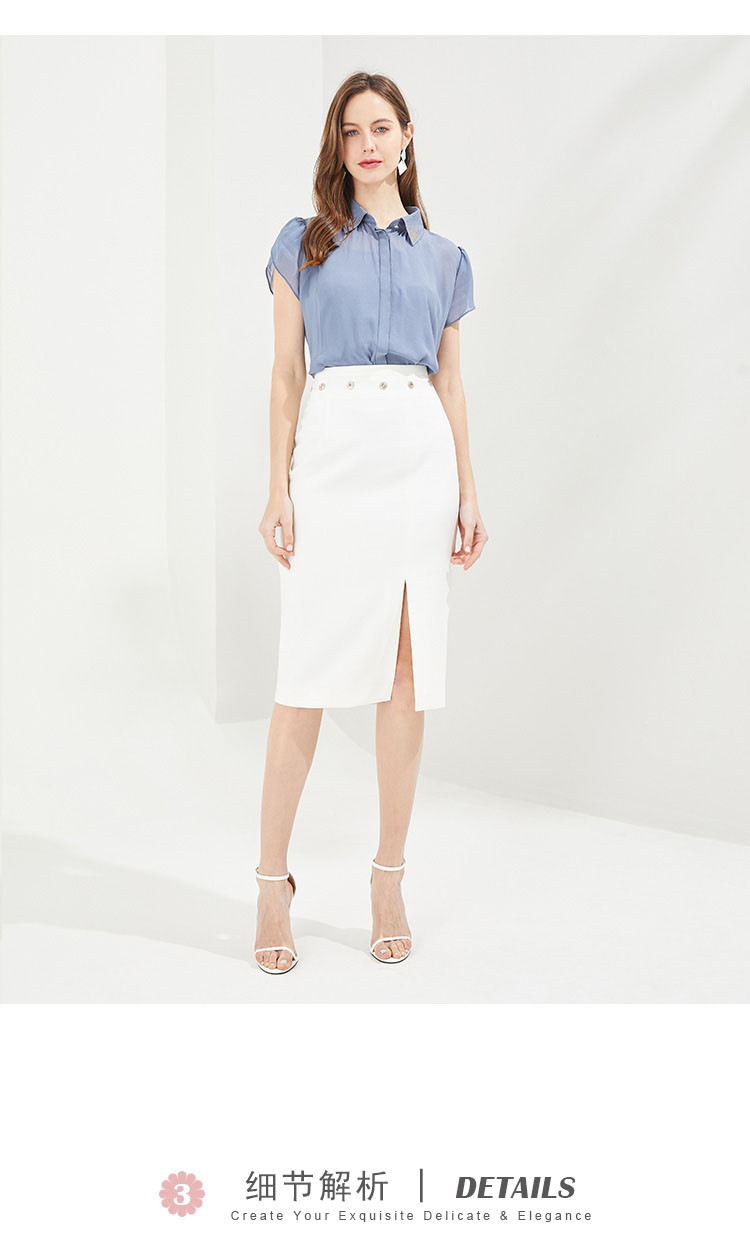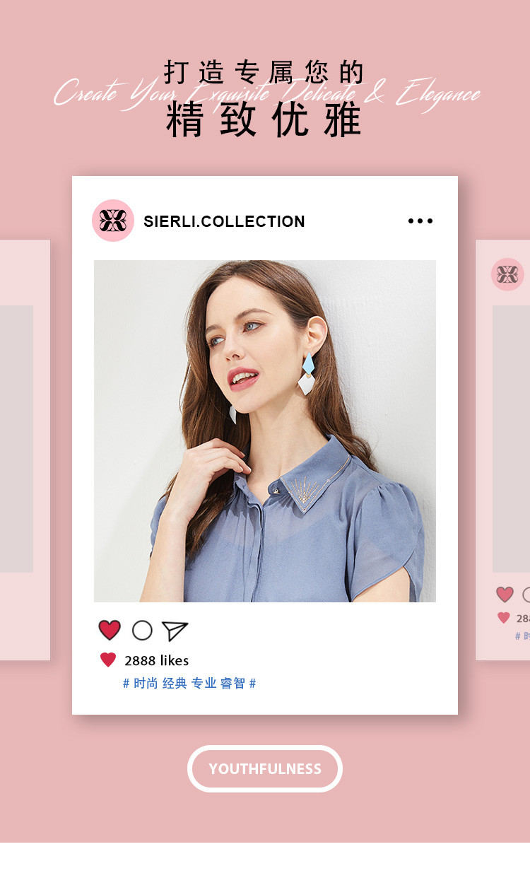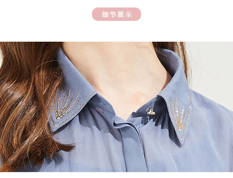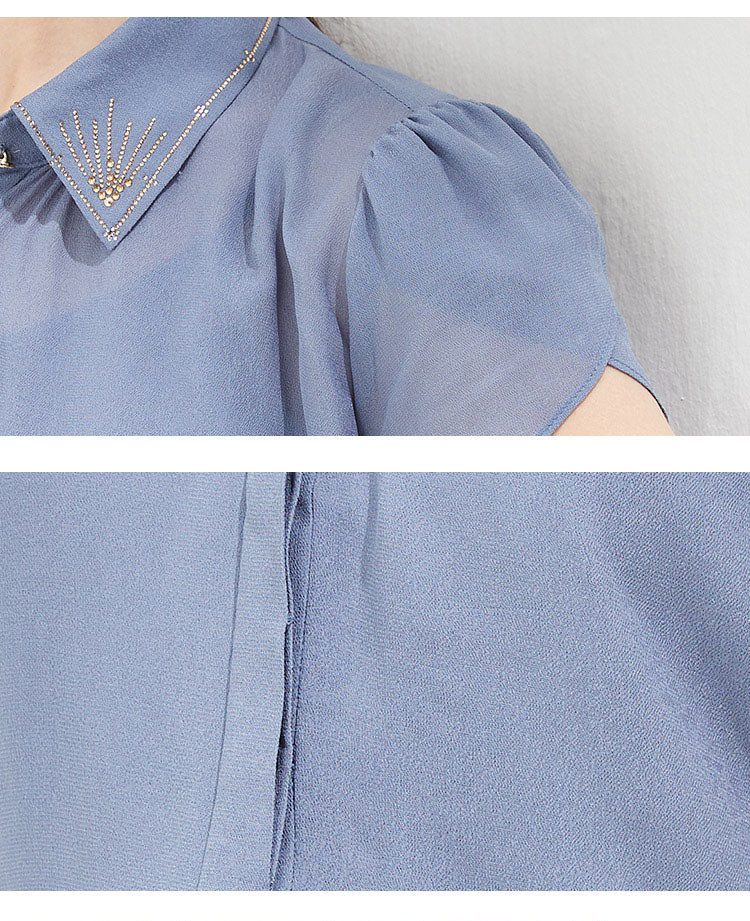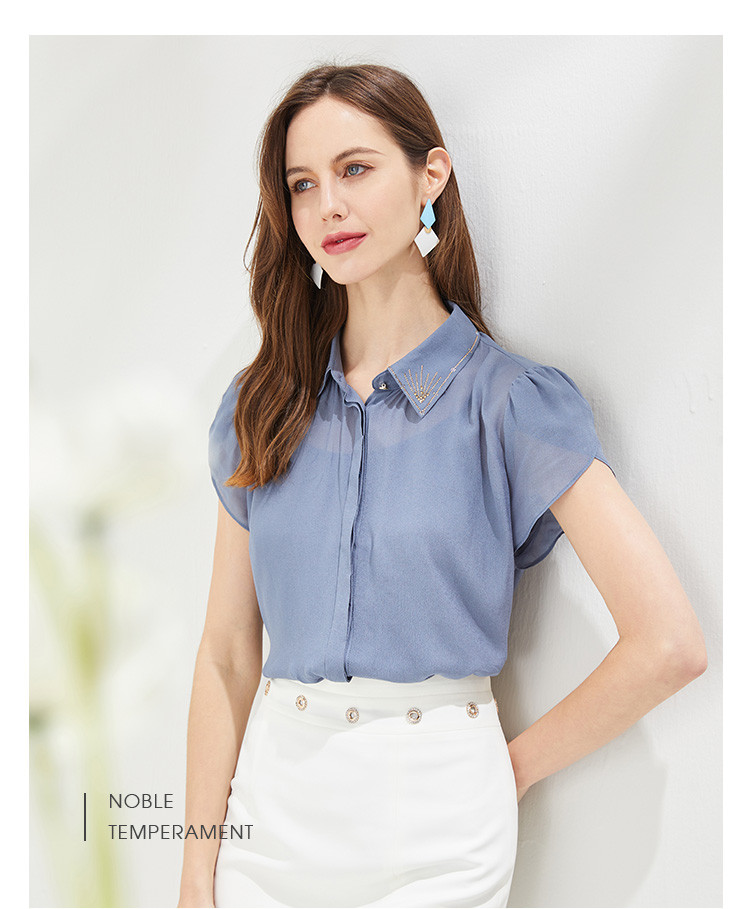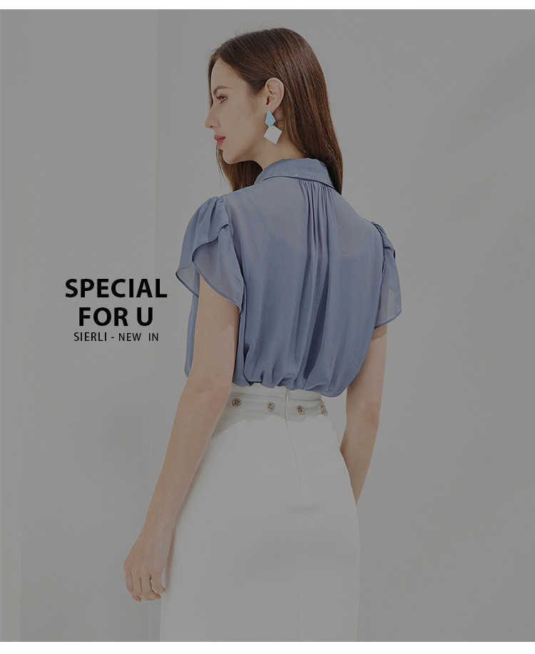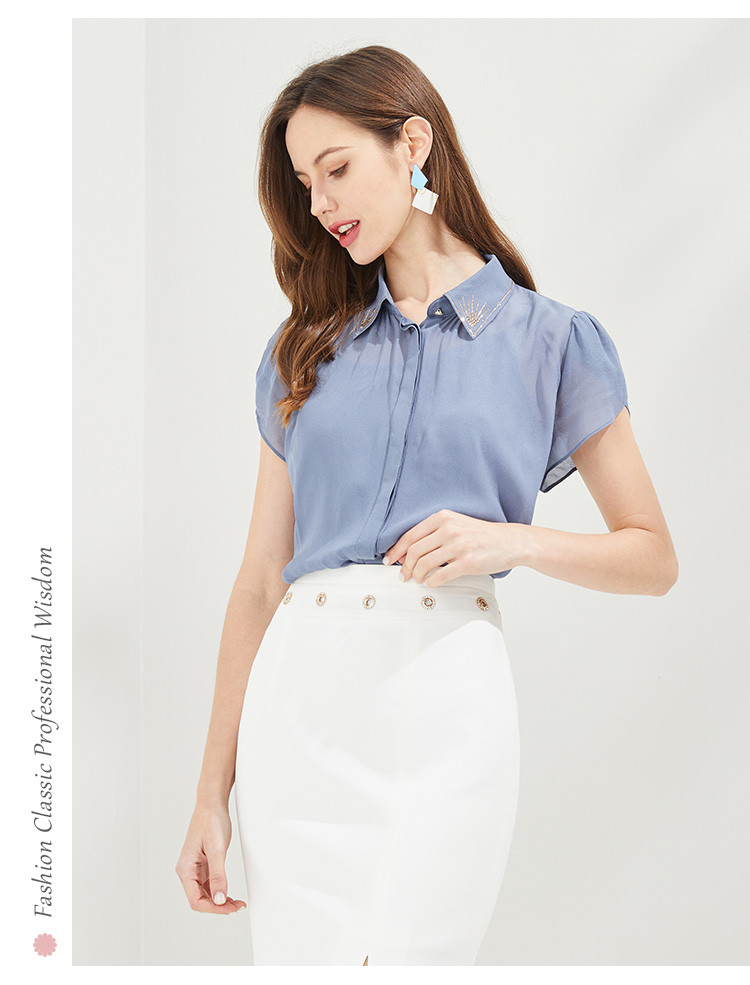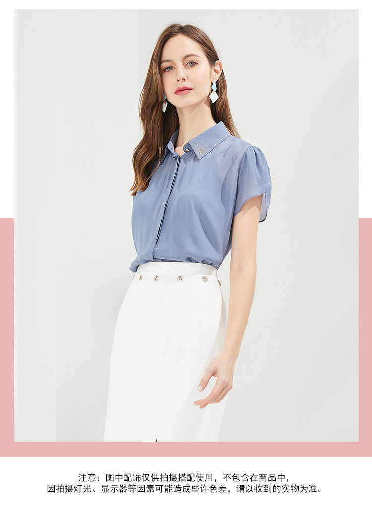 QF23A斯尔丽瑟俪2021秋季精致烫钻领型小小花苞袖女人味十足衬衣