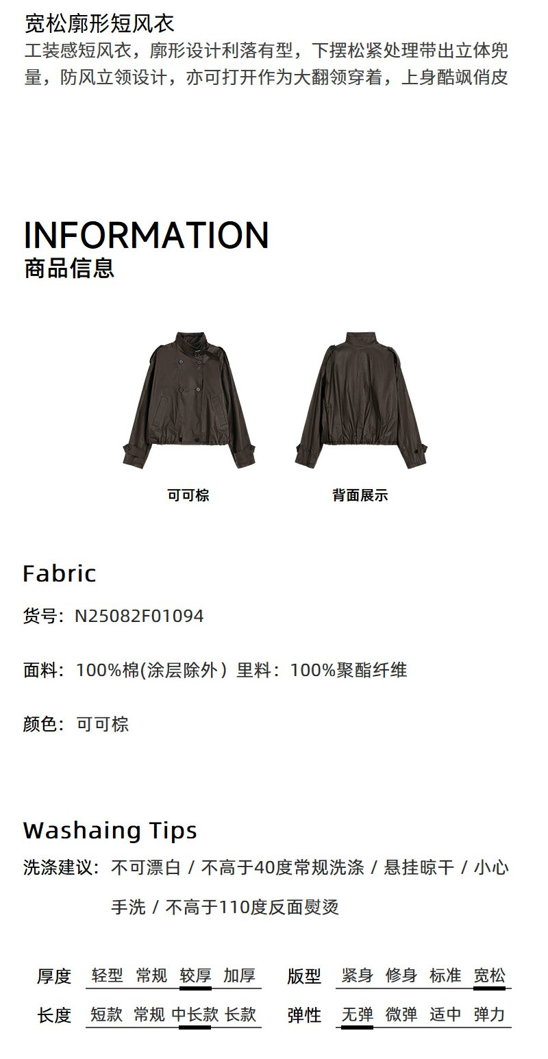 NEELLY纳俪商场同款秋季新款宽松廓形短款风衣女气质高级感外套N25082F01094