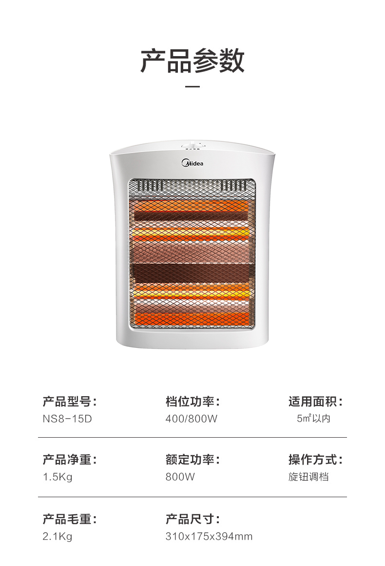 美的(Midea) NS8-15D取暖器电暖器家用办公室烤火炉节能省电速热远红外电暖气(创)