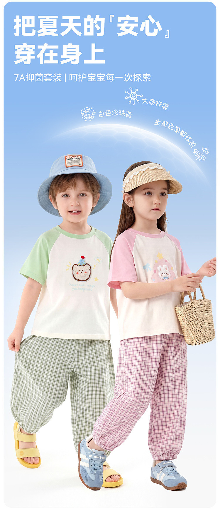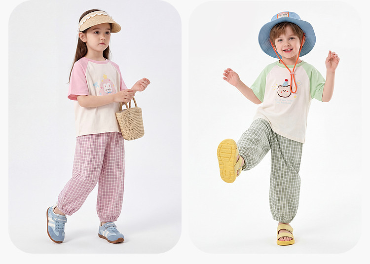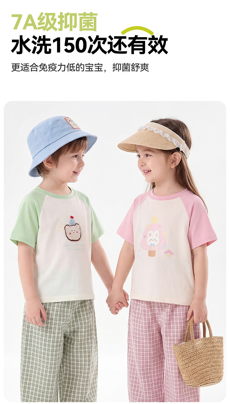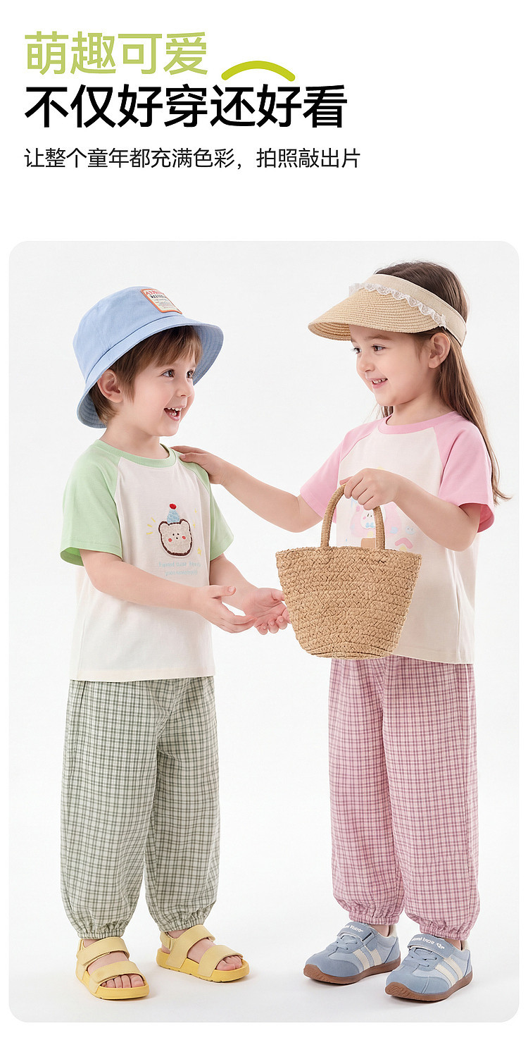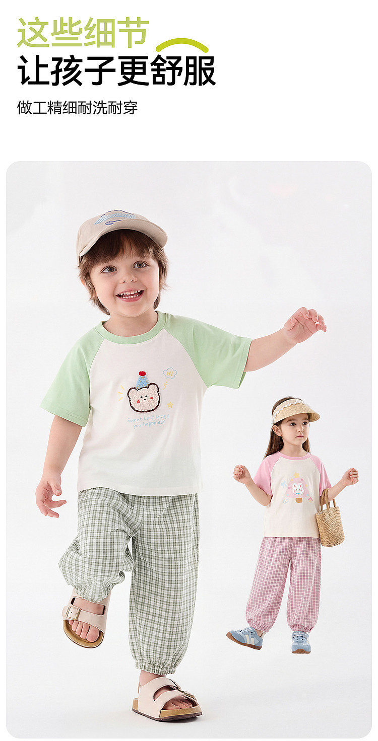 嘟嘟家男童套装夏季女童短袖长裤儿童t恤裤子新款物理防蚊裤夏款D6BTZ175